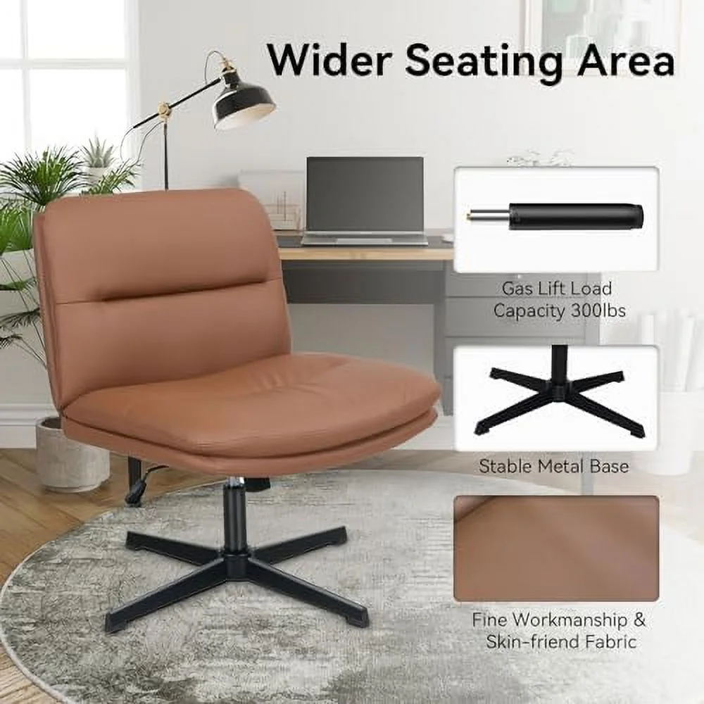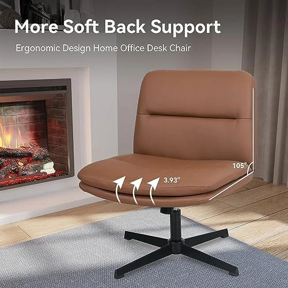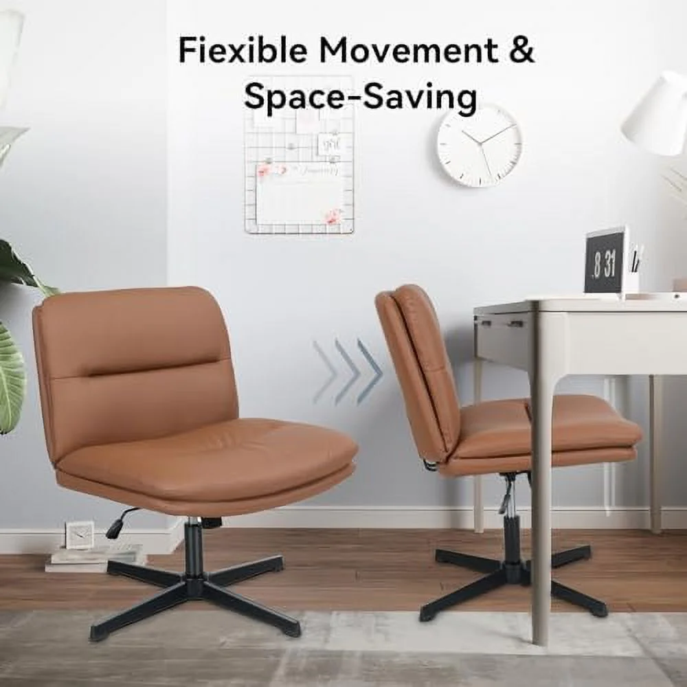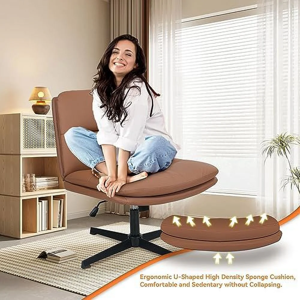 TQJKLFDY Cross Legged Office Chair Armless PU Leather Wide Padded Home Office Desk Chair No Wheels Height Adjustable Swivel Modern Mid Back Chair for Bedroom Living Room(White) - Curated Treasures Market