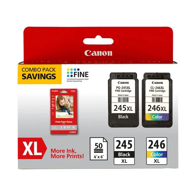 Canon PG-245XL/CL-246XL Combo Pack Ink Cartridge/Paper Kit - Black, Color - Inkjet - Curated Treasures Market