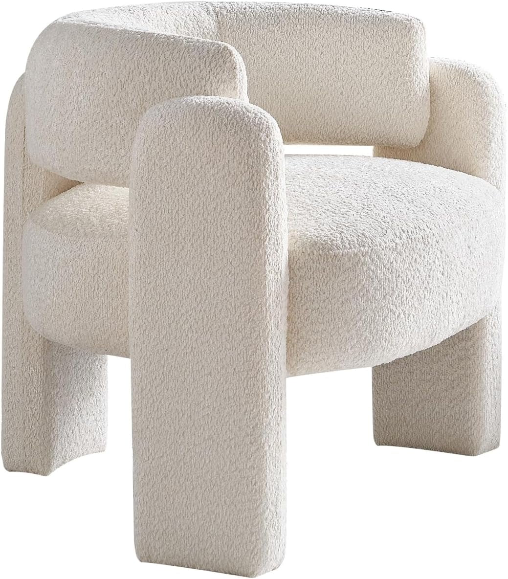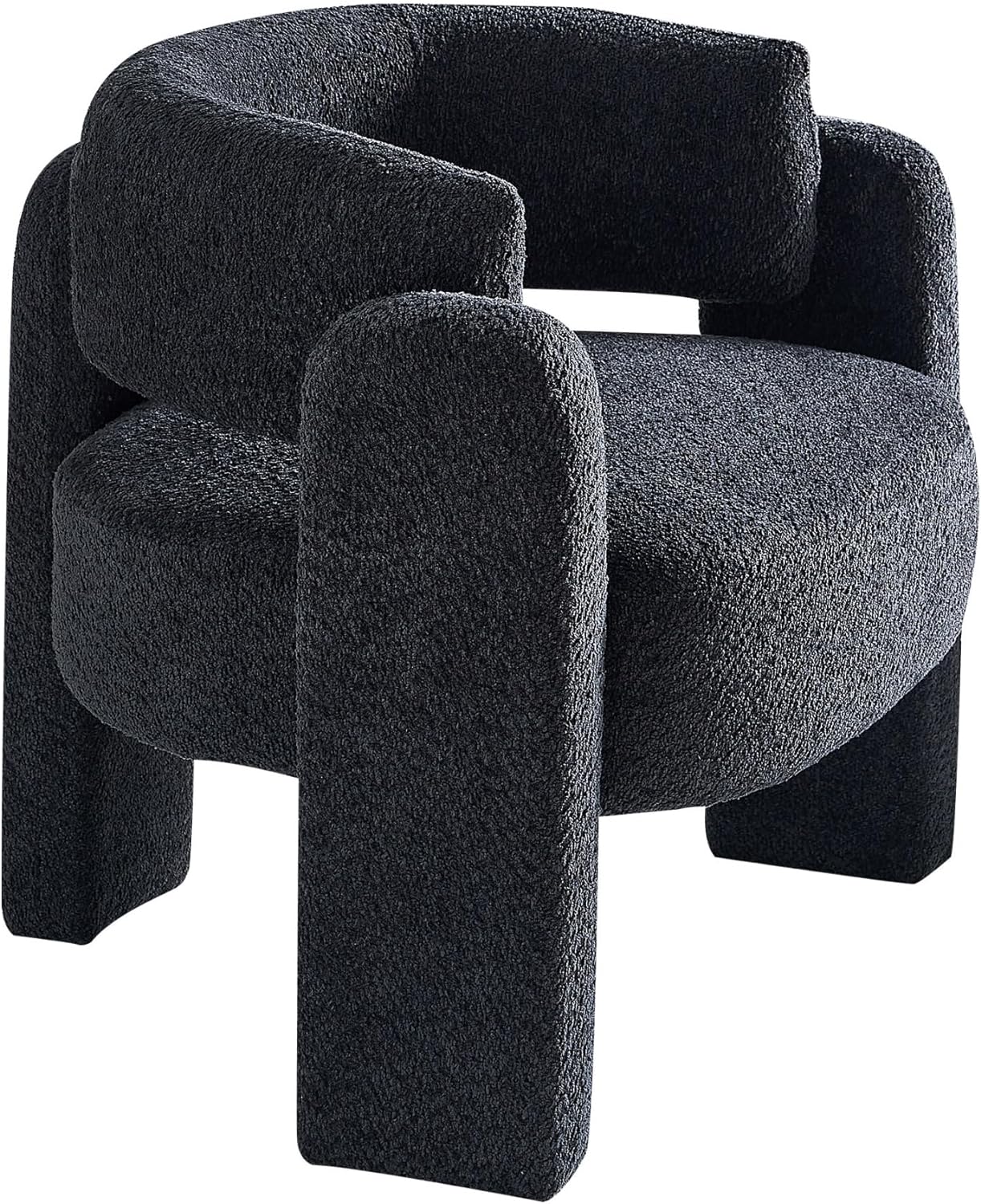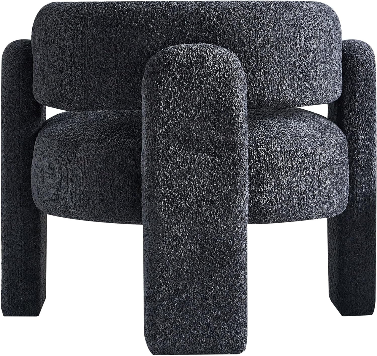 34.6" Wide Accent Boucle Chair, Modern Single Sofa Chair, Dresser Couch with Solid Wood Frame and Upholstery Seat, Round Barrel Armchair, Cozy Reading Chair for Living Room, Bedroom, Office, Dark Gre - Curated Treasures Market