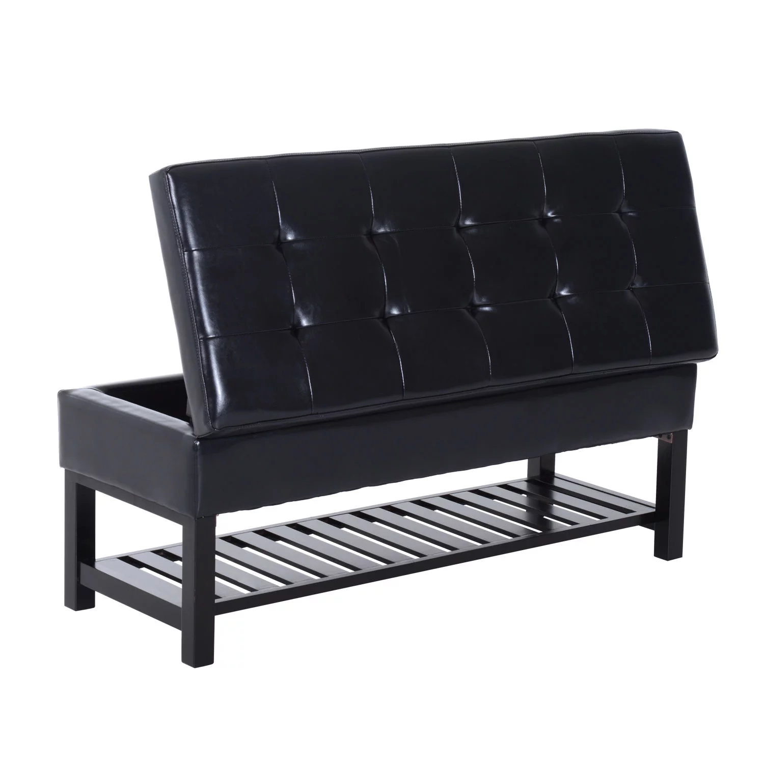 HomCom 44" Tufted Faux Leather Ottoman Storage Bench With Shoe Rack - Black - Curated Treasures Market