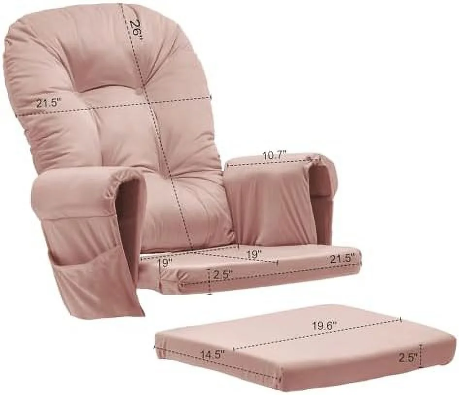 CKPFVY Glider Rocker Replacement Cushions with Pocket 5PCS Soft Velvet Thickened Washable Nonslip Universal for Use in Glider Rocking Chair Light Grey - Curated Treasures Market