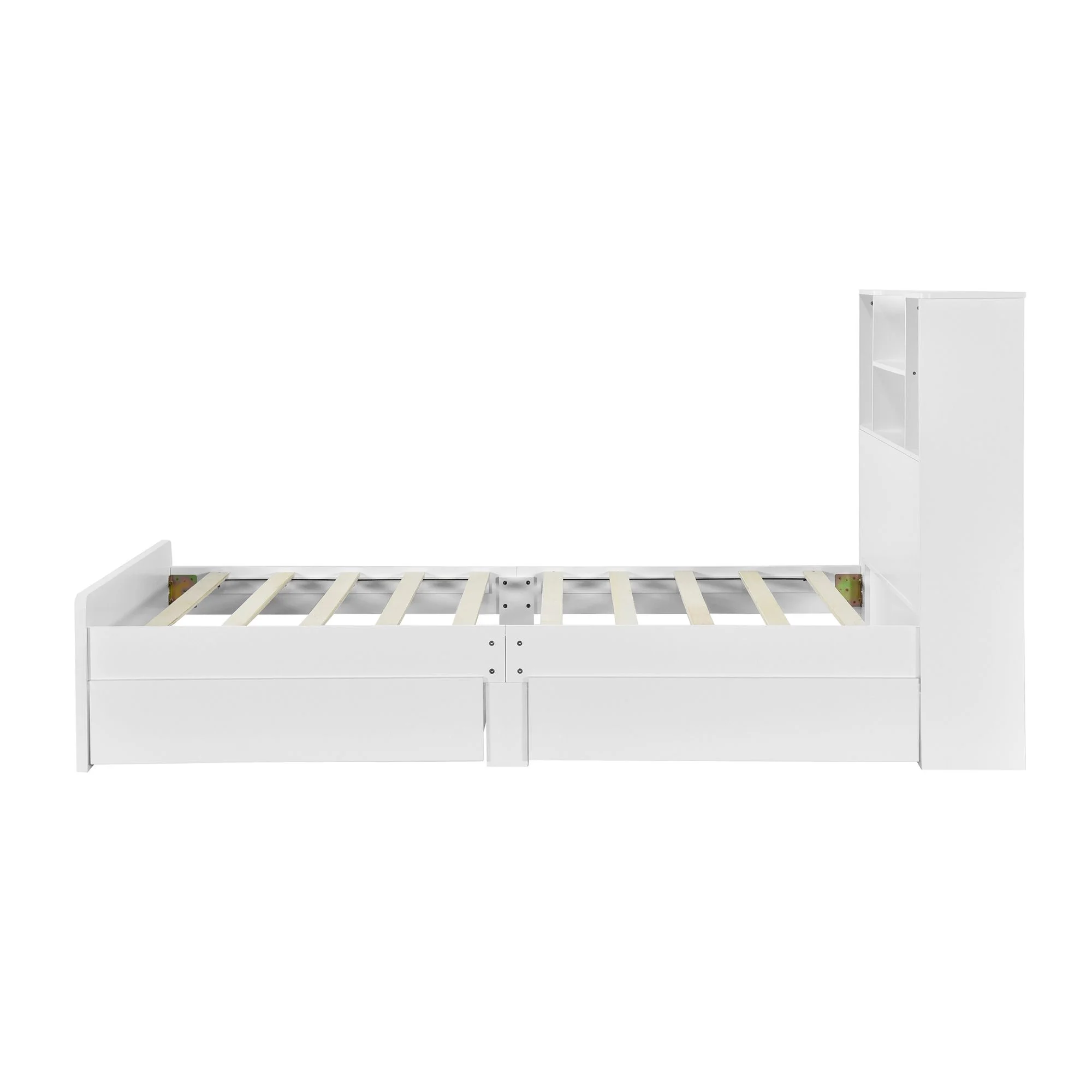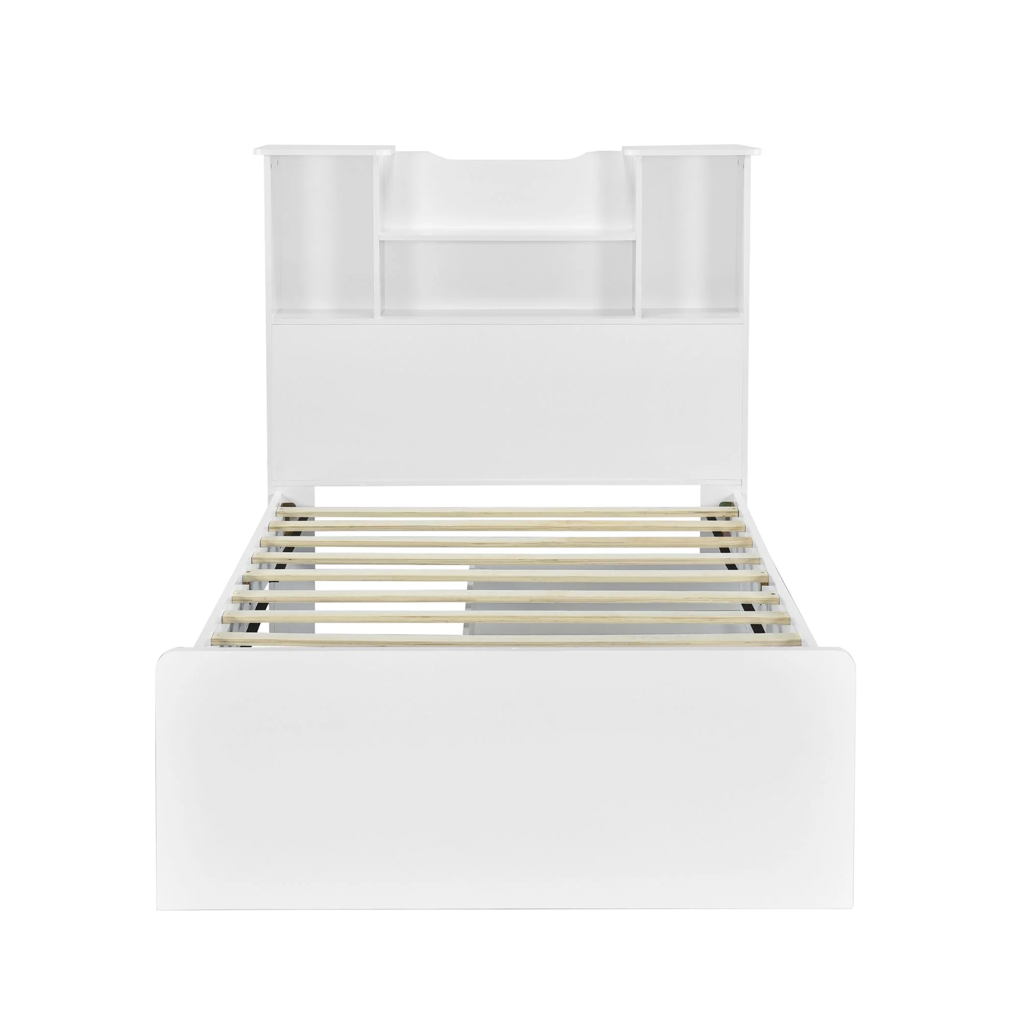 Twin Wood Platform Bed Mattress Foundation with 4 Open Storage Shelves and 2 Storage Drawers,LED Light, Bed Frame Storage Bed w/ Wooden Slats for Boy Girl, Easy Assembly - Curated Treasures Market