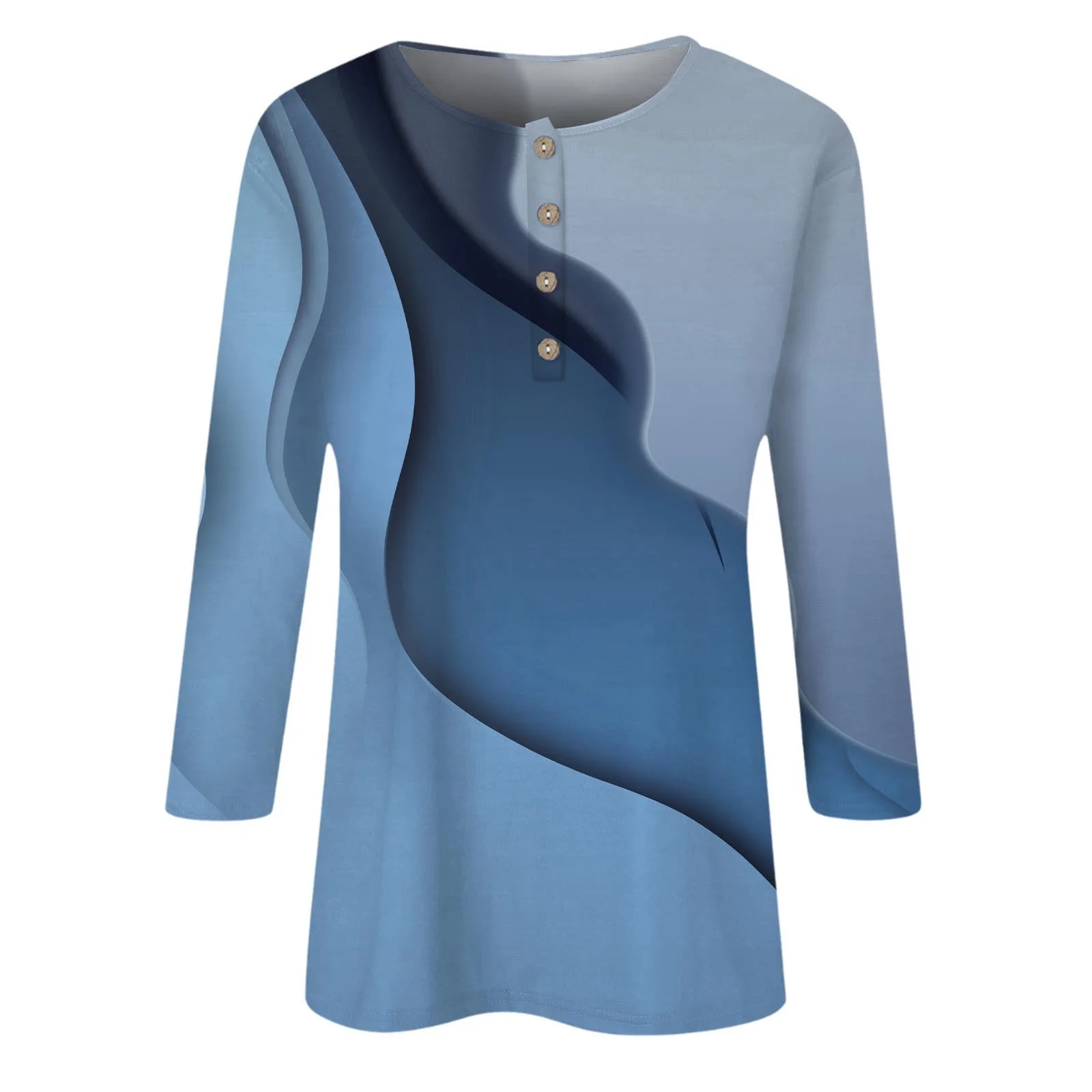 Women's Casual Printed Button Three Quarter Sleeve T Shirt Top - Curated Treasures Market