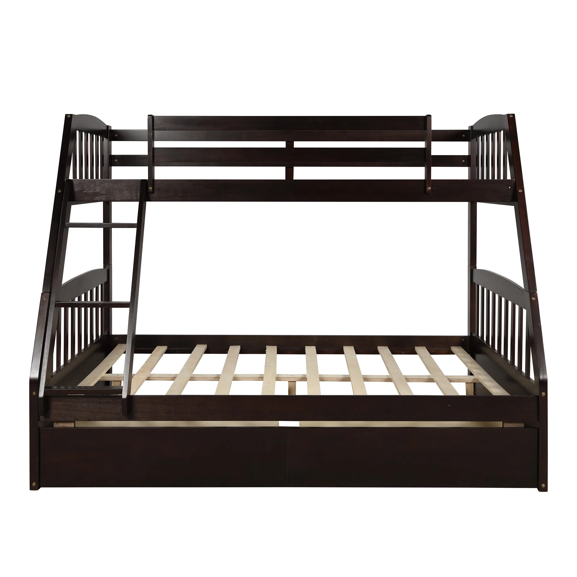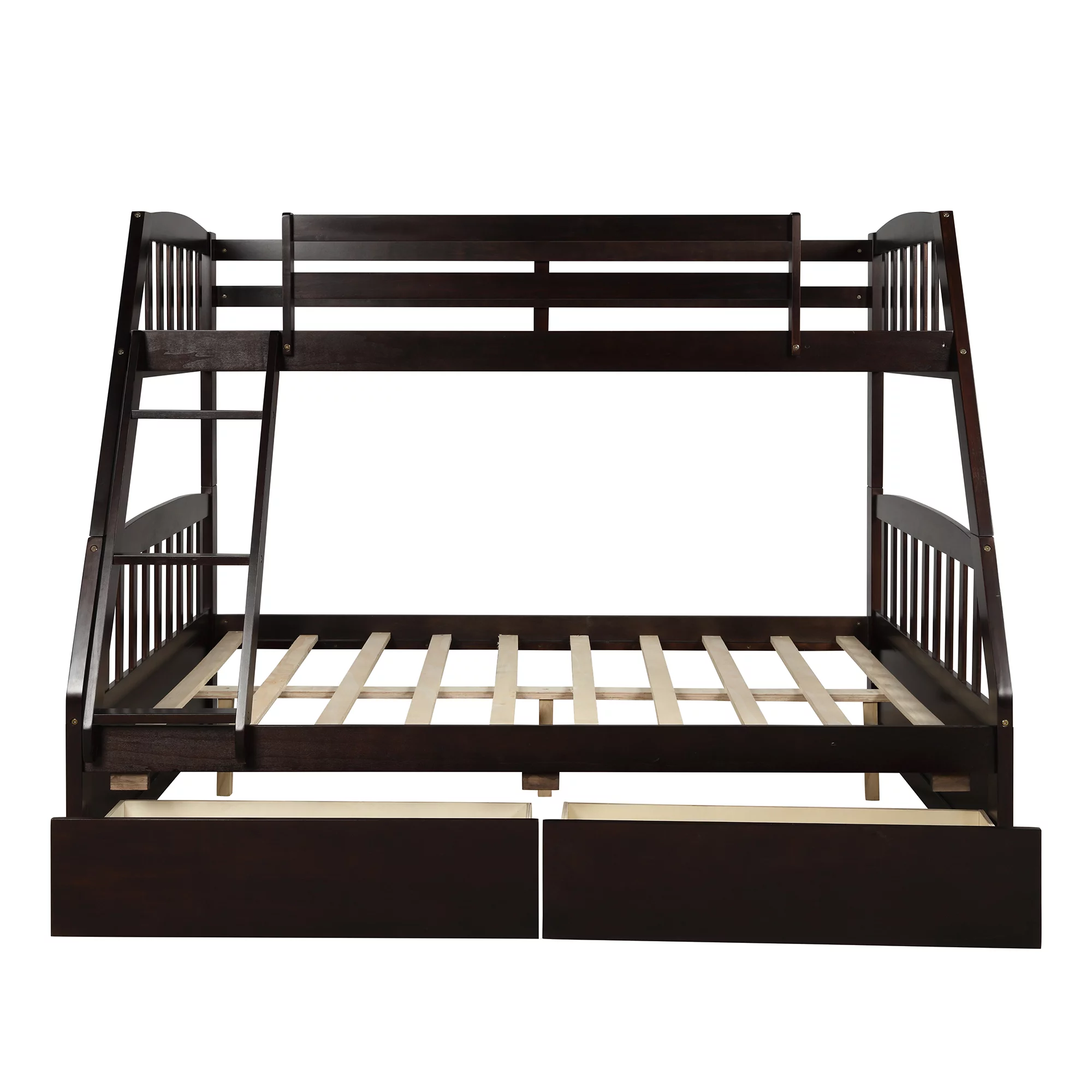Solid Wood Twin Over Full Bunk Beds with 2 Storage Drawers, Bunk Beds for Kids with Ladder and Guard Rail - Curated Treasures Market