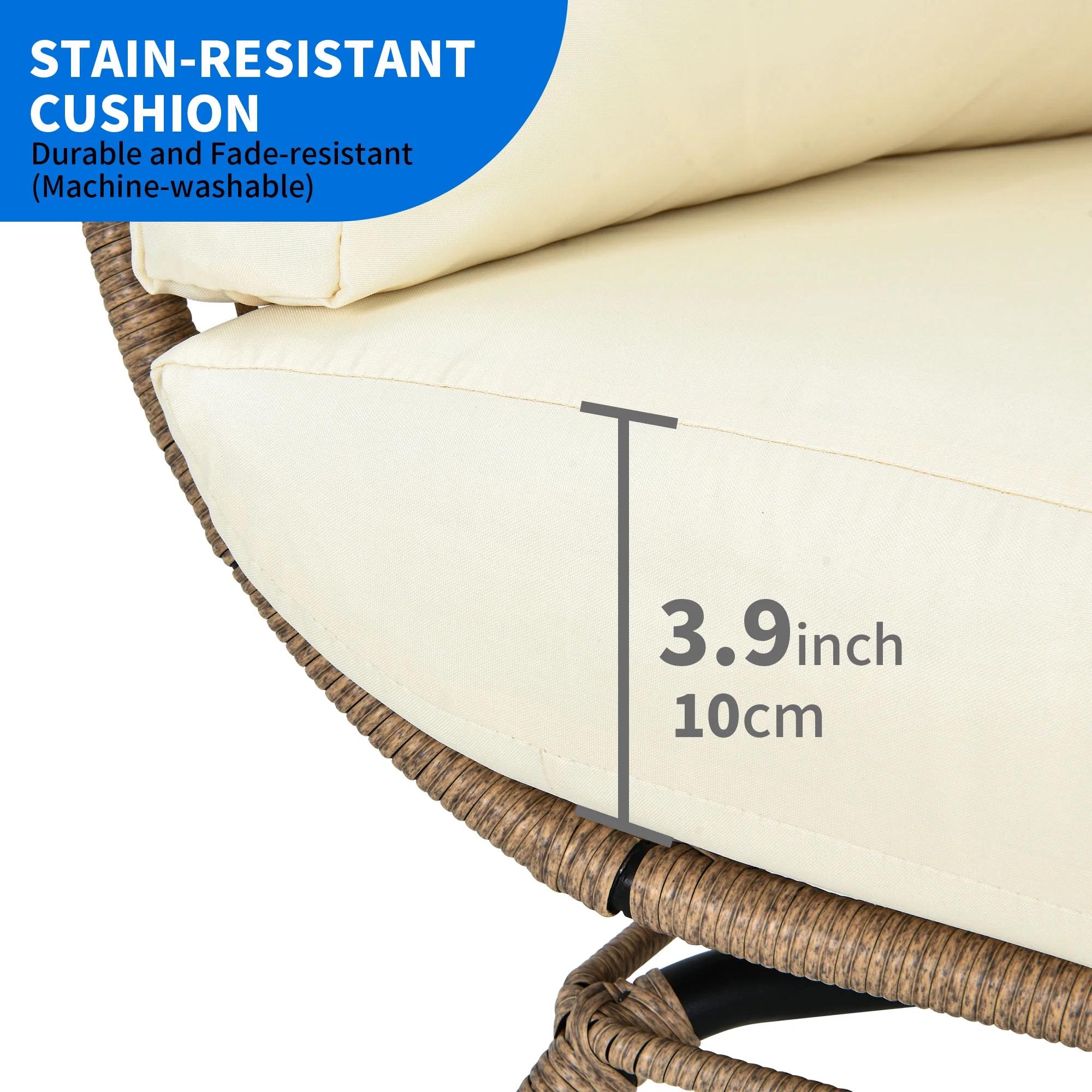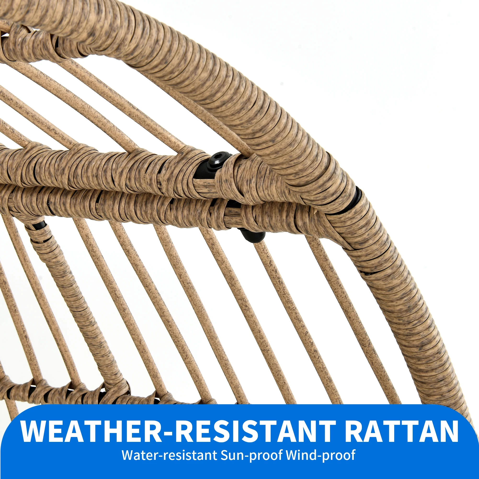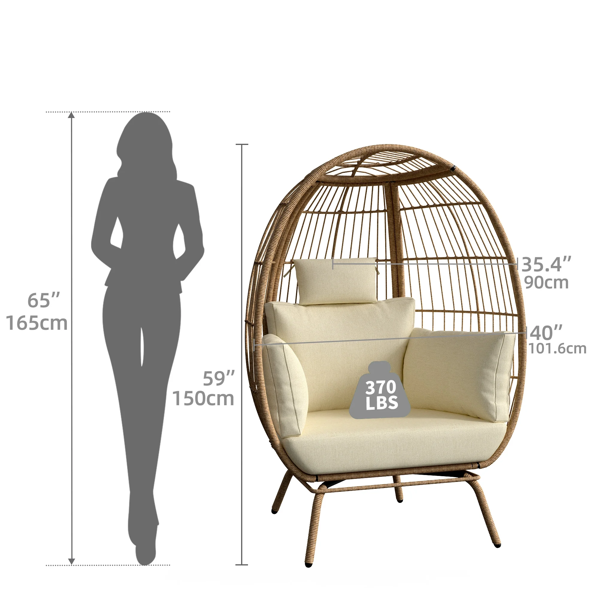 Dextrus Wicker Egg Chair Outdoor Indoor Oversized Lounger with Stand and Beige Cushions Egg Basket Chair for Patio Backyard Porch - Curated Treasures Market