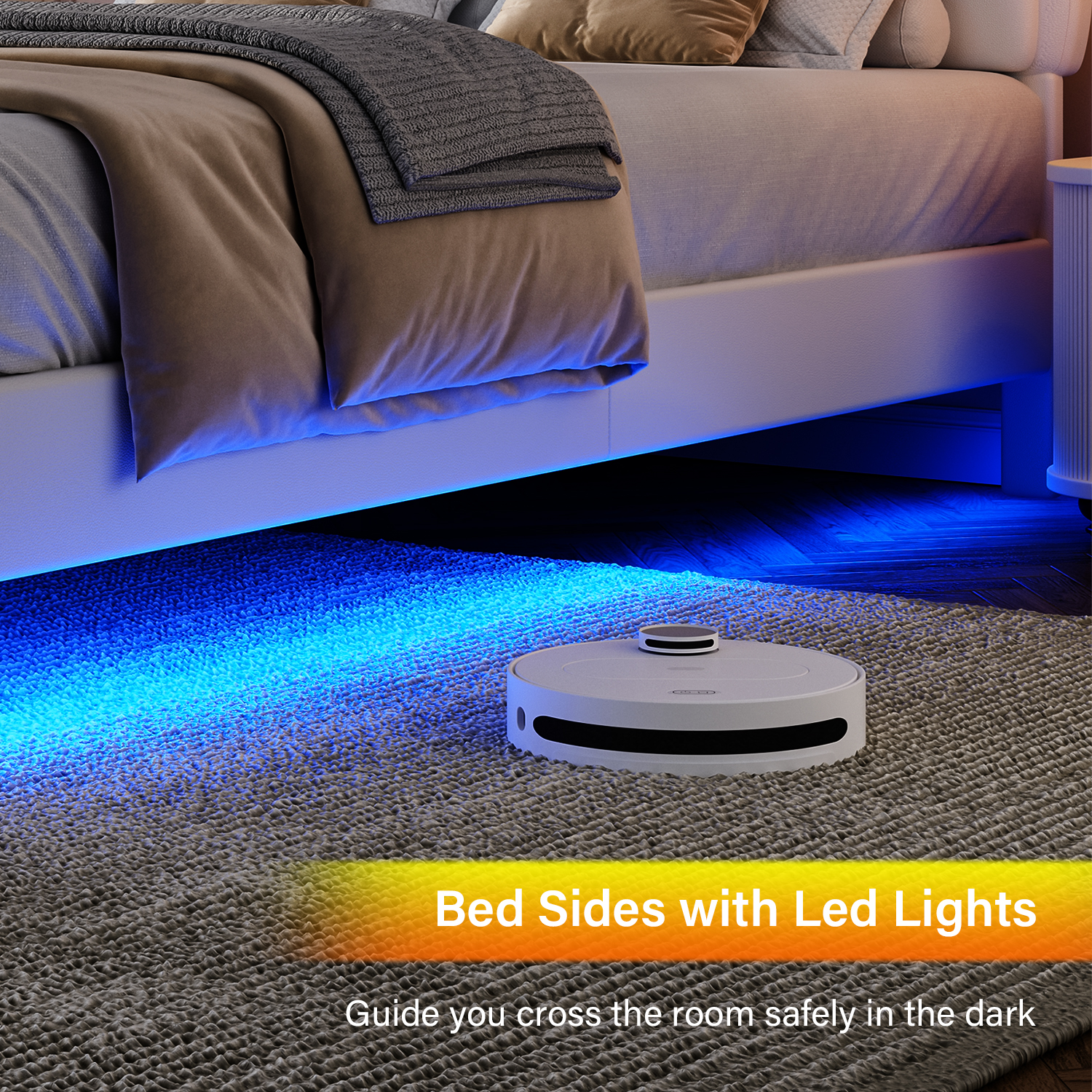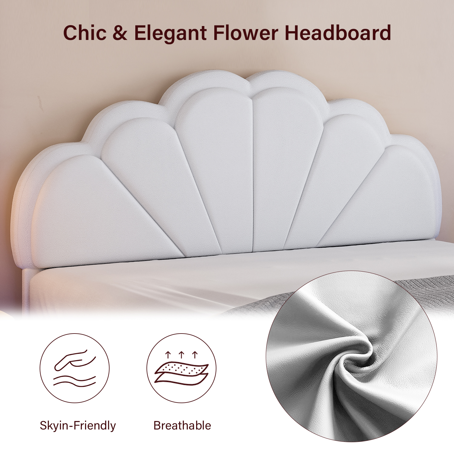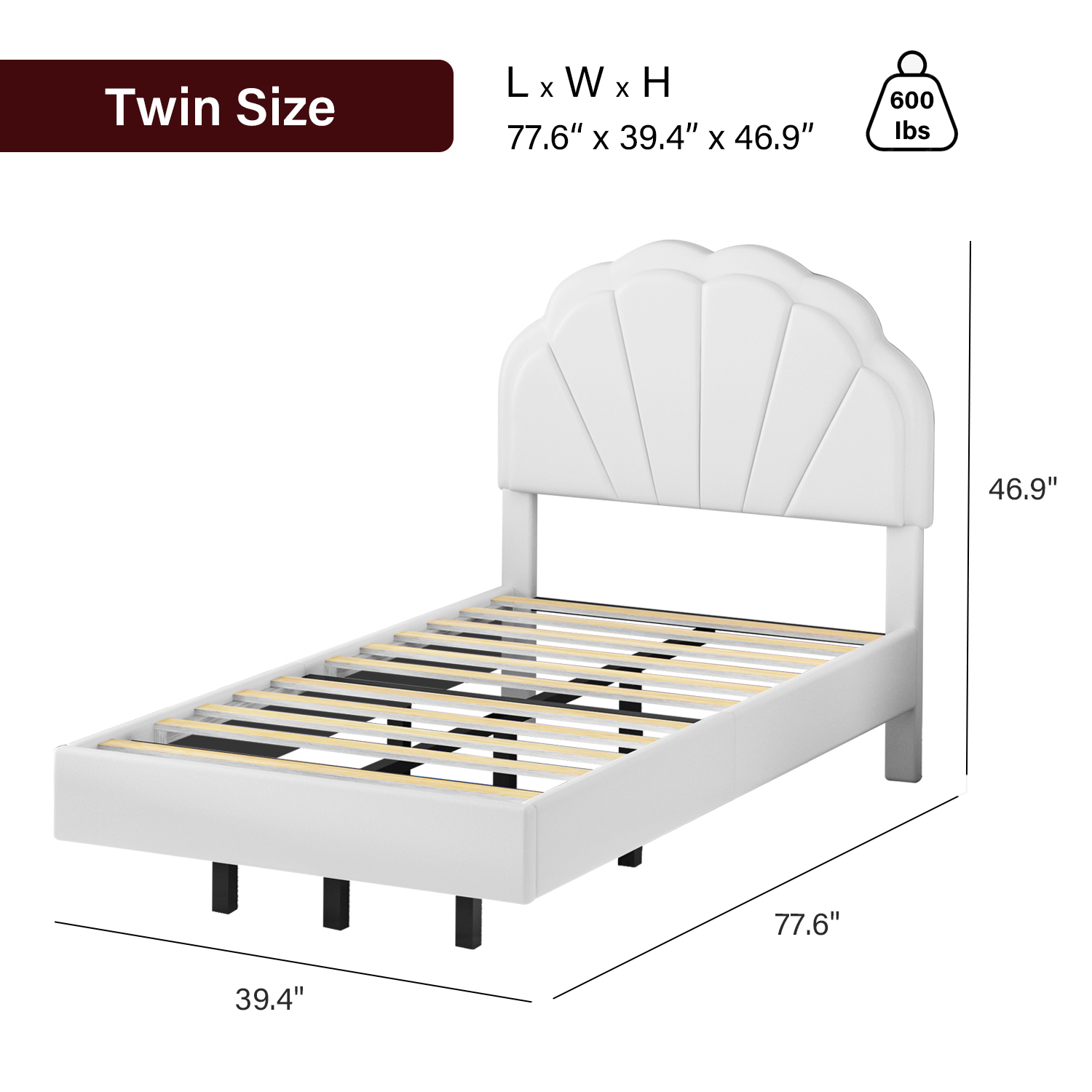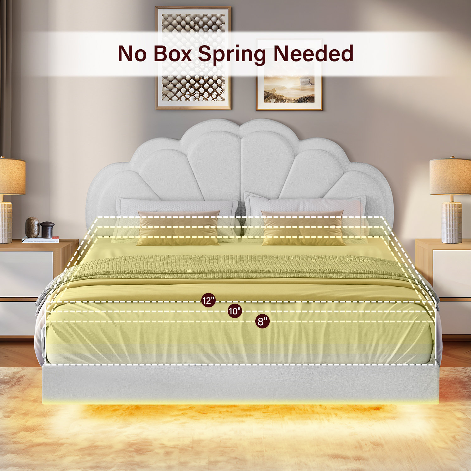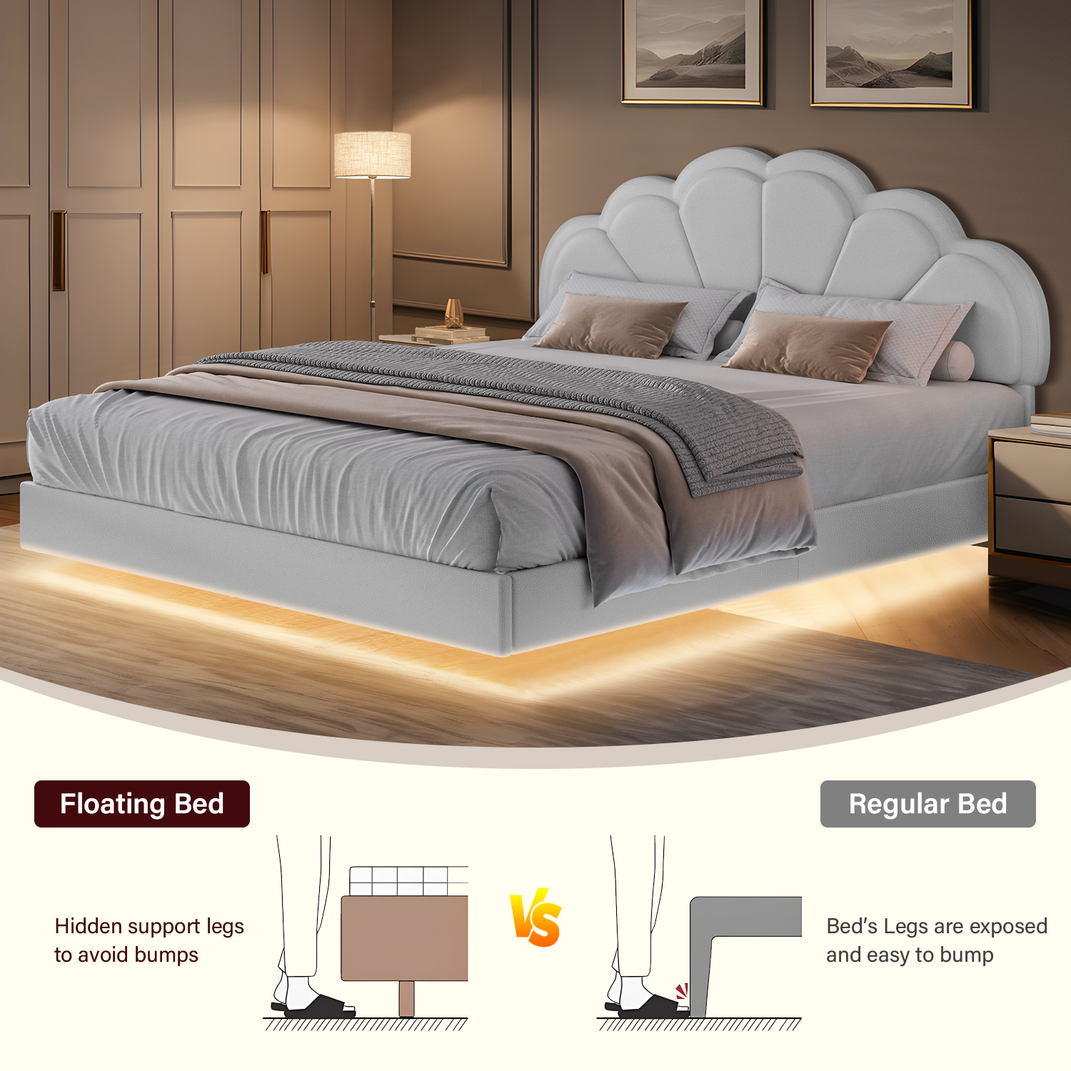 4 EVER WINNER Twin Size Floating Bed with LED Light, White LED Bed Frame with Flower Headboard, Upholstered Platform Bed Frame with Under Storage, White - Curated Treasures Market