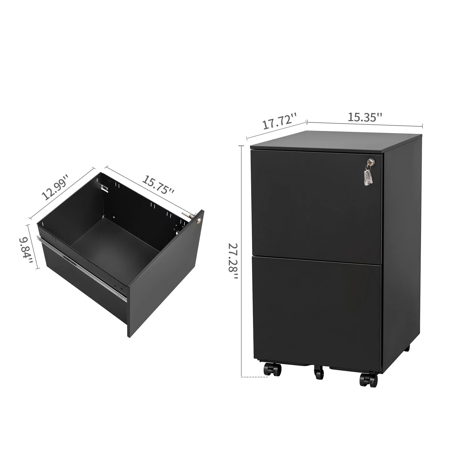 DEALTOPS Modern File Cabinet with 1 Lock and 2 Drawers for Legal/Letter A4 Size, Rolling Steel Storage Cabinet for Home and Office - Black - Curated Treasures Market