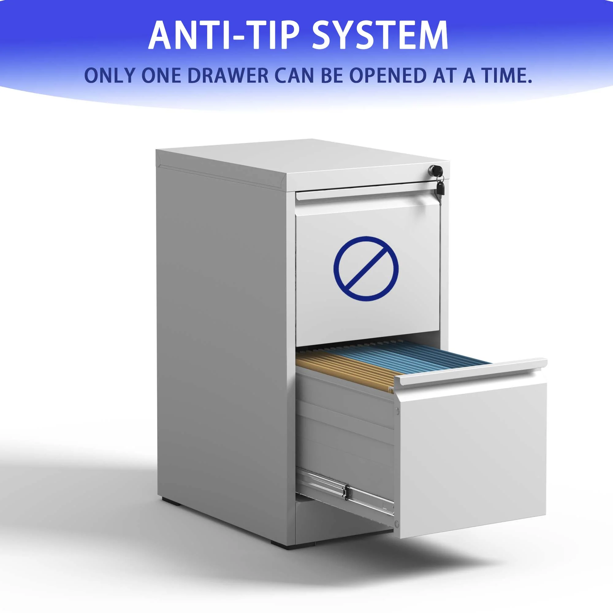 Steel 2-Drawer A4/Legal/Letter Filing Cabinet for Office or Home Corrosion Resistant, Full Extension Drawers, Anti-Tilt Design, Spacious Storage,White - Curated Treasures Market