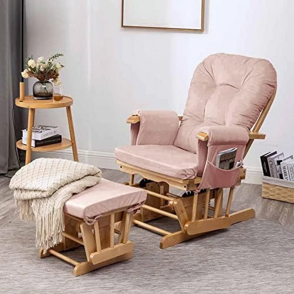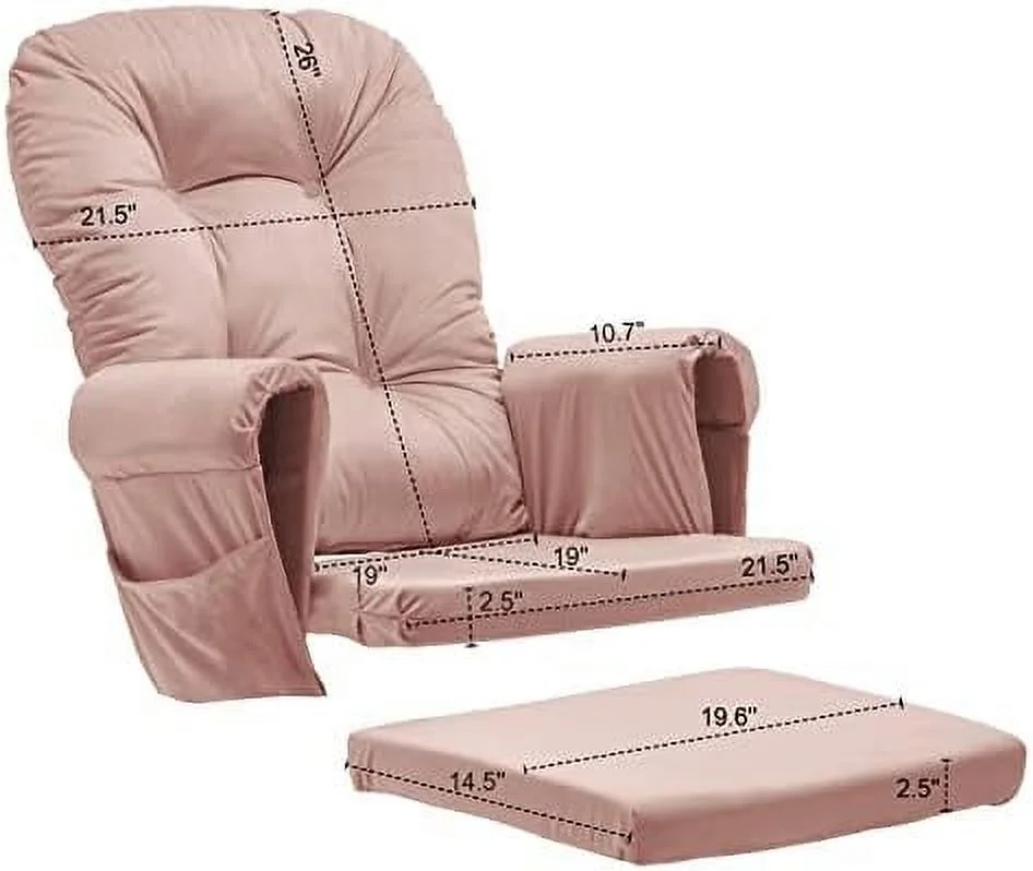 JYHOME Glider Rocker Replacement Cushions with Velvet Washable Non Slip for Glider Rocking Chair 5PCS Pink - Curated Treasures Market