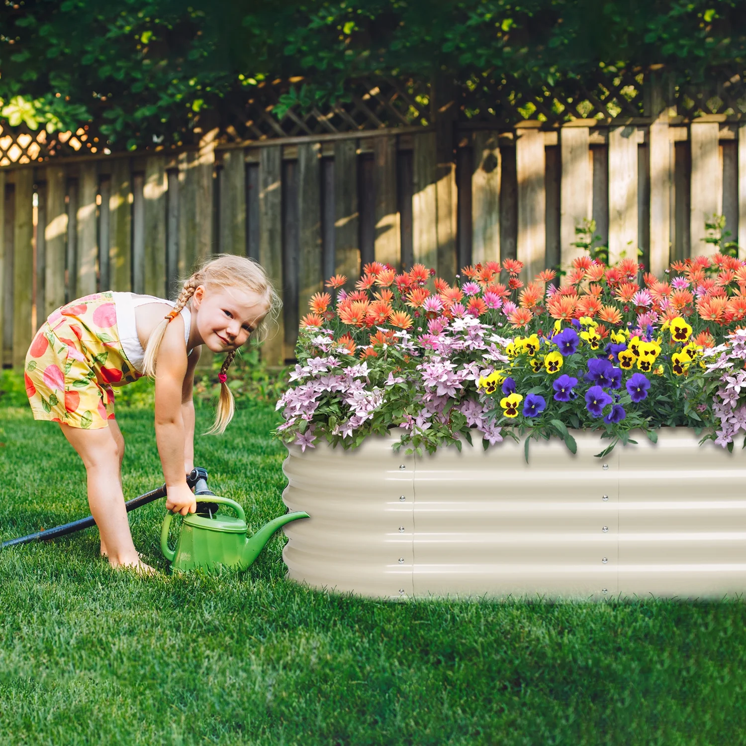 Aoodor 6-in-1 Modular Aluzinc Metal Raised Garden Bed - Outdoor Garden Planter Box for Vegetable, Flower, Herb - Beige (67''L x 47''W x 17''H) - Curated Treasures Market