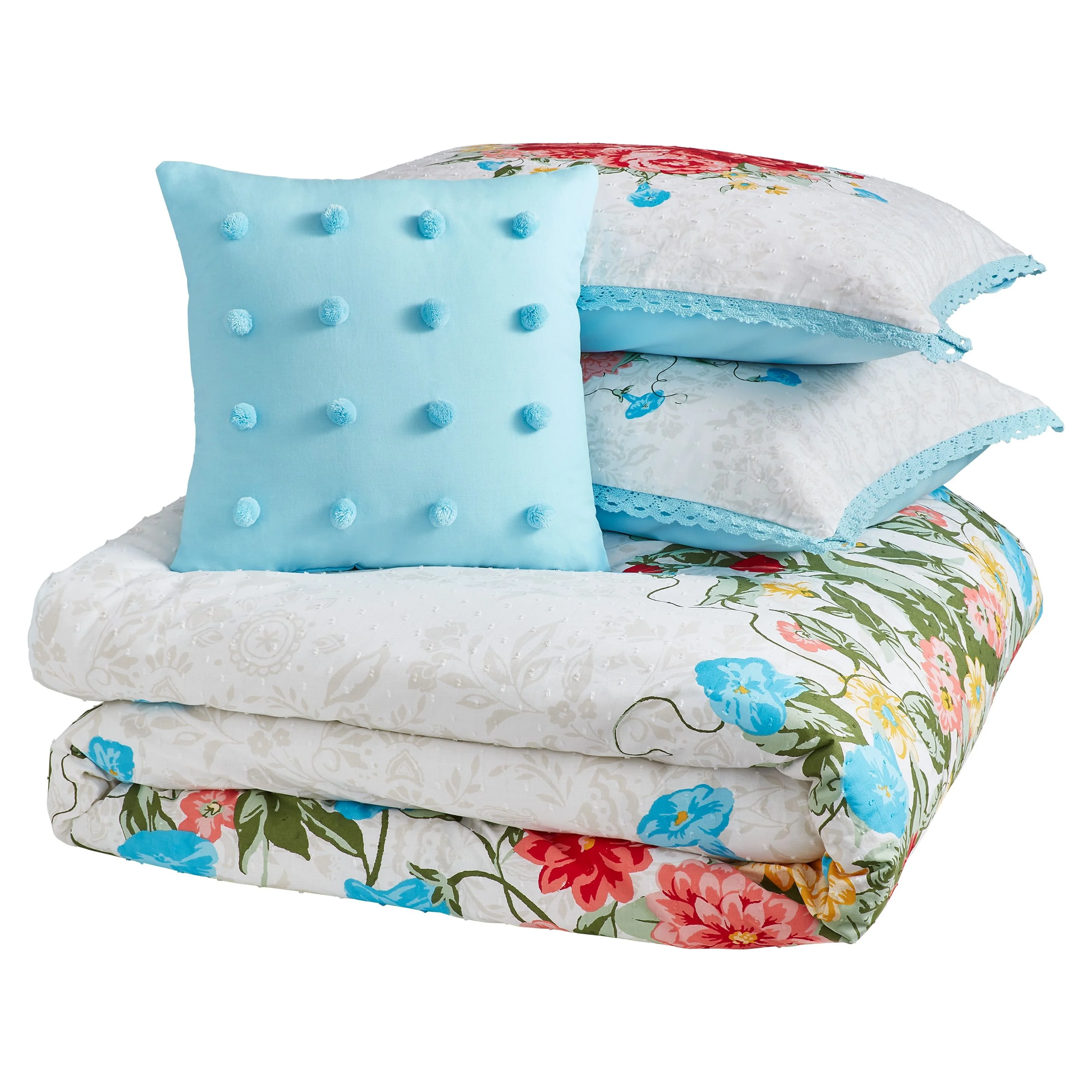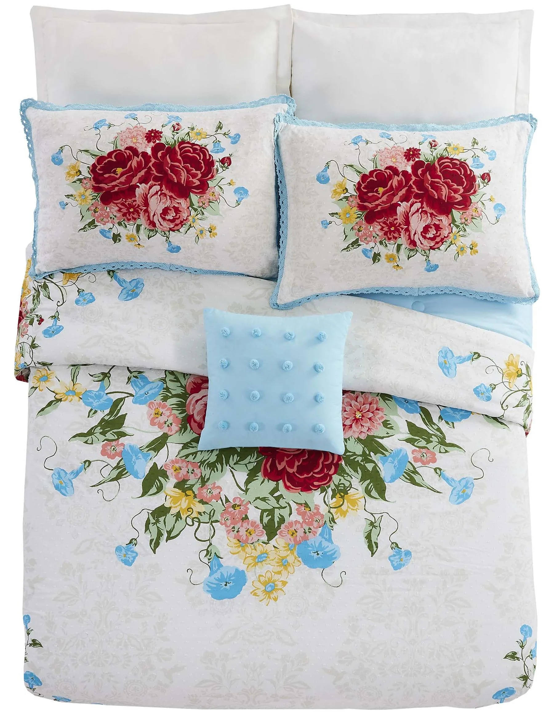 The Pioneer Woman Blue Cotton Sweet Rose 4-Piece Comforter Set, Full / Queen - Curated Treasures Market