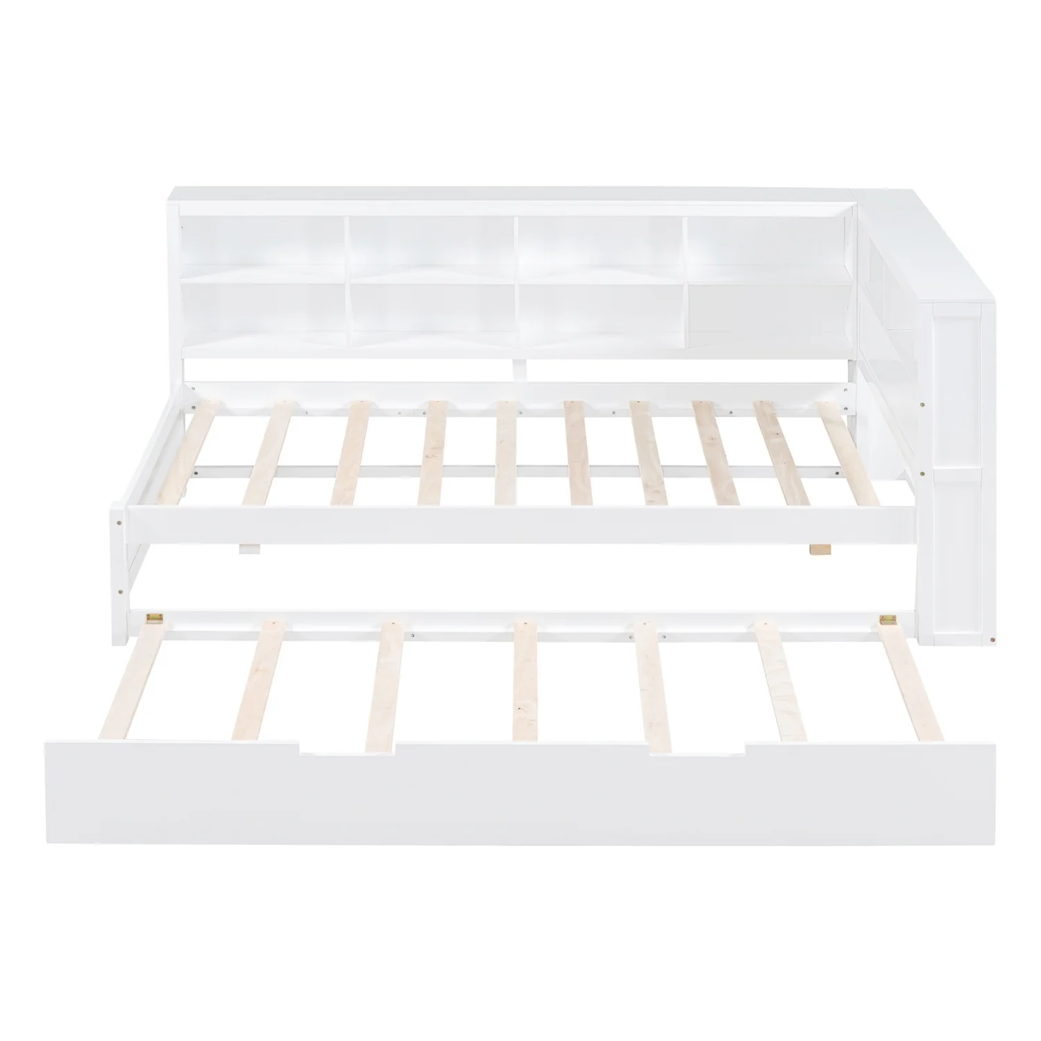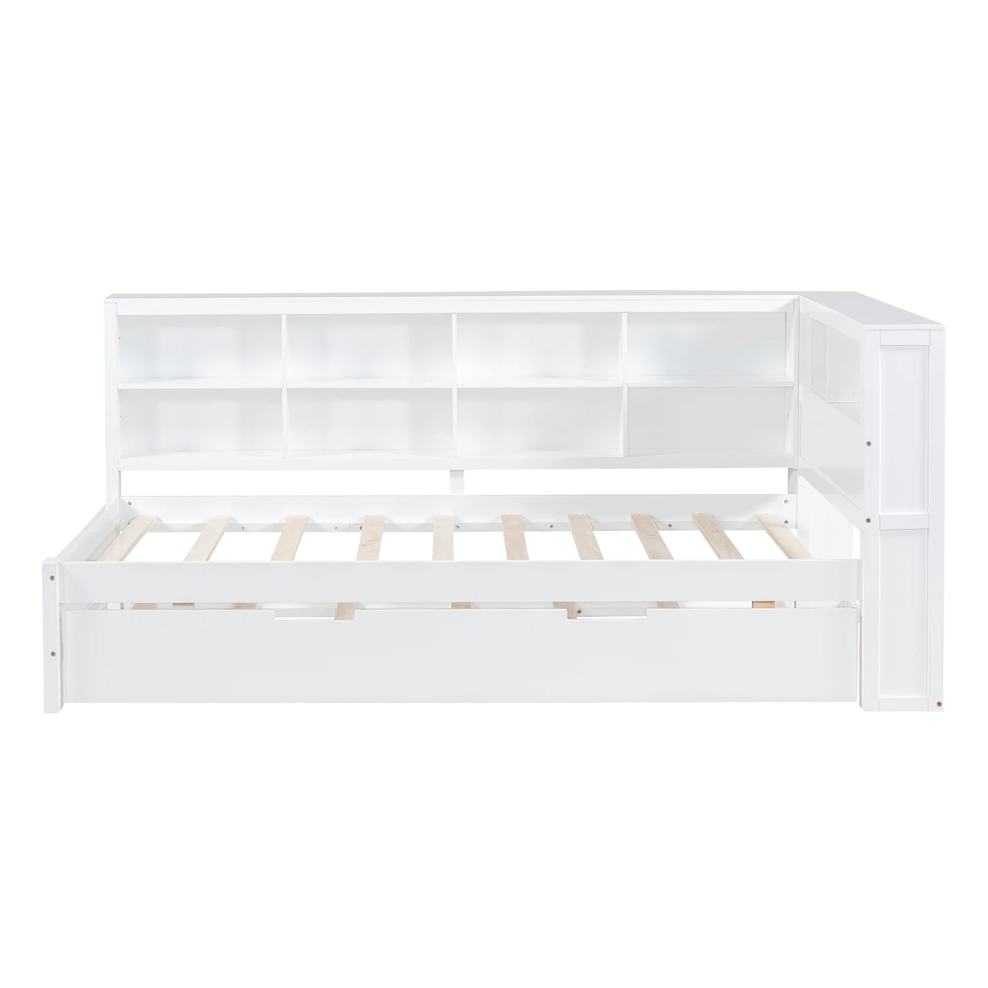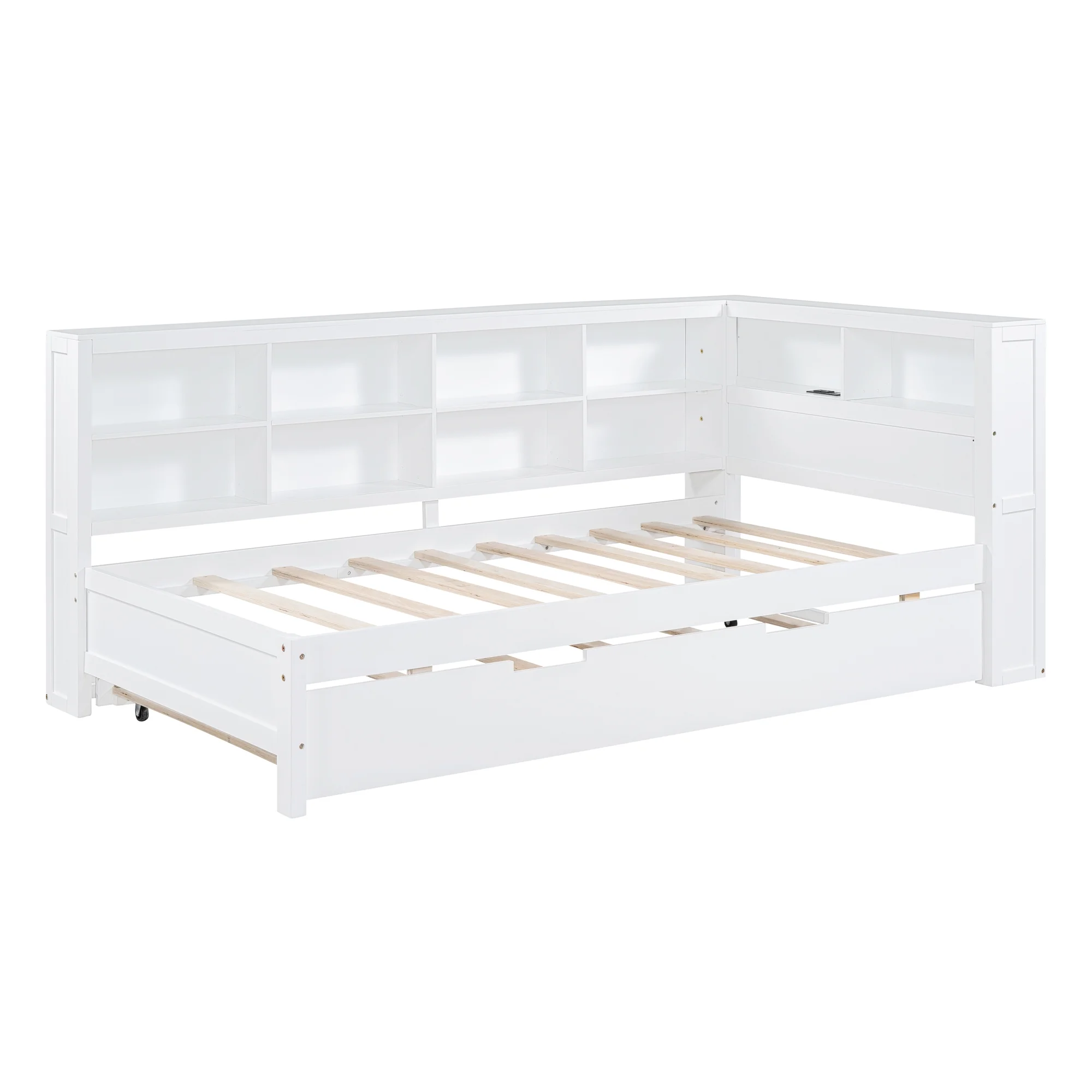 Churanty Twin Size DayBed with Trundle, Wooden Platform Bed with Storage Shelf and USB Charging Ports, Low Floor Bed for Kids Teens Adult Bedroom,White - Curated Treasures Market