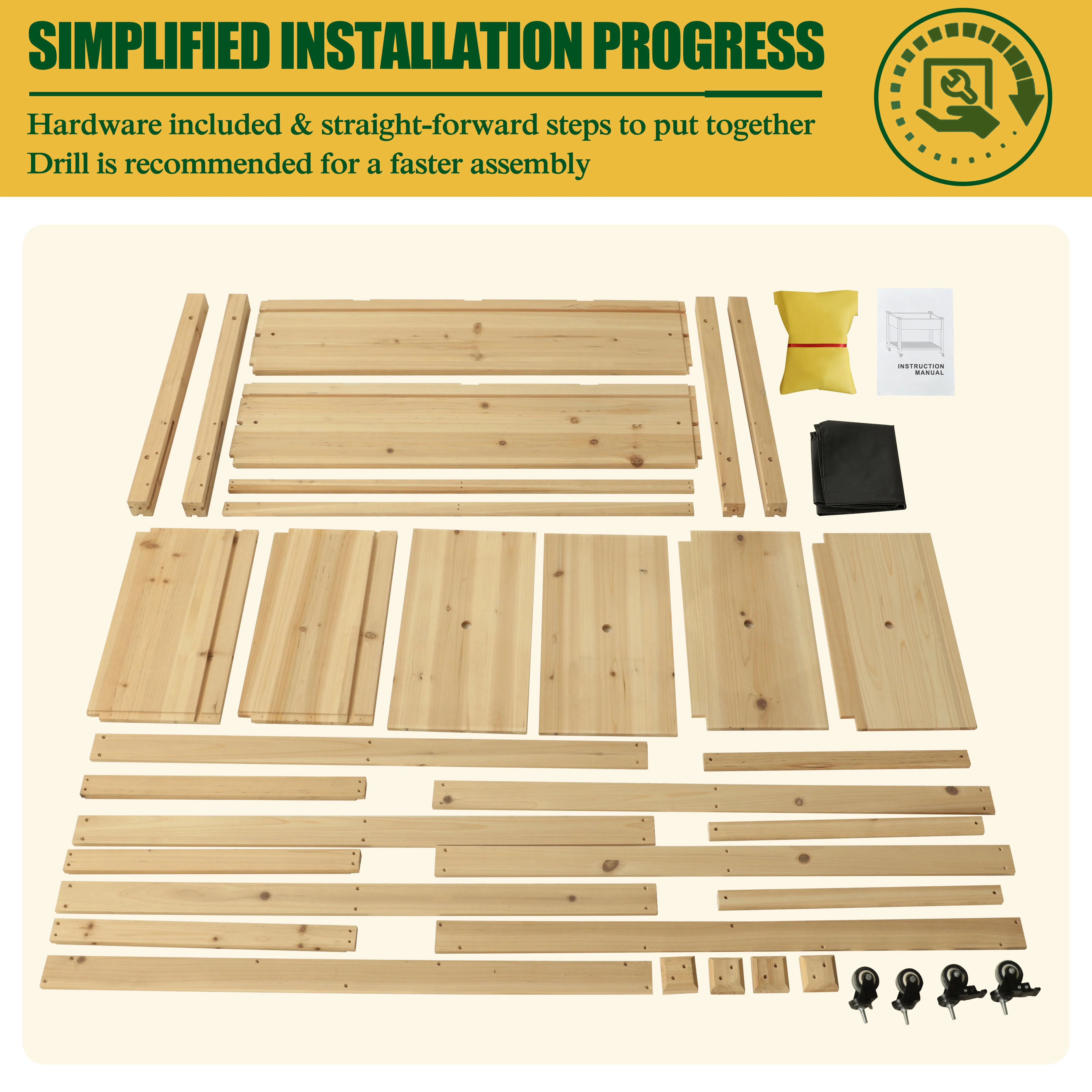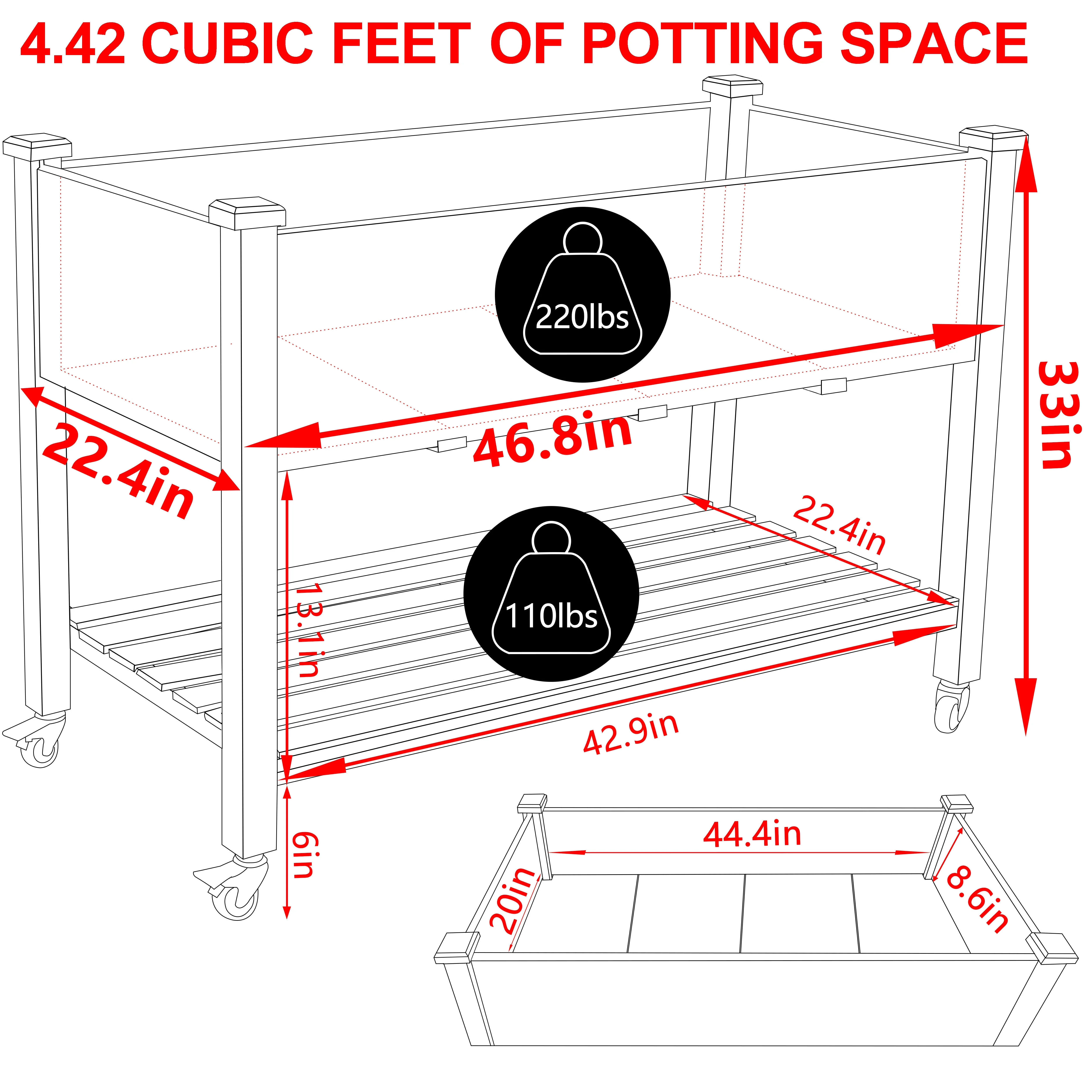 VEIKOUS Raised Garden Bed, 47''L x 22''W x 33''H Elevated Wood Planter W/ Wheels and Storage Shelf for Herbs and Vegetables - Curated Treasures Market