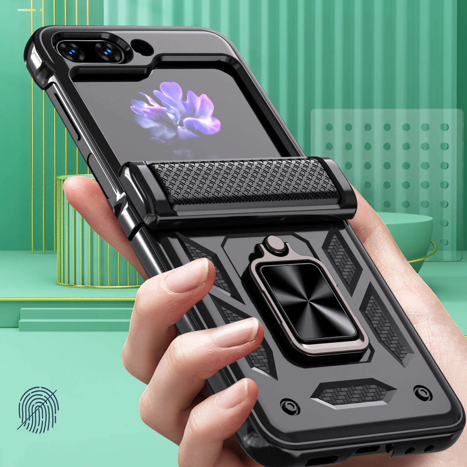Feishell for Samsung Galaxy Z Flip5 Case with Magnetic Hinge Protection,Heavy Duty Military Drop 360 Rotatable Ring Kickstand Shockproof Armor Phone Case for Samsung Galaxy Z Flip5 2023,Purple - Curated Treasures Market