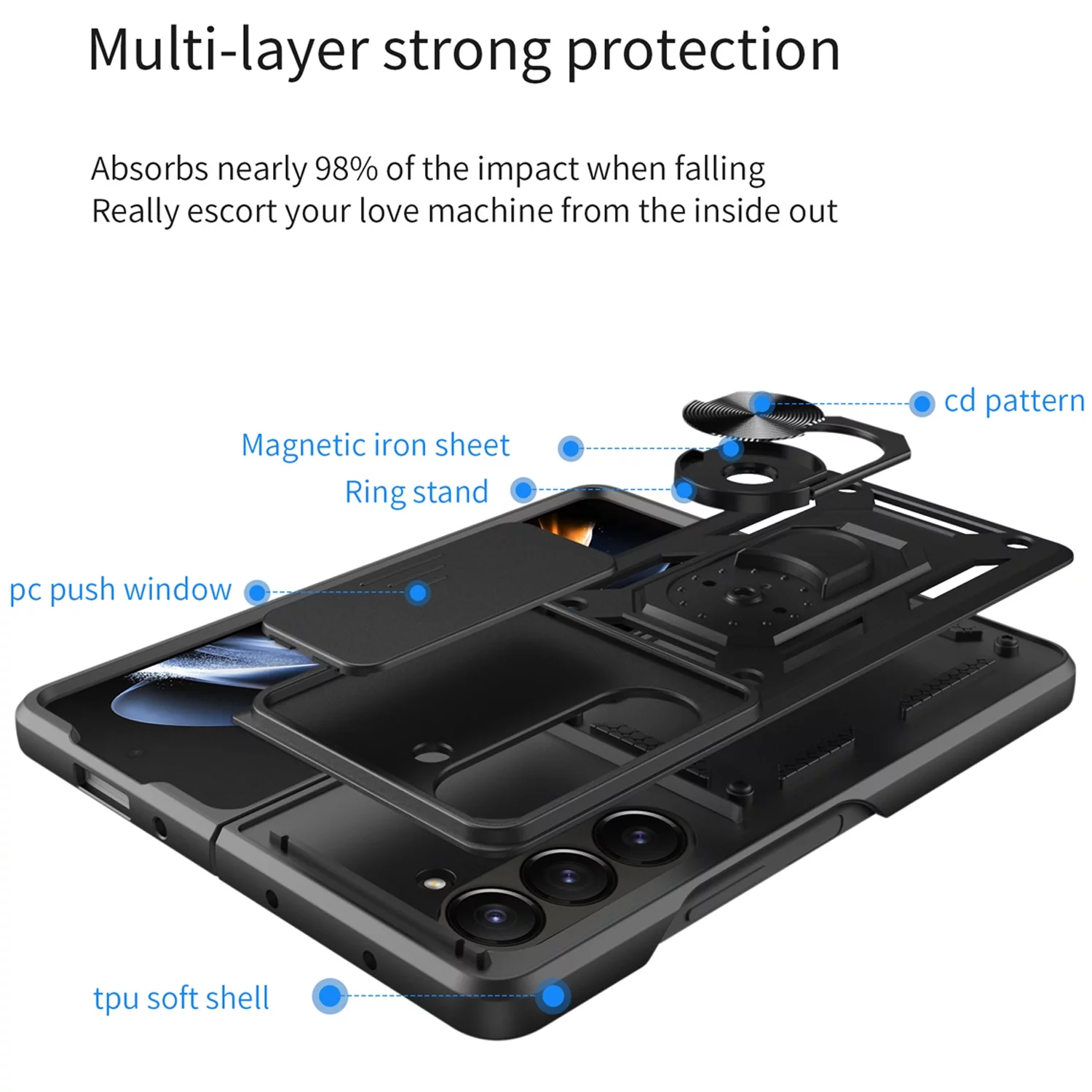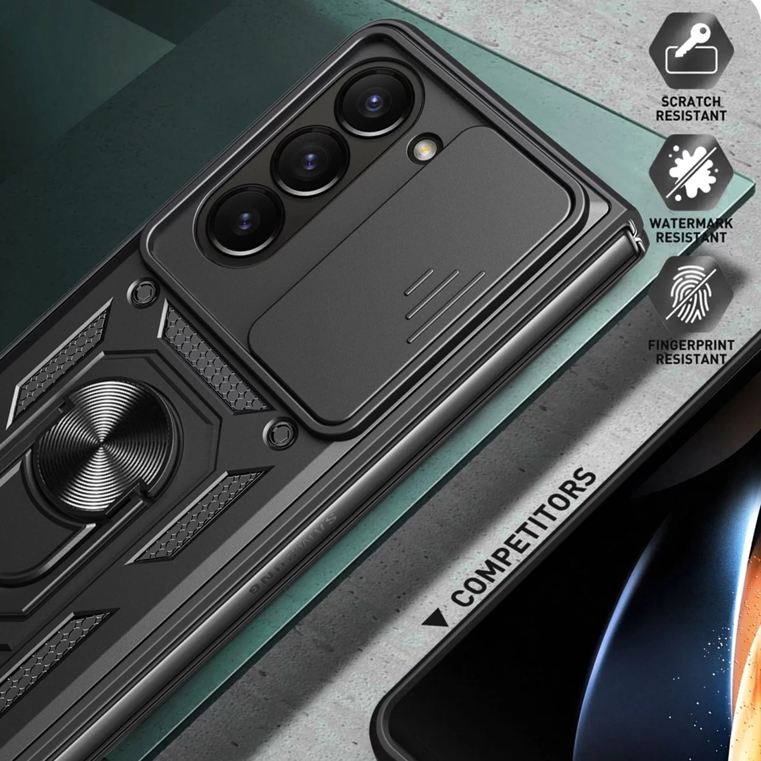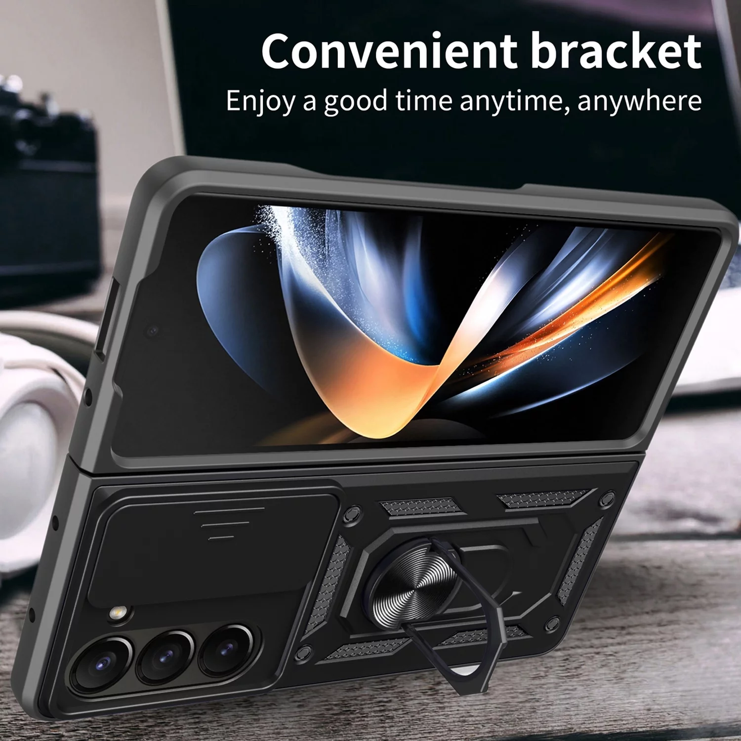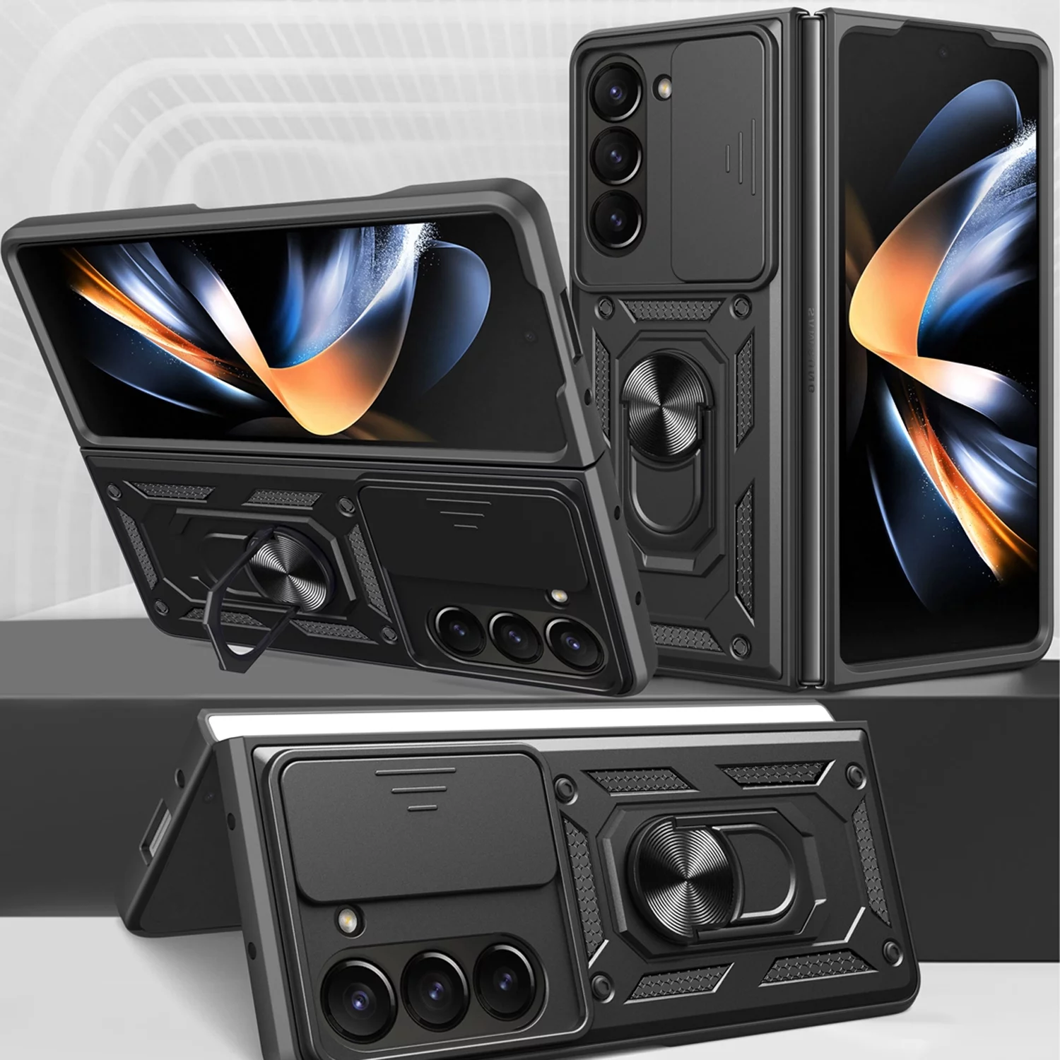 Decase for Samsung Galaxy Z Fold 5 Case with Stand, Slide Lens Cover & Drop Proof & 360°Ring Magnetic Kickstand Military Grade Heavy Duty Protective Case for Galaxy Z Fold 5 5G 2023, Red - Curated Treasures Market