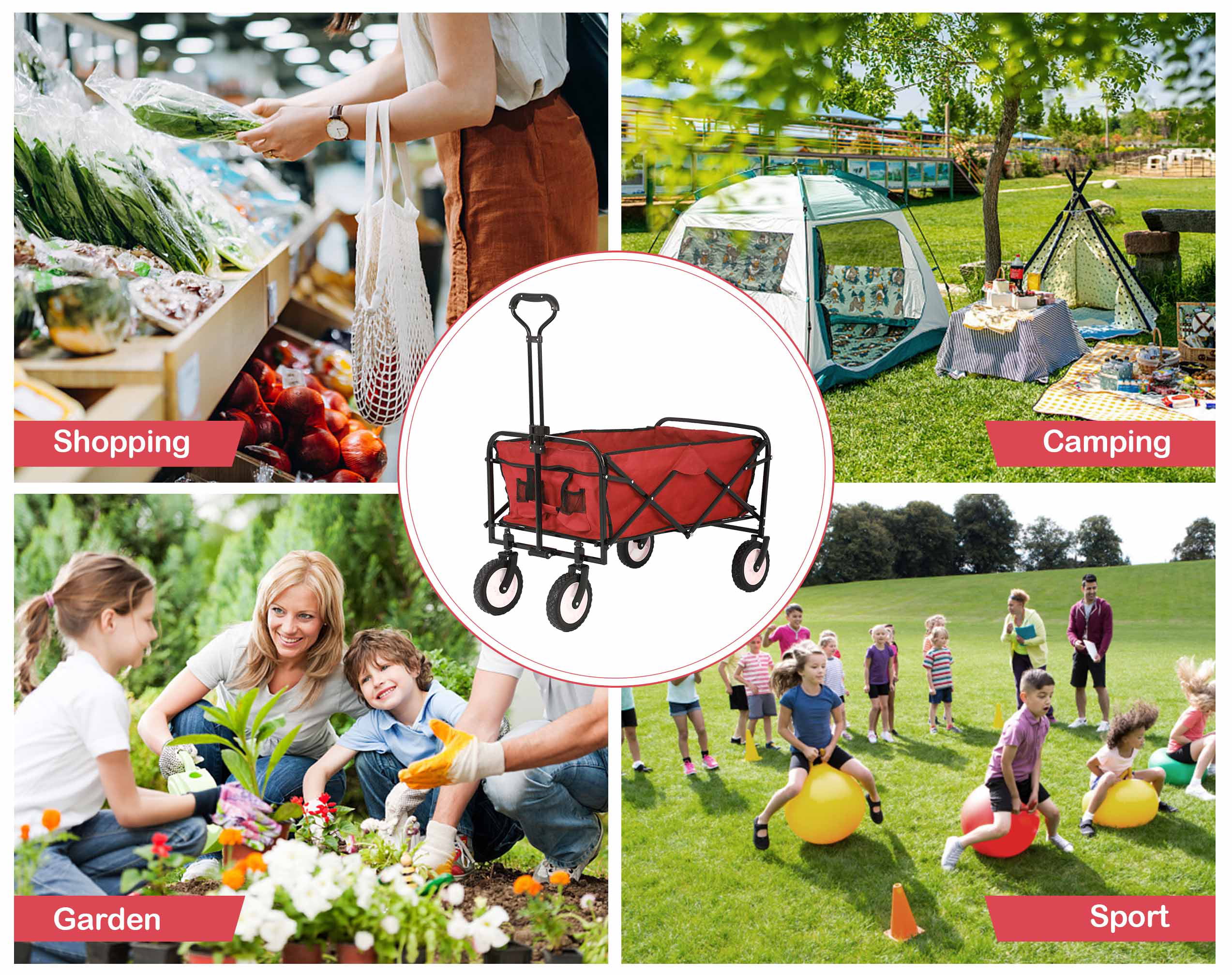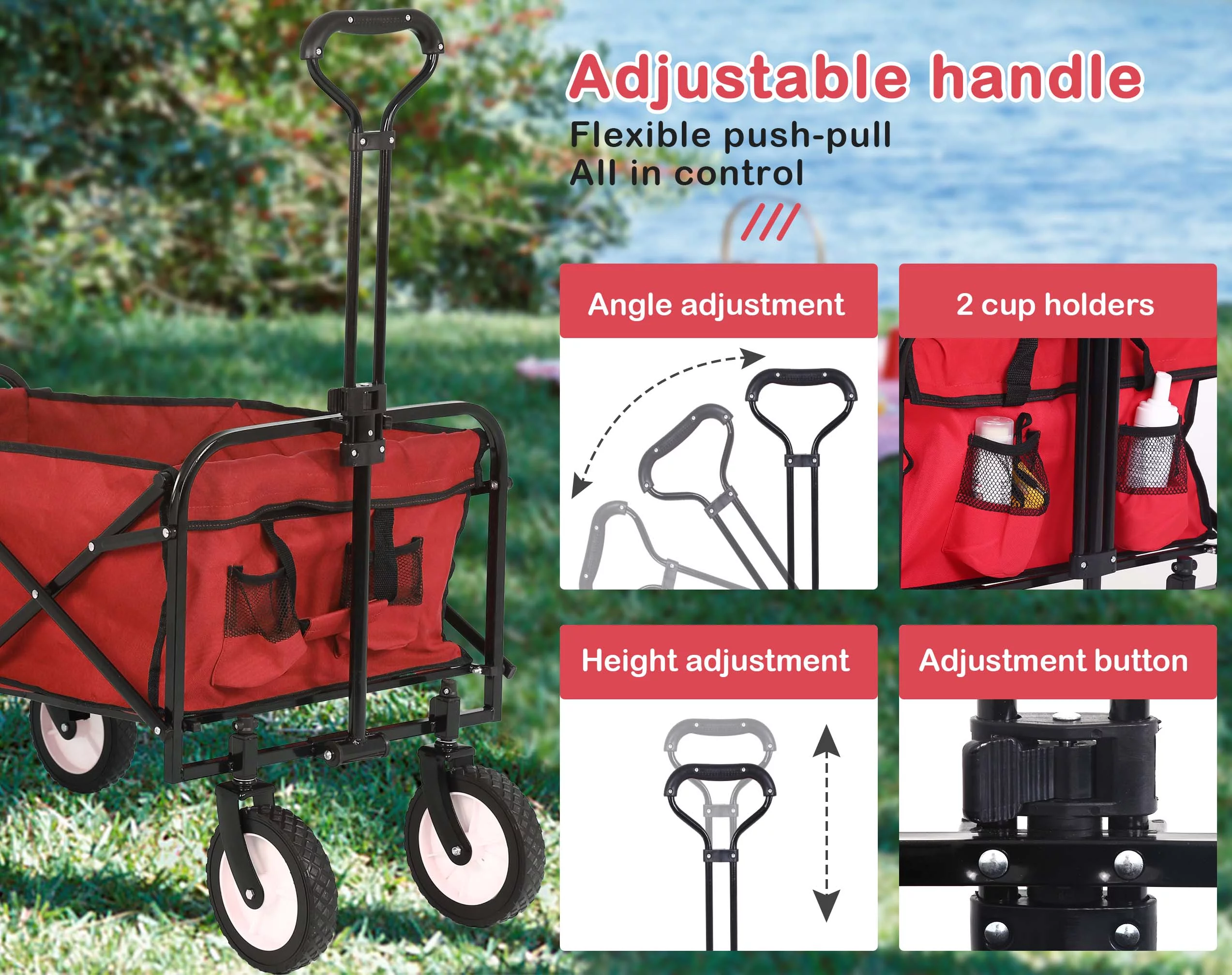 YRLLENSDAN Collapsible Garden Cart with Wheels, Folding Garden Carts and Wagons Outdoor Utility Garden Wagon with 360 Degree Swivel Wheels & Adjustable Handle - Curated Treasures Market