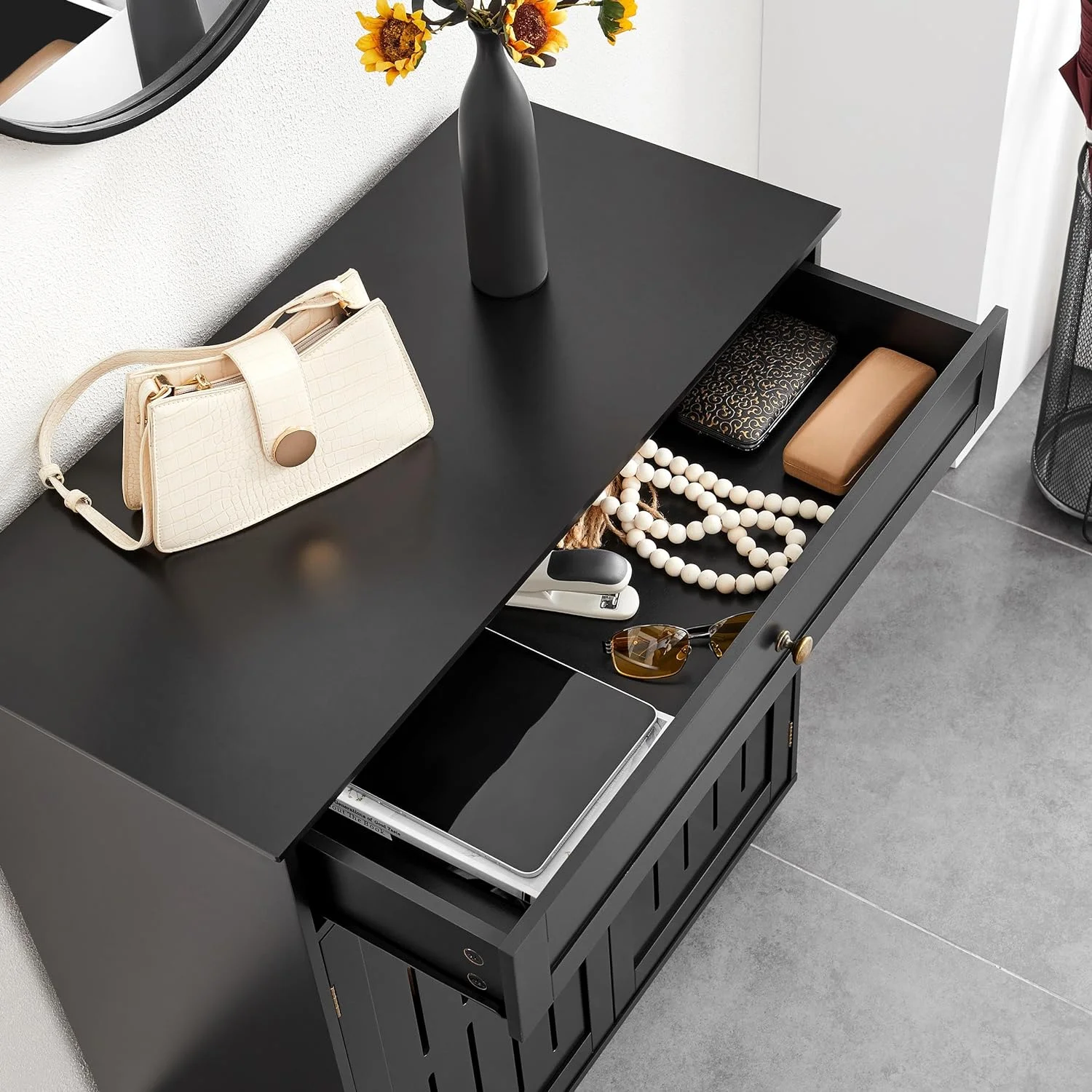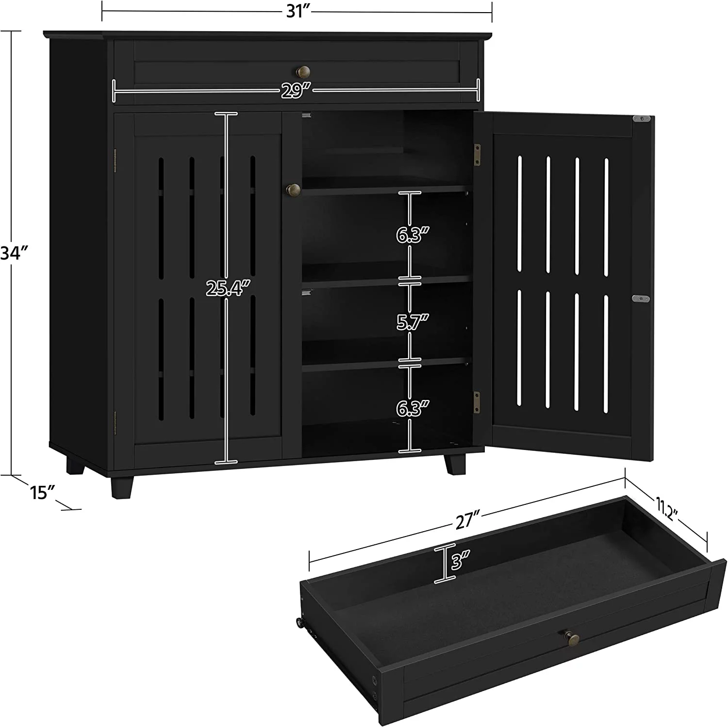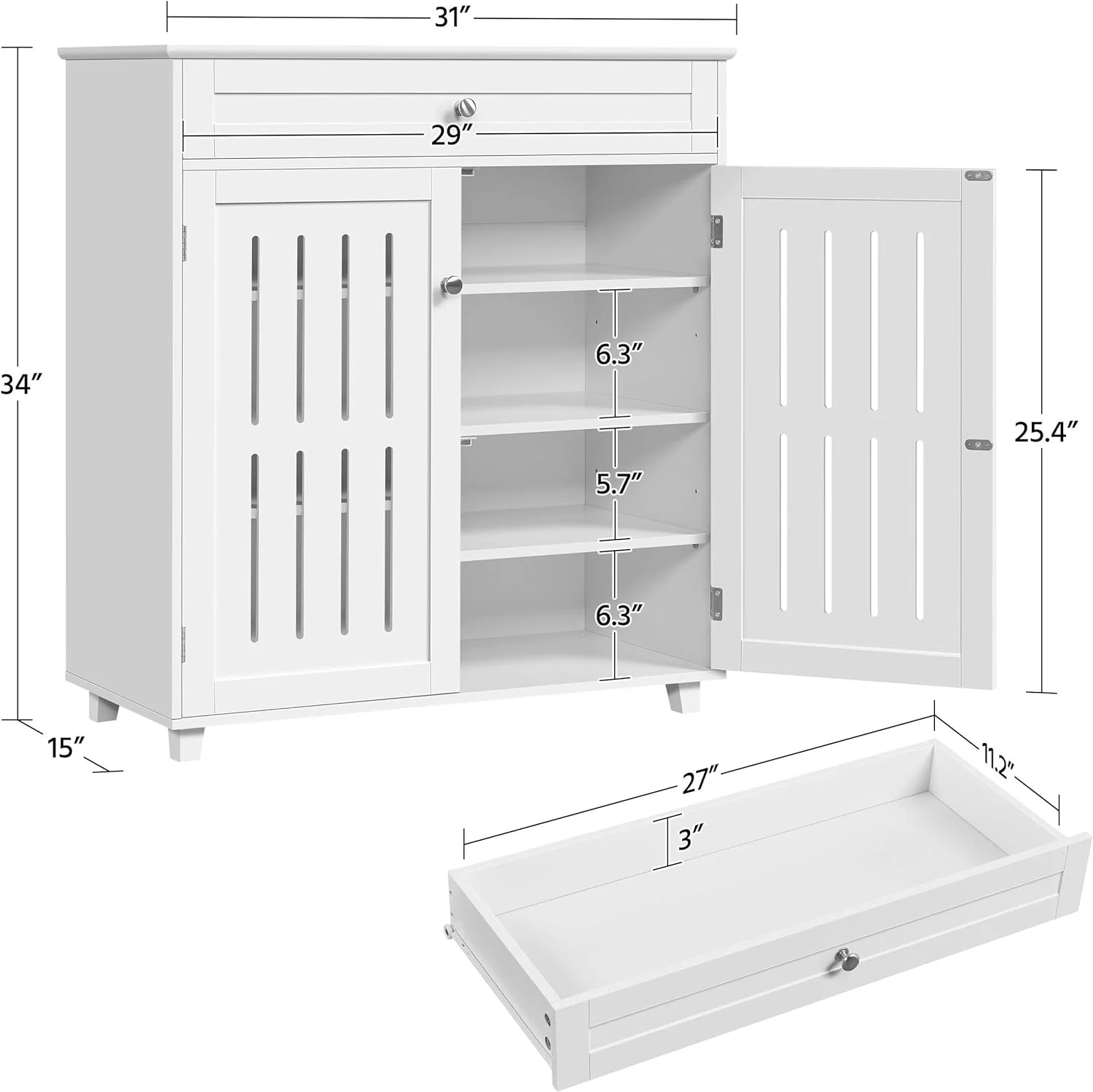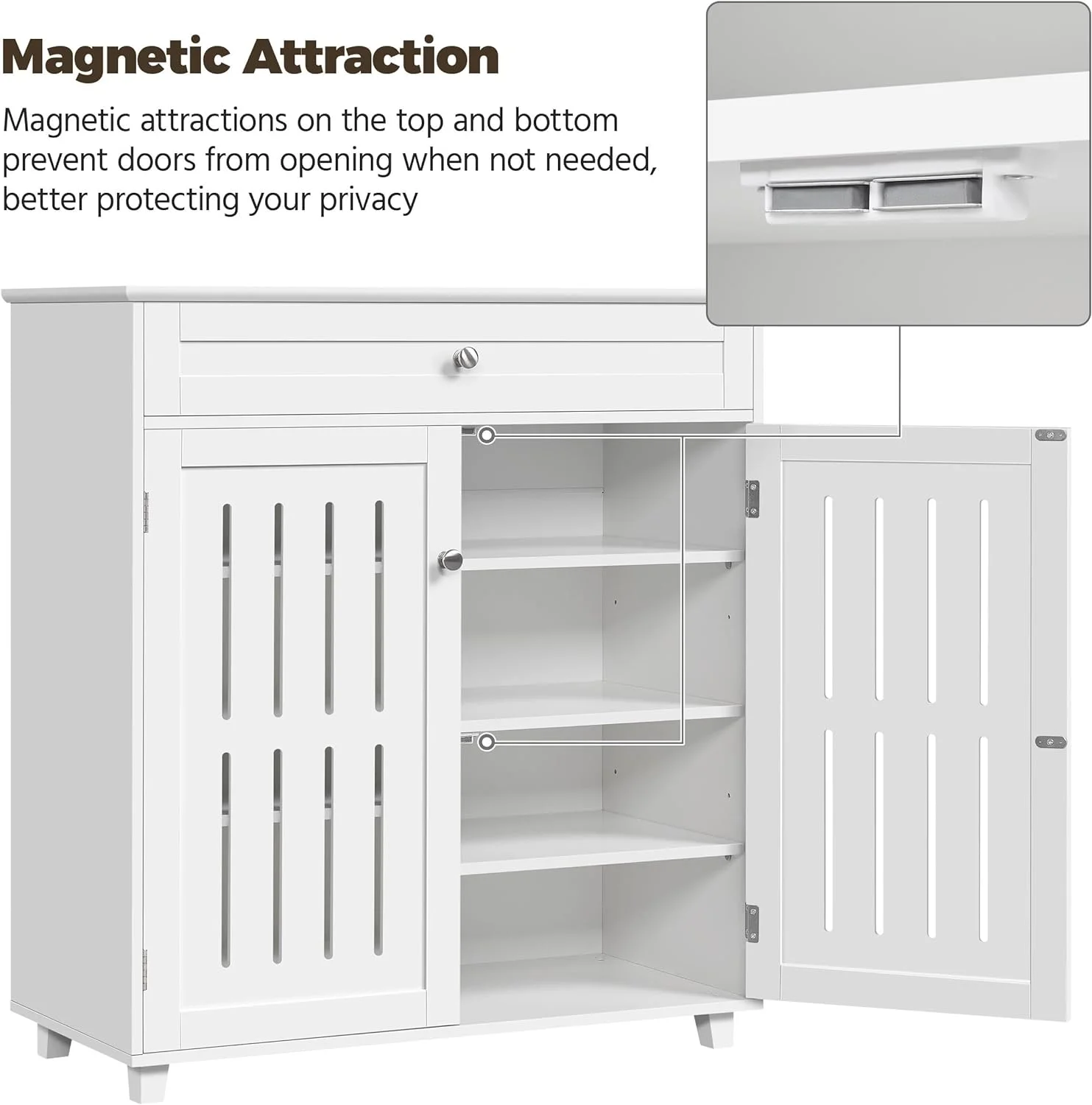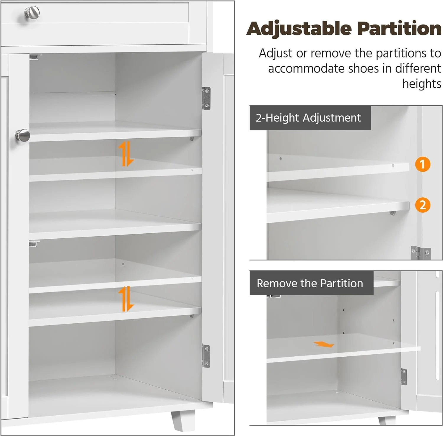 Shoe Cabinet, 4-Tier Shoe Storage Cabinet with Drawer & Adjustable Shelves, Wooden Shoe Rack Organizer with Louvered Doors for Entryway, Hallway, Bedroom, Closet, Living Room, White - Curated Treasures Market