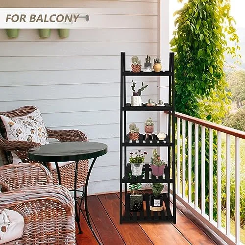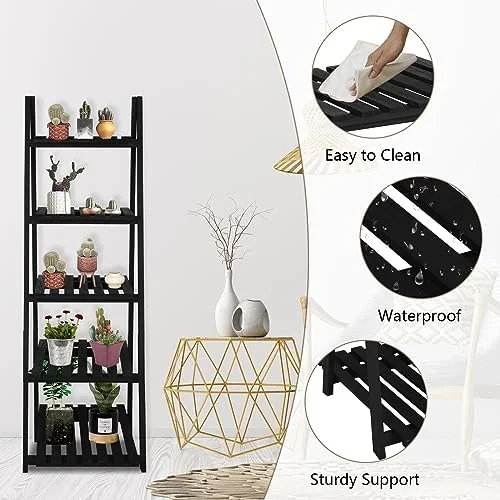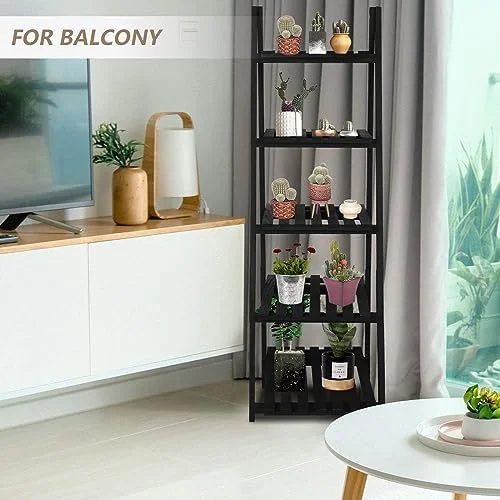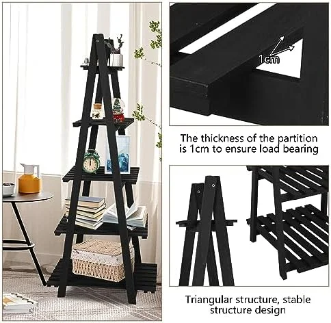 MQLIFEBOOM TAG 3 Tier Ladder Wood -Shaped Bookshelves Ladder Bookcase Decorative Leaning Ladder Plant Display Rack Room Home Office Kitchen Bedroom Balcony - Curated Treasures Market