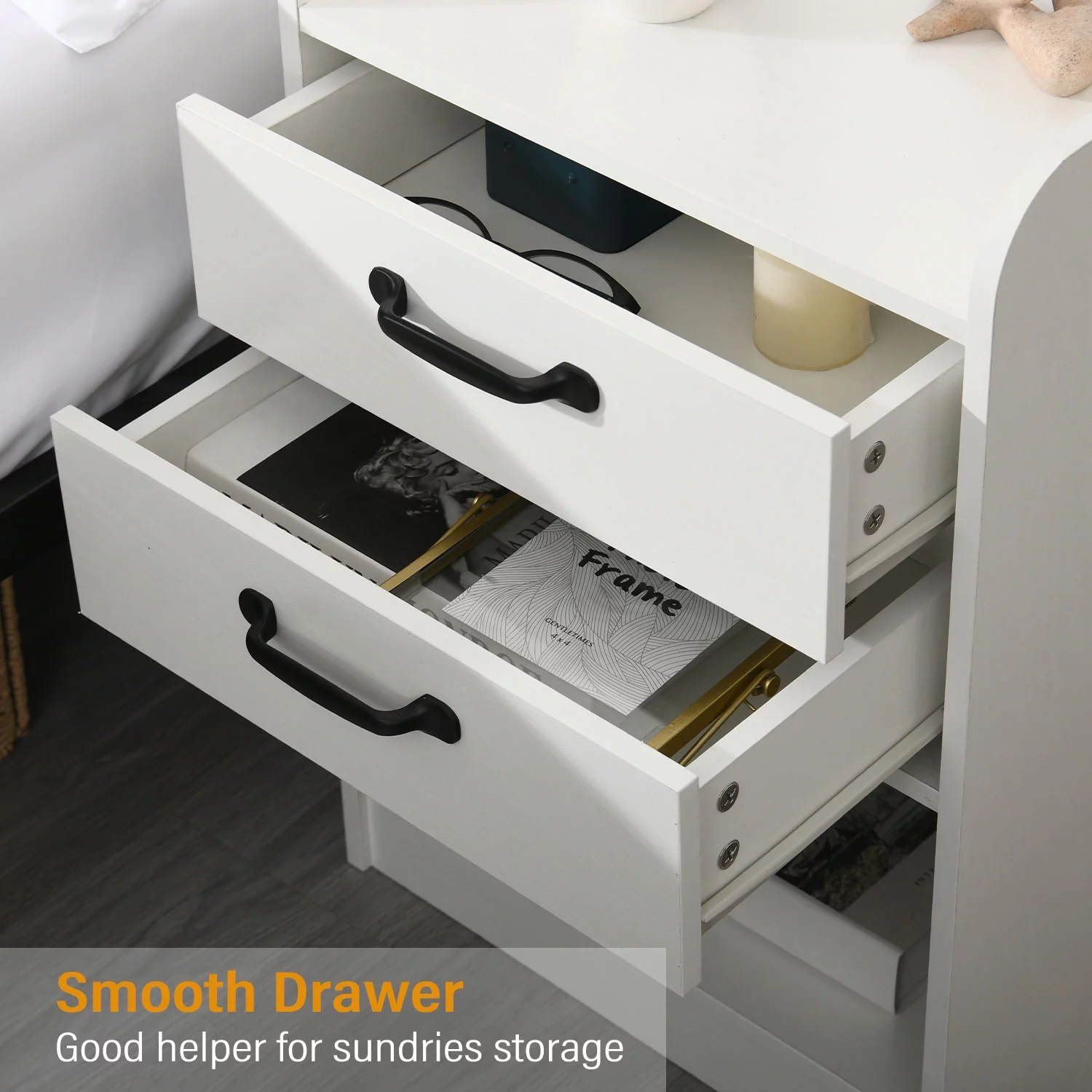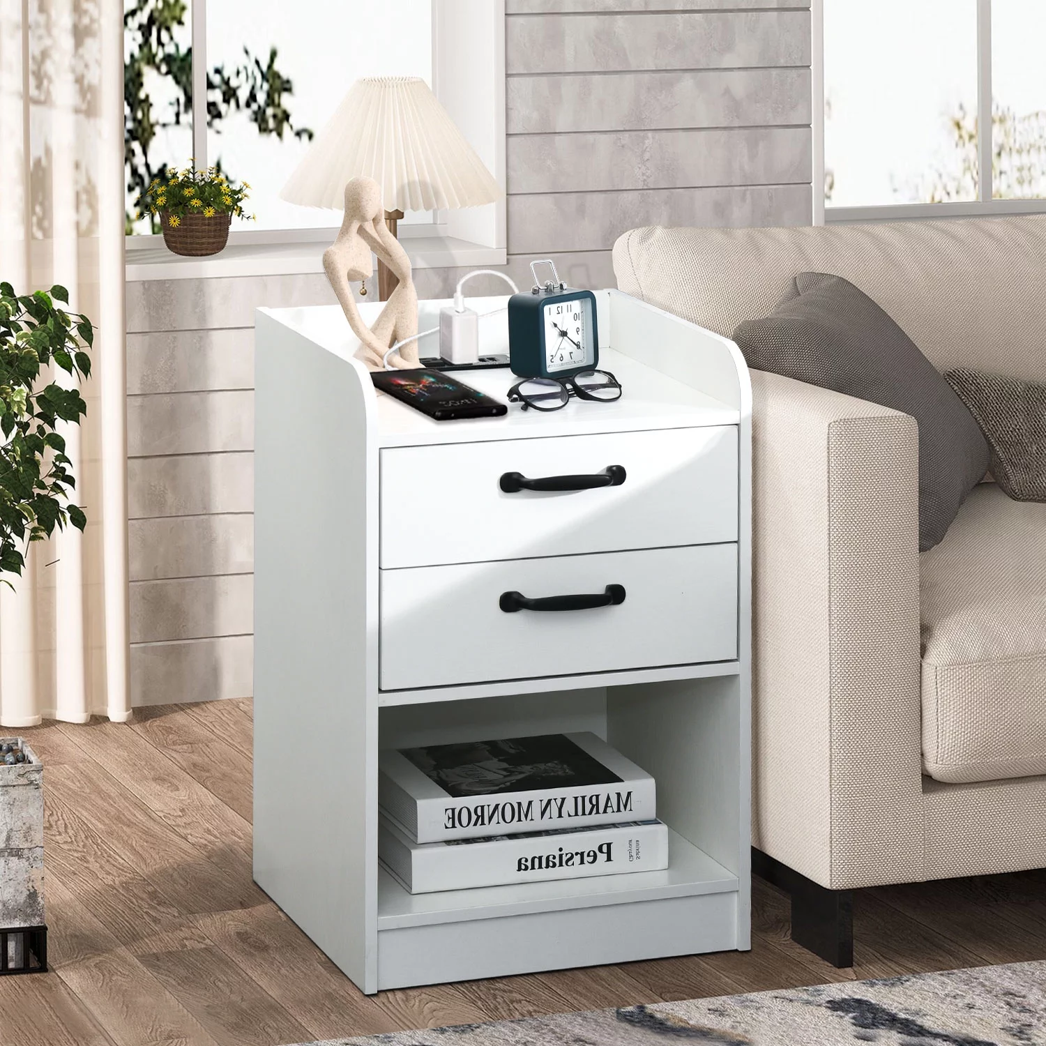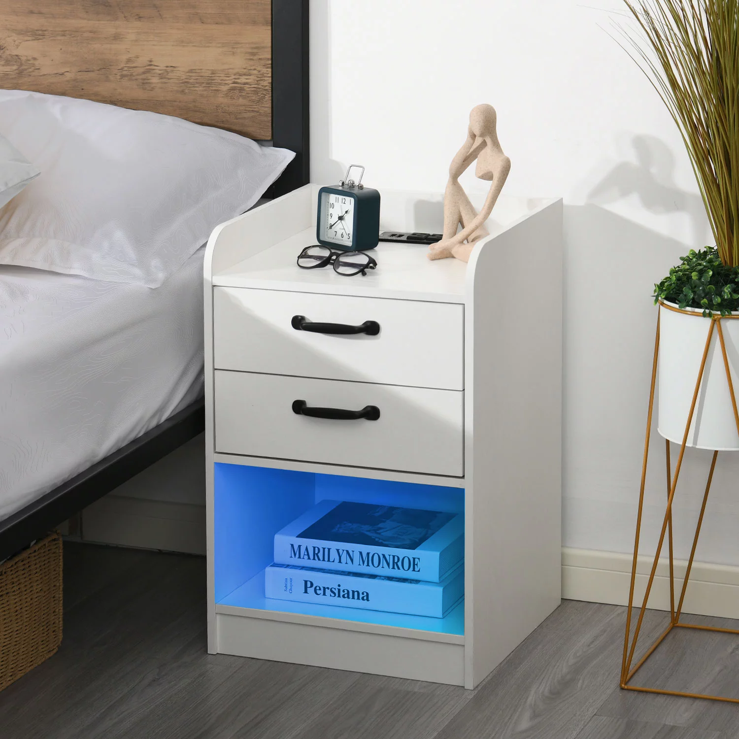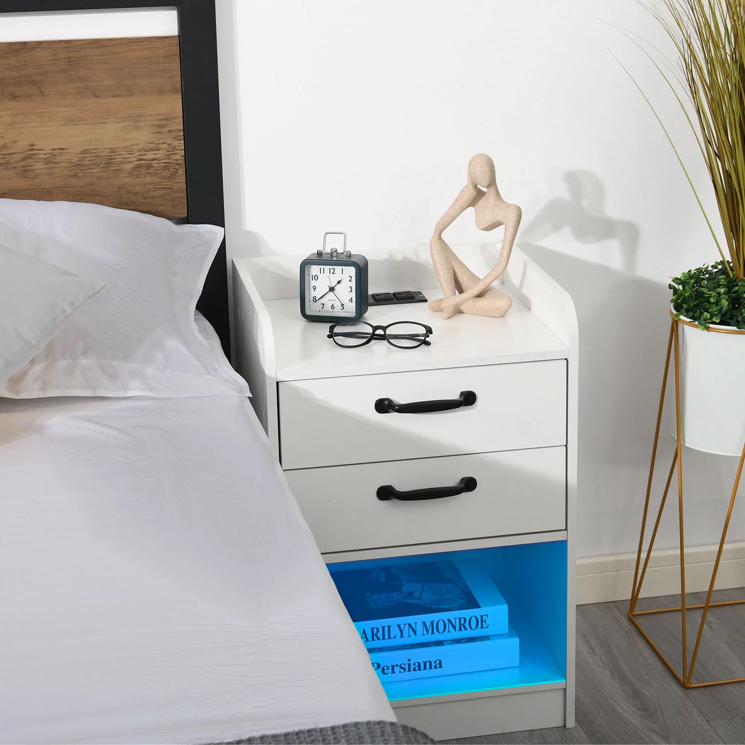 Nightstand with Charging Station and LED Lights, Side Table with Storage Set of 2, 2 Drawers Bedroom End Table, USB Ports, Beside Table for Bedroom Living Room, White - Curated Treasures Market