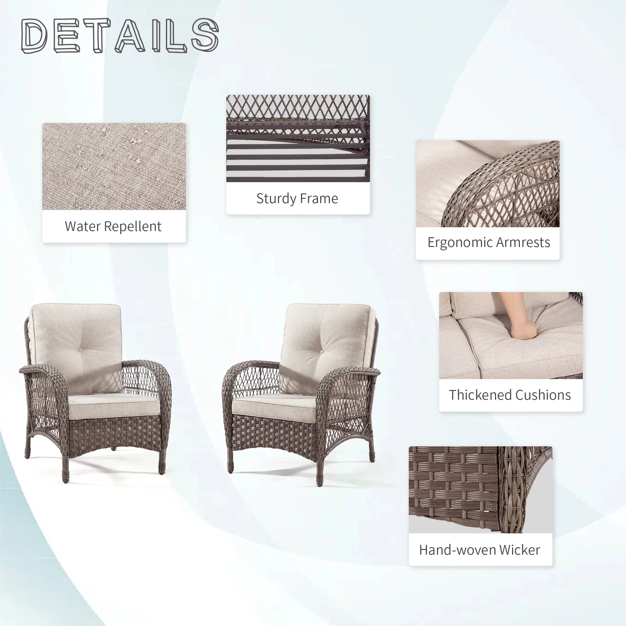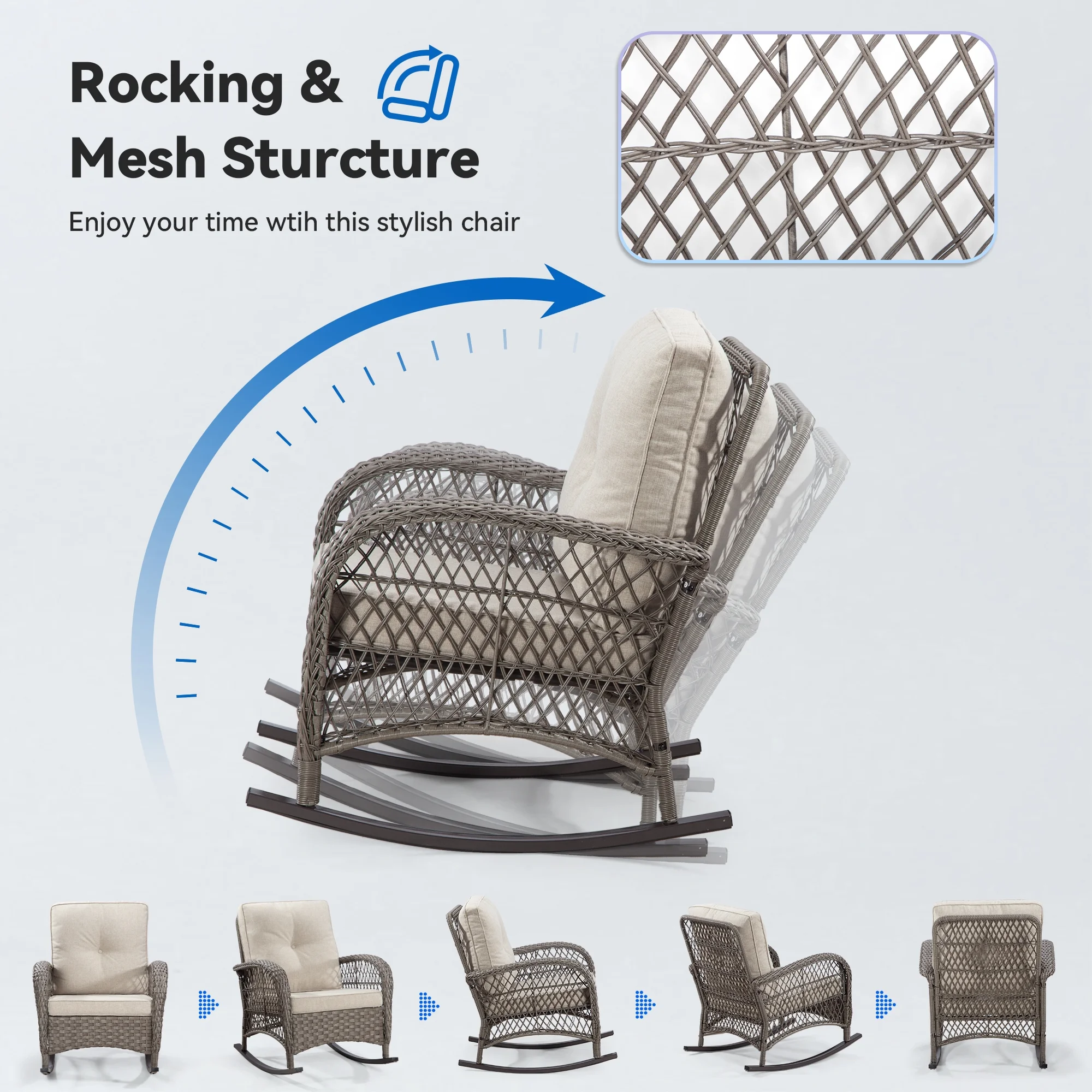 MeetLeisure 4-Piece Outdoor Wicker Chairs, Including 2 Armchairs and 2 Rocking Chairs, Beige - Curated Treasures Market
