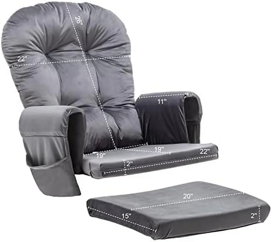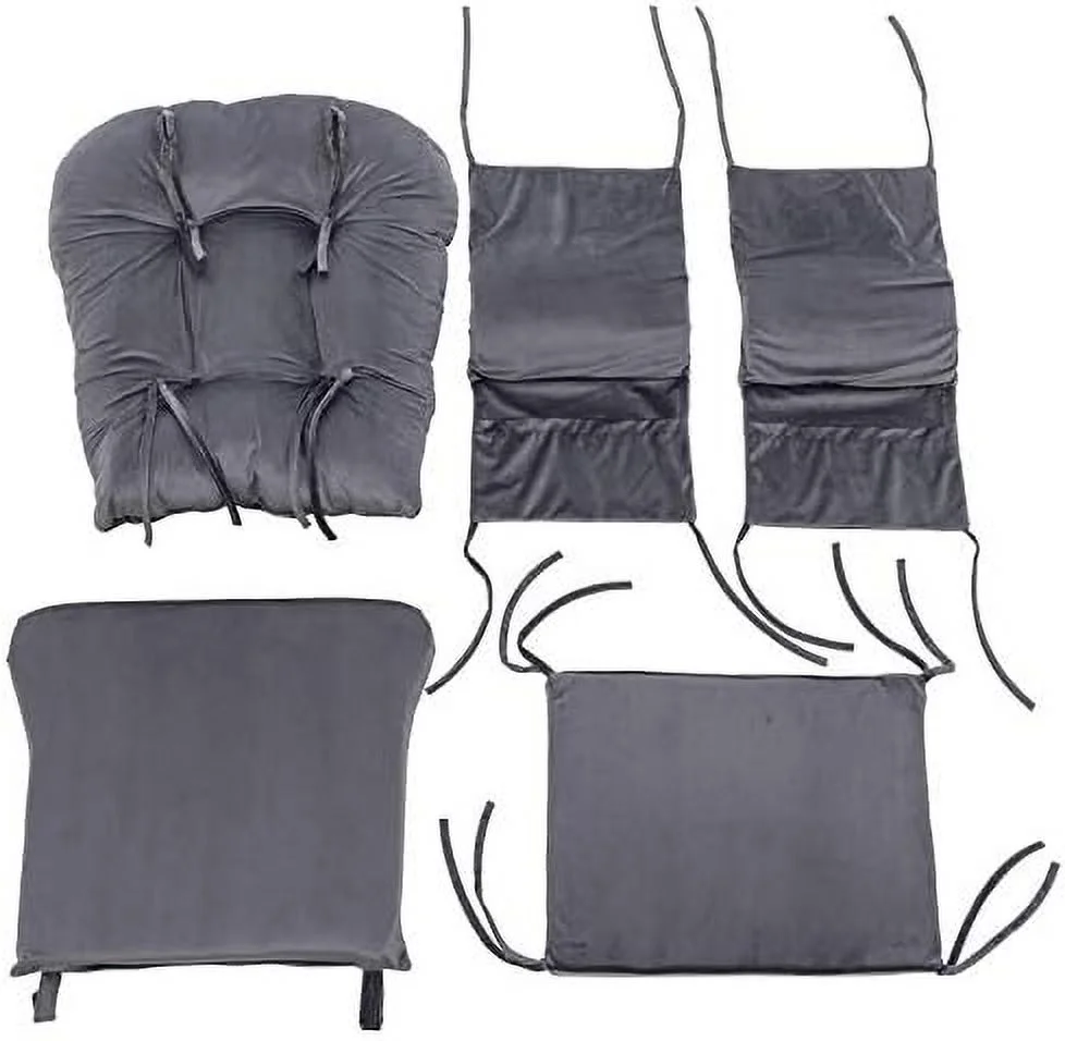 SJUIONG Glider Rocker Replacement Cushions with Pocket 5PCS Soft Velvet Thickened Washable Nonslip Universal for Use in Glider Rocking Chair Light Grey - Curated Treasures Market