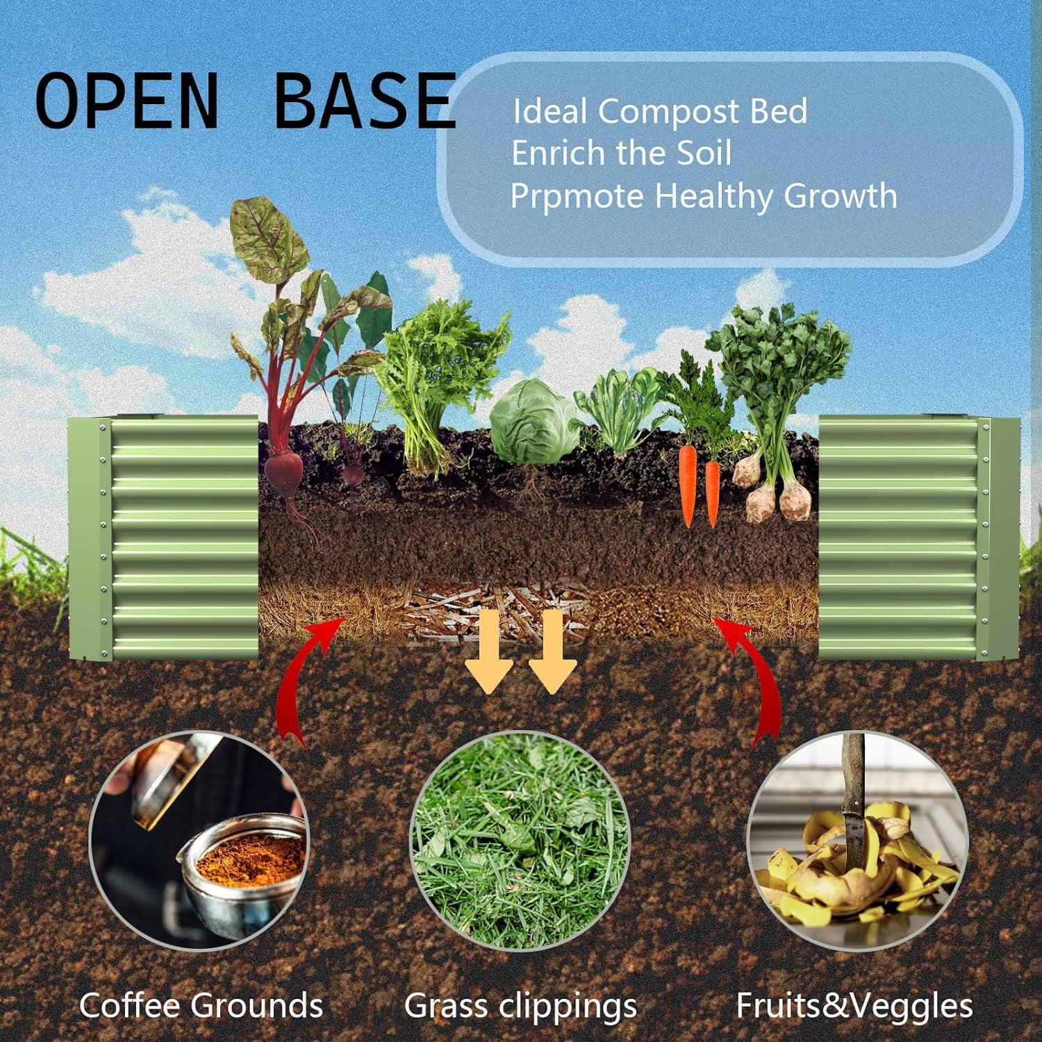 OGKBIR 8x4x2ft Galvanized Metal Raised Garden Bed for Vegetables, Outdoor Garden Raised Planter Box, Backyard Patio Planter Raised Beds for Flowers, Herbs, Fruits (Light Green) - Curated Treasures Market