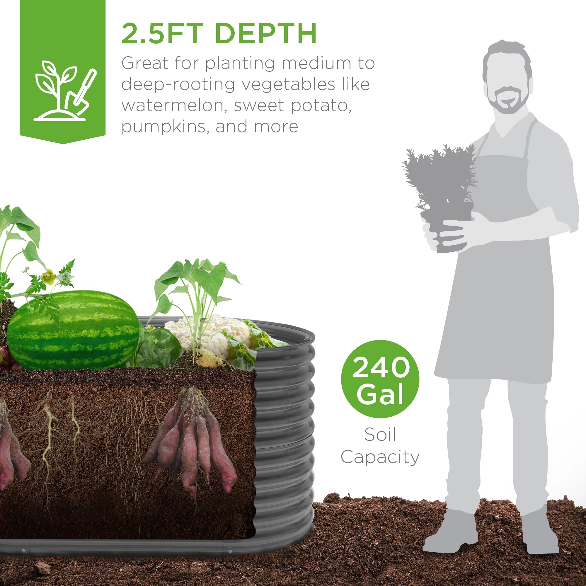 Best Choice Products 63in Oval Metal Raised Garden Bed, Customizable Outdoor Planter for Gardening, Plants - Dark Gray - Curated Treasures Market