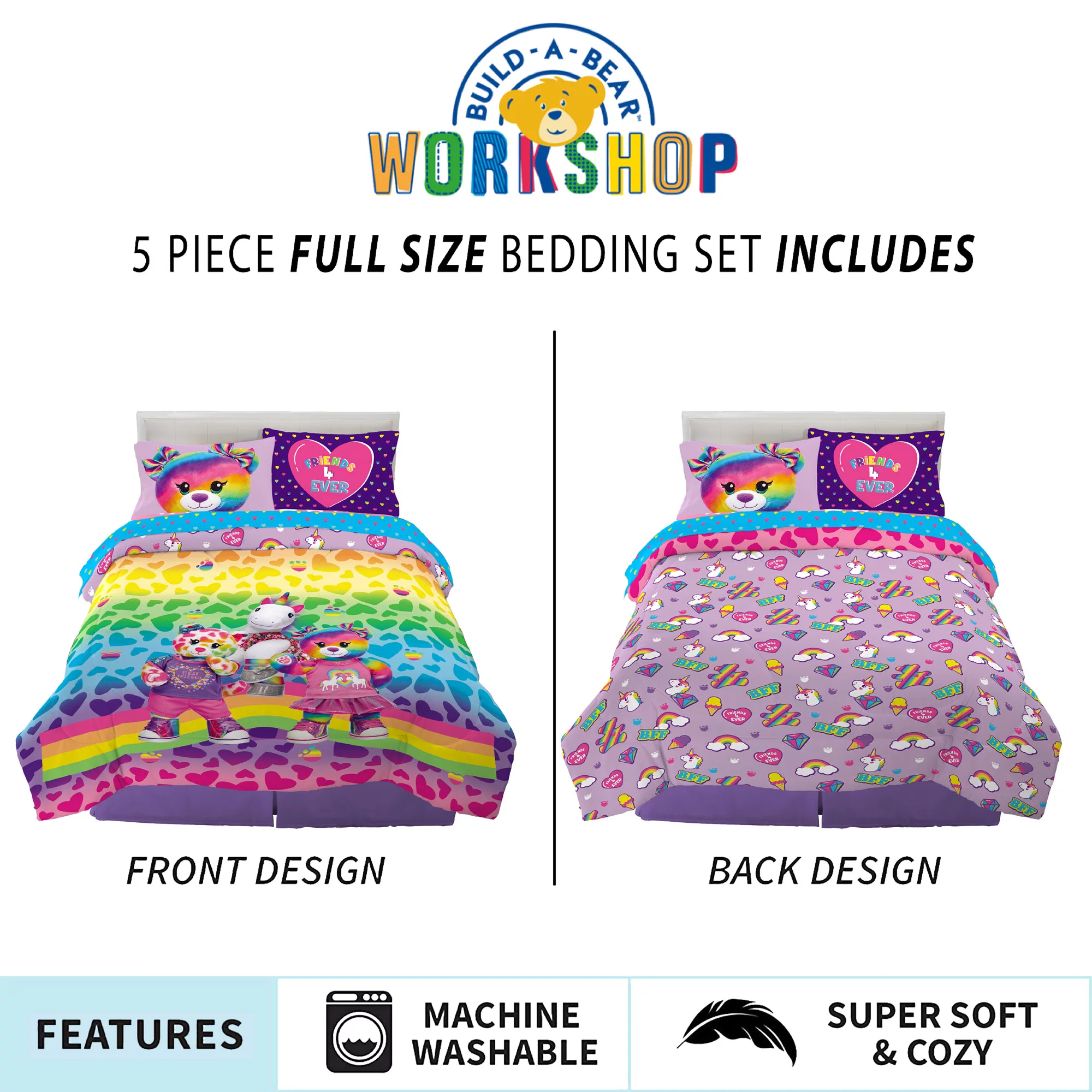 Build-A-Bear Workshop Kids Full Bed in a Bag, Comforter and Sheets, Multicolor - Curated Treasures Market
