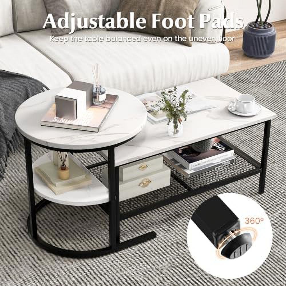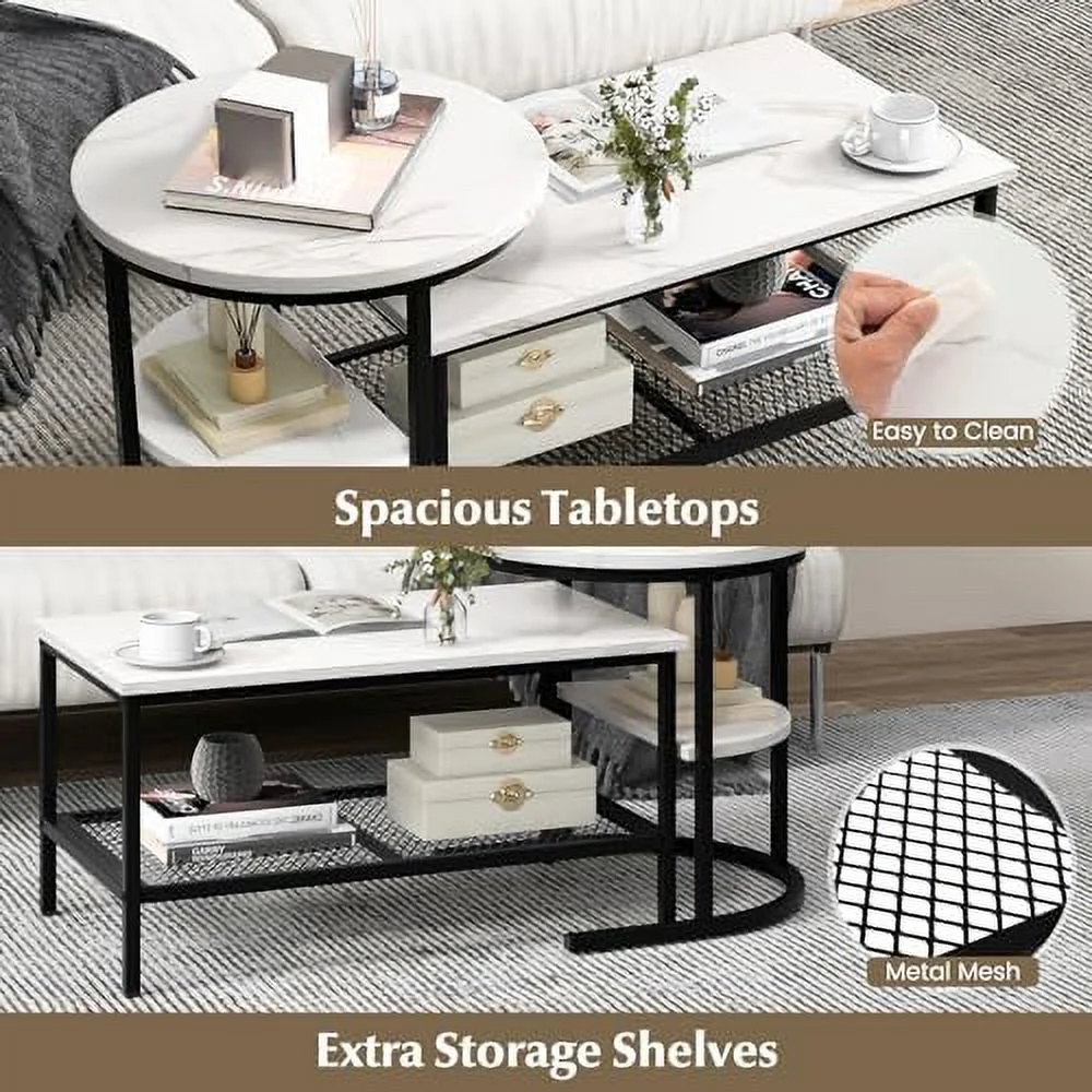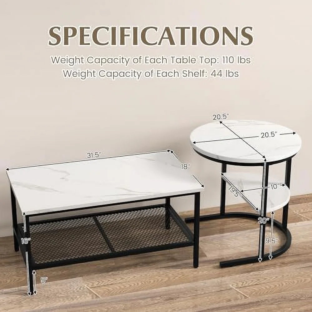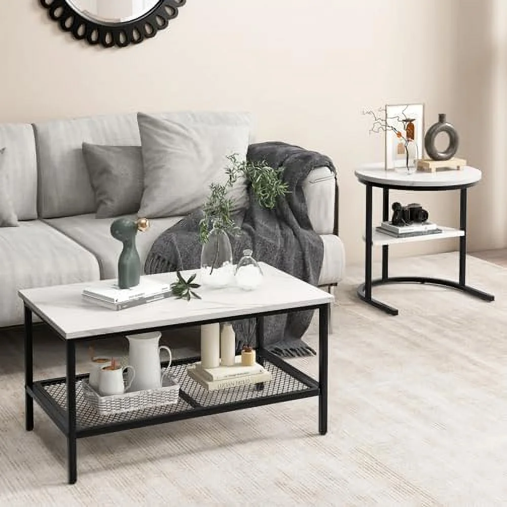 SQHJV Nesting Coffee Table 2 PCS Coffee Table Set with Faux Marble Top and Extra Modern Round End Table & Rectangular Coffee Table Set for Living Room Bedroom Black+White - Curated Treasures Market