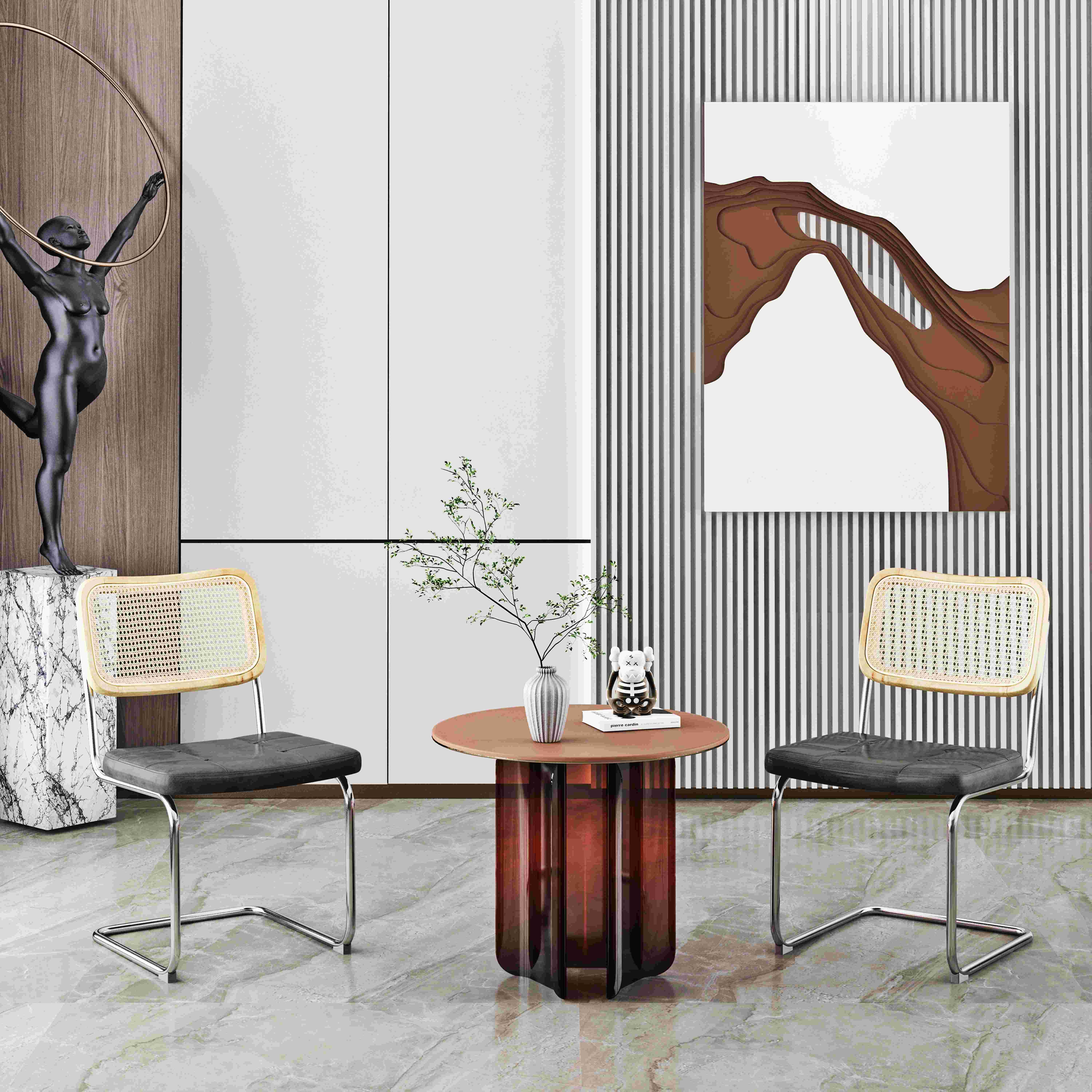 Tufted Upholstered Dining Chair with Silver Metal Legs and Back, PU& Rattan Industrial Side Chair with High-Density Sponge, Accent Desk Chair for Kitchen Living Room Wine Bar(Gray,Set of 4) - Curated Treasures Market