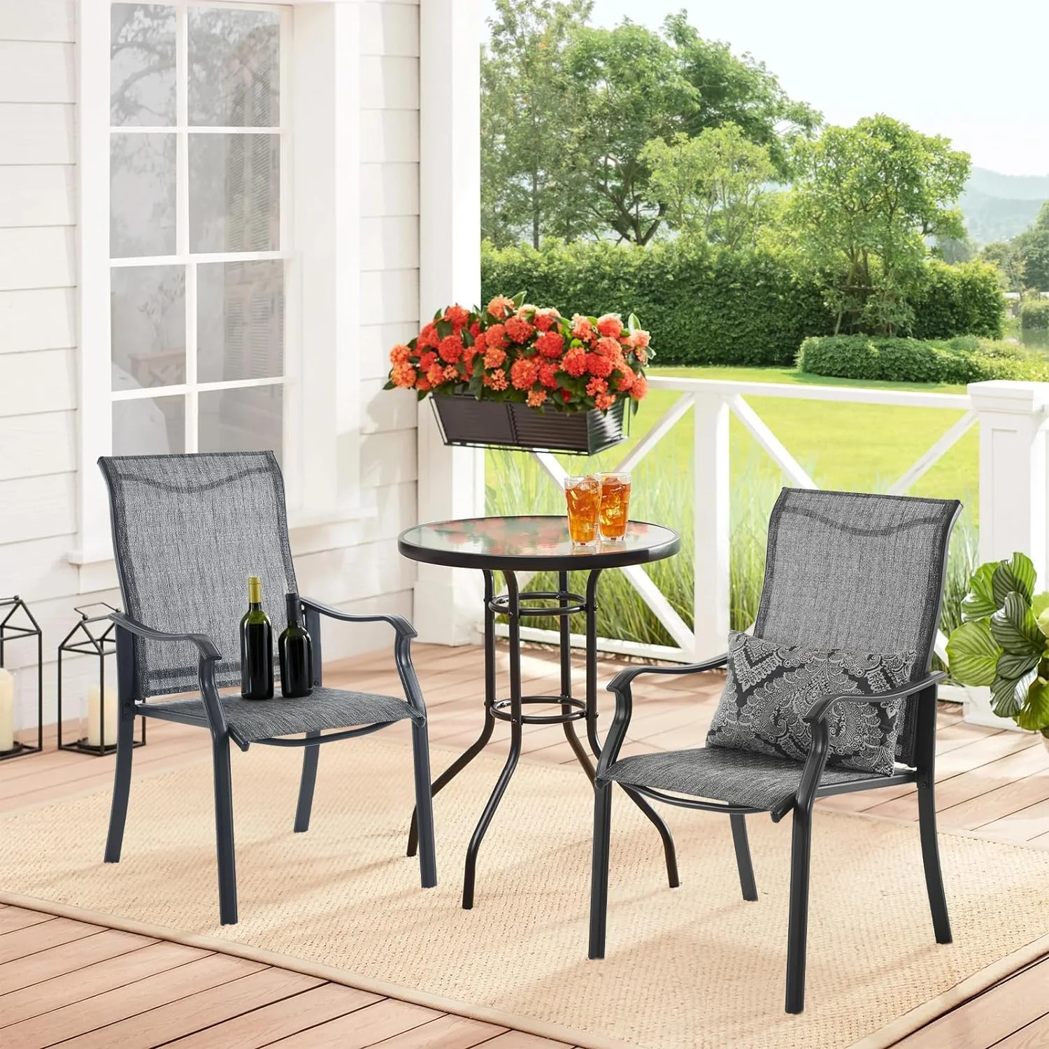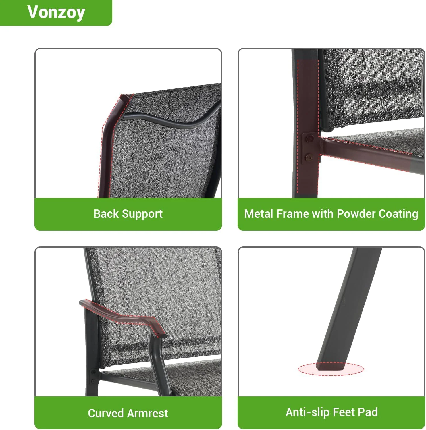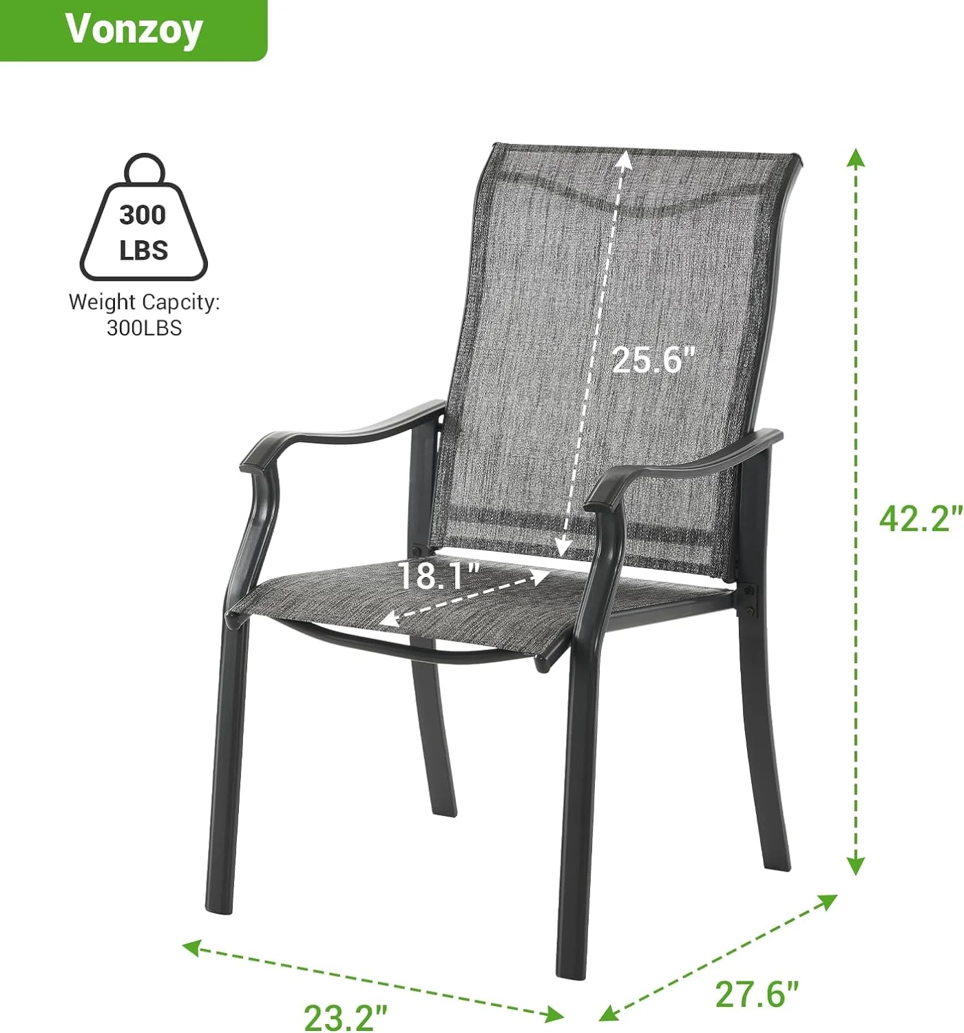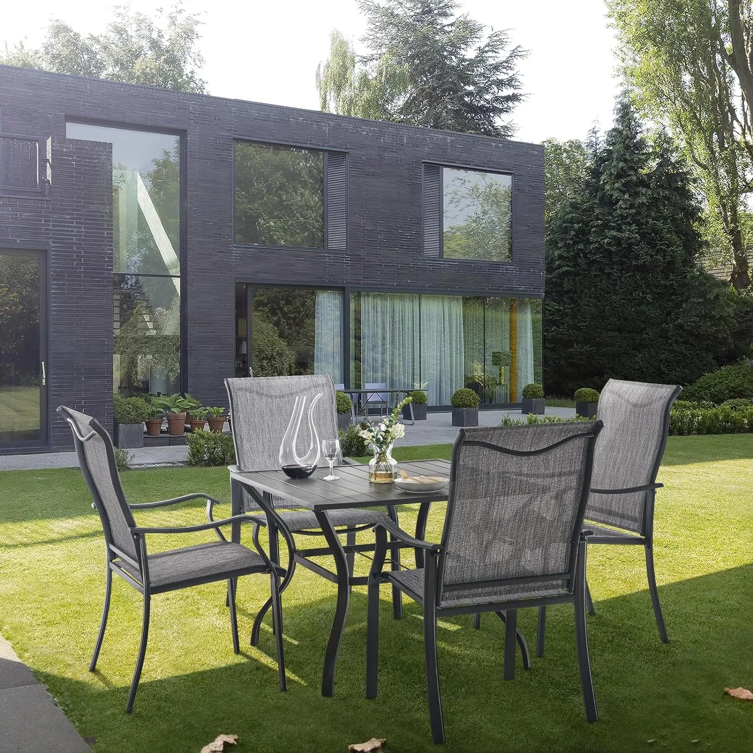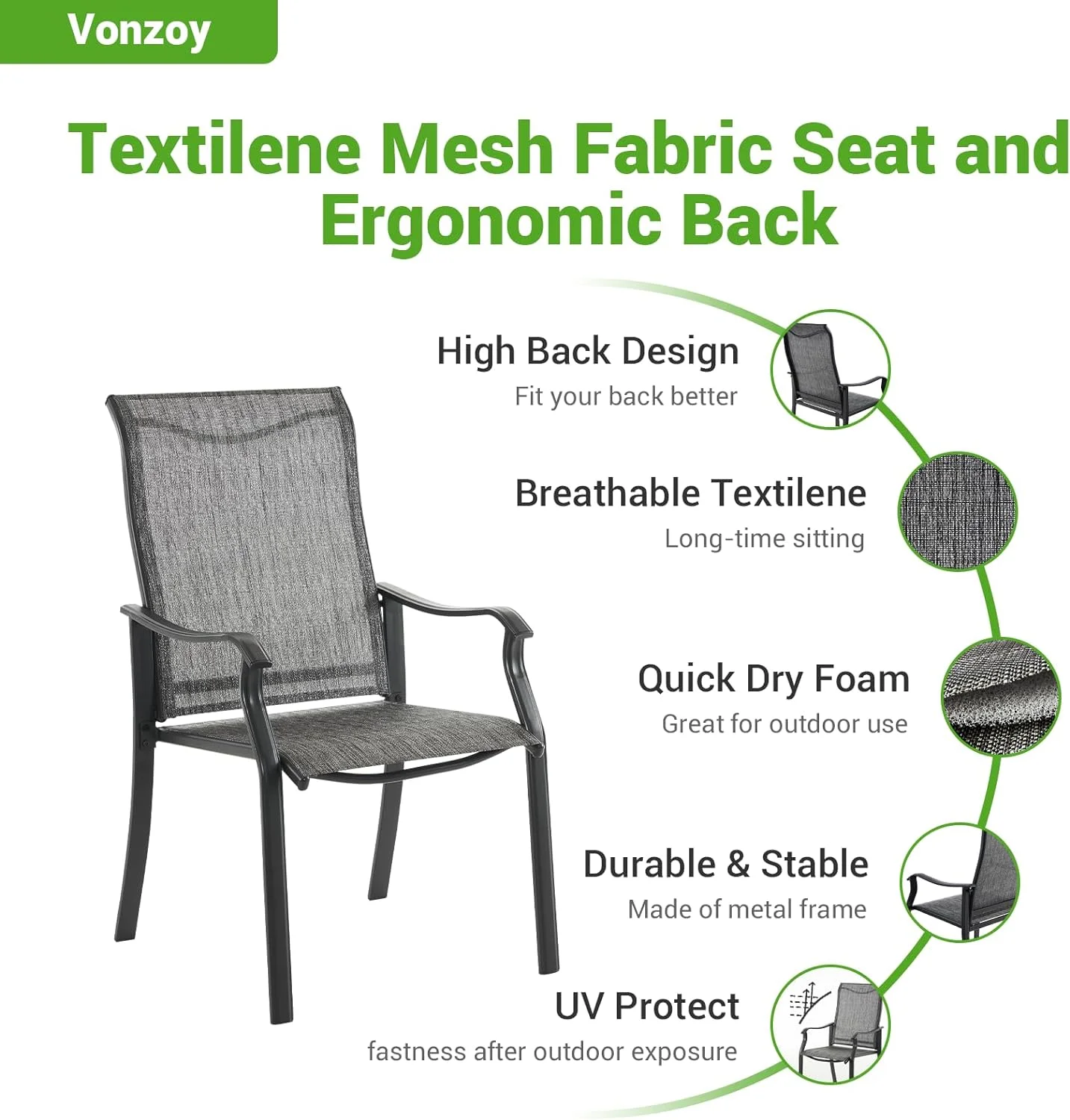 ELPOSUN Patio Dining Chairs Set of 2, Outdoor Textilene Dining Chairs with High Back, Patio Furniture Chairs with Armrest, Metal Frame for Lawn Garden Backyard Deck, Dark Grey - Curated Treasures Market