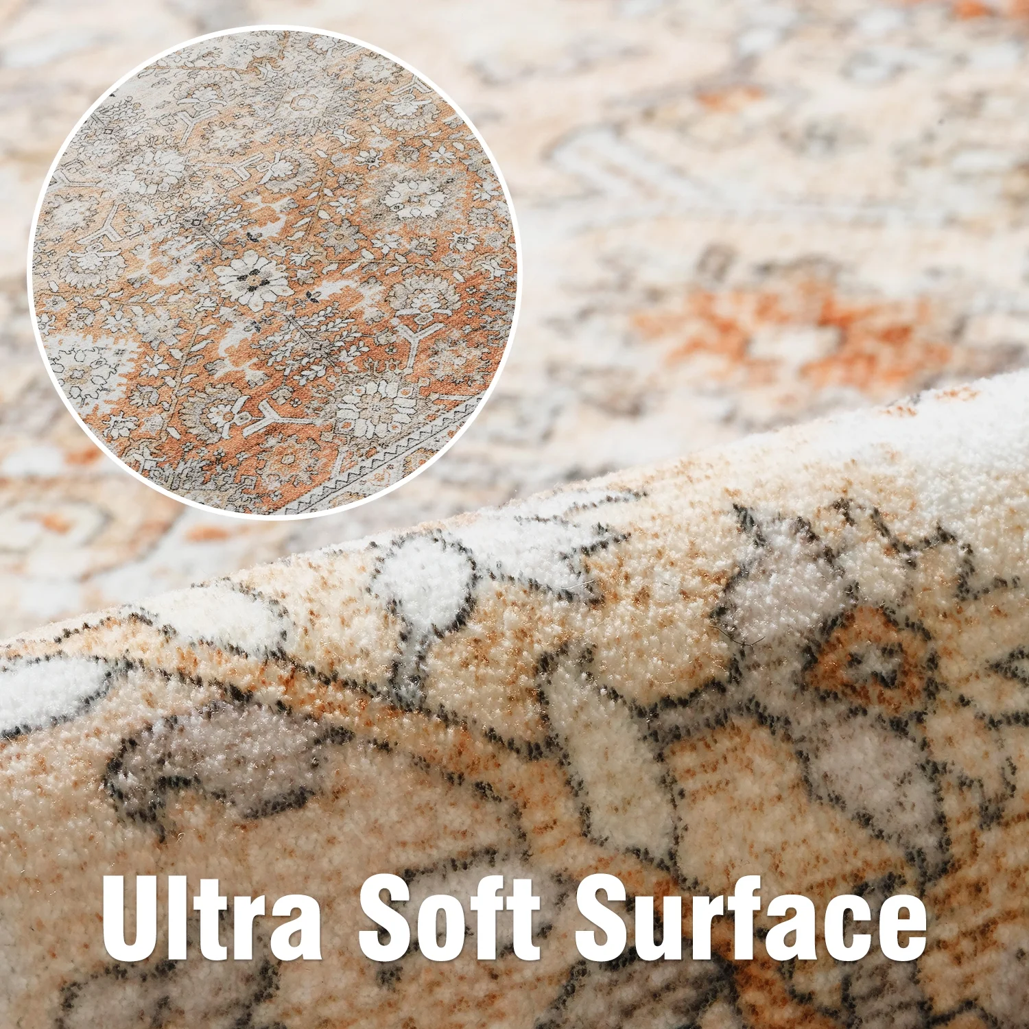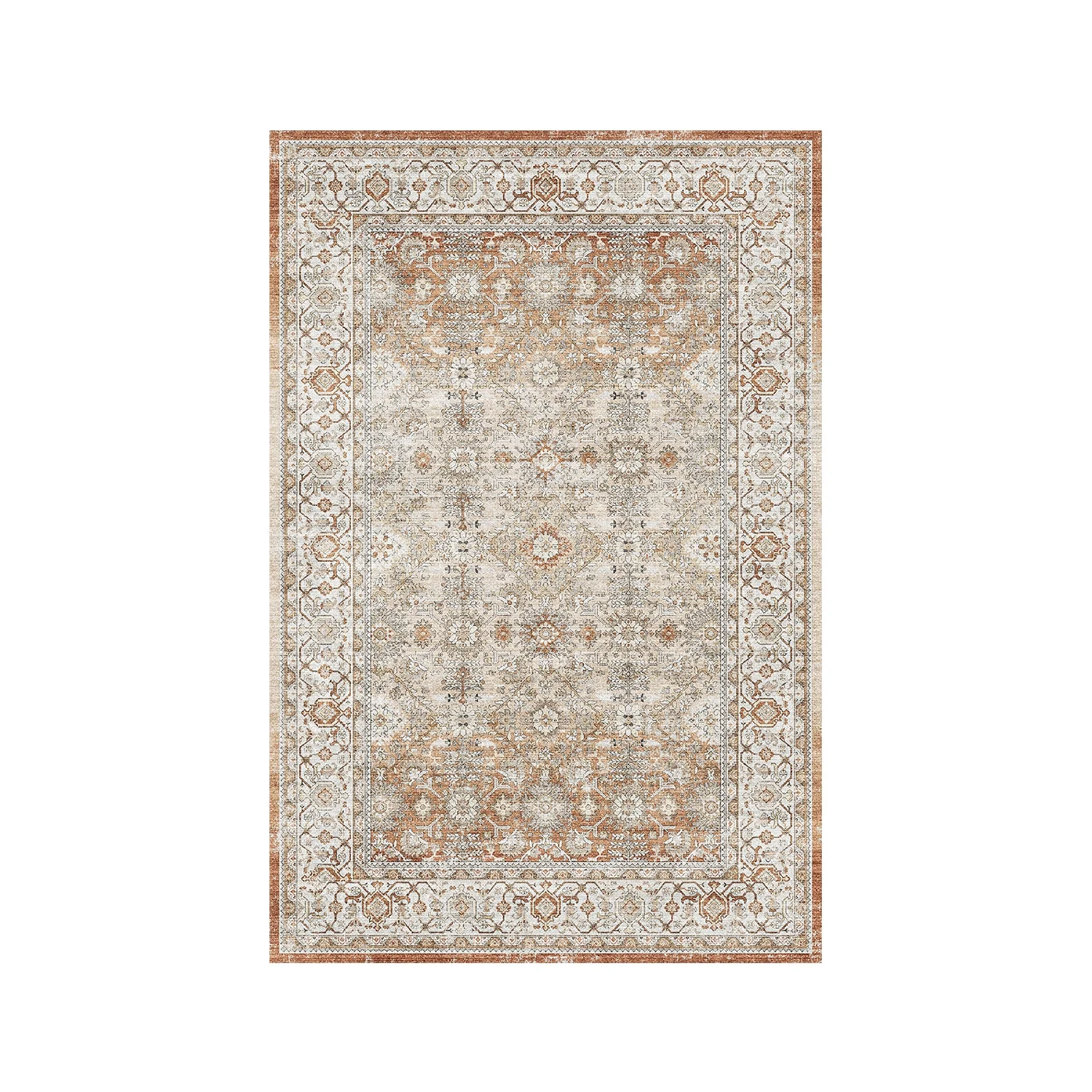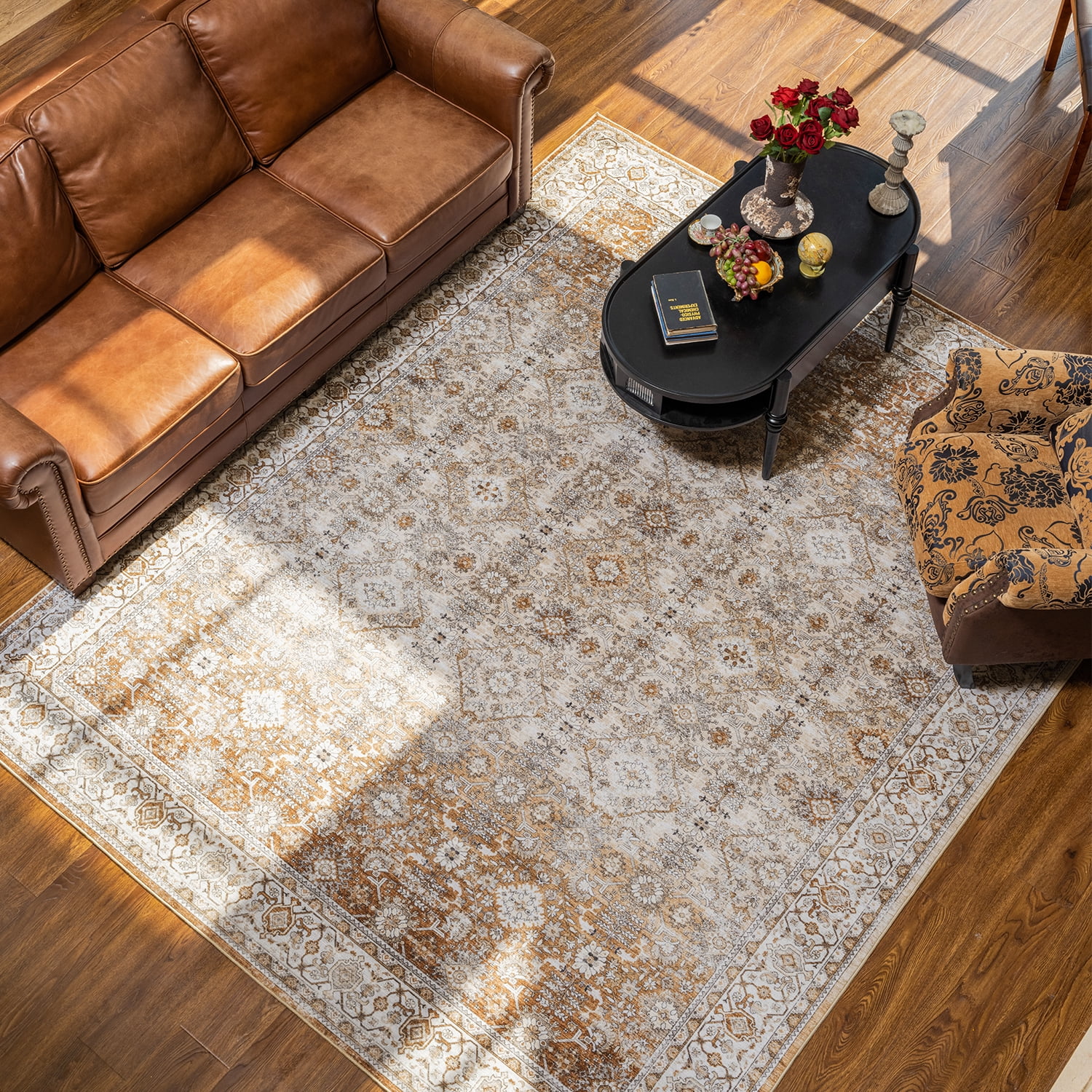 SIXHOME 5'x7' Area Rugs for Living Room Washable Rugs Ombre Vintage Floral Living Room Rug Soft Distressed Indoor Carpet Country Boho Rug for Bedroom Dining Room Kitchen Foldable Nonslip Rug Taupe - Curated Treasures Market