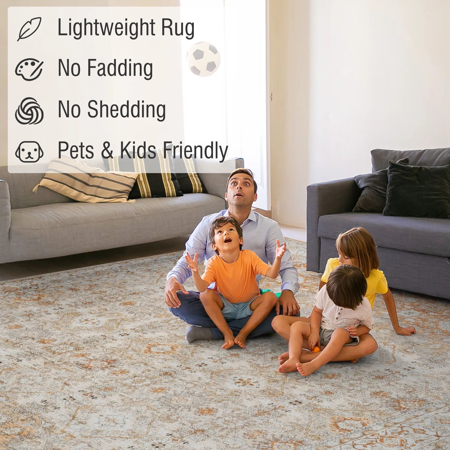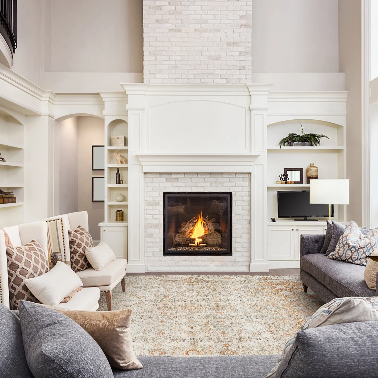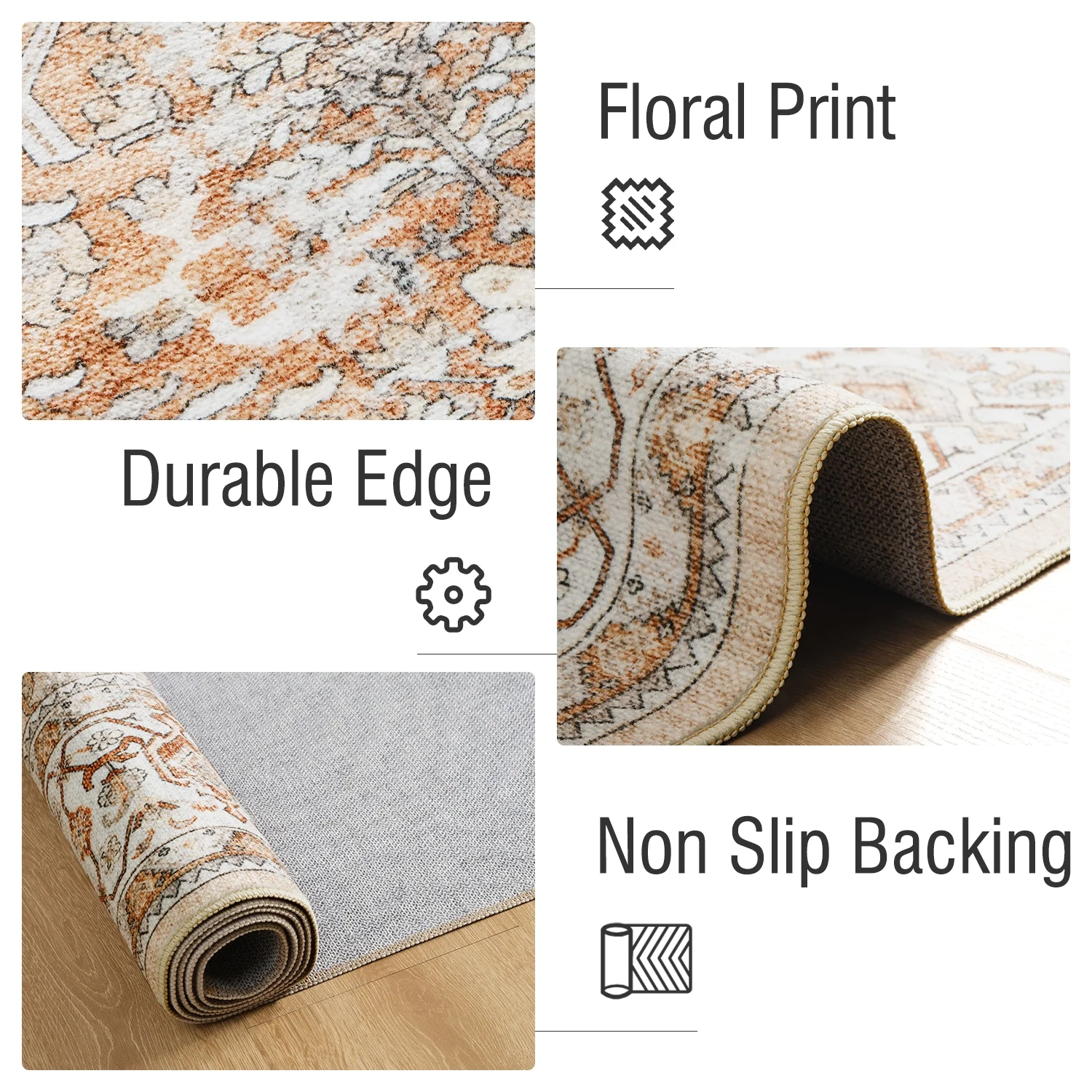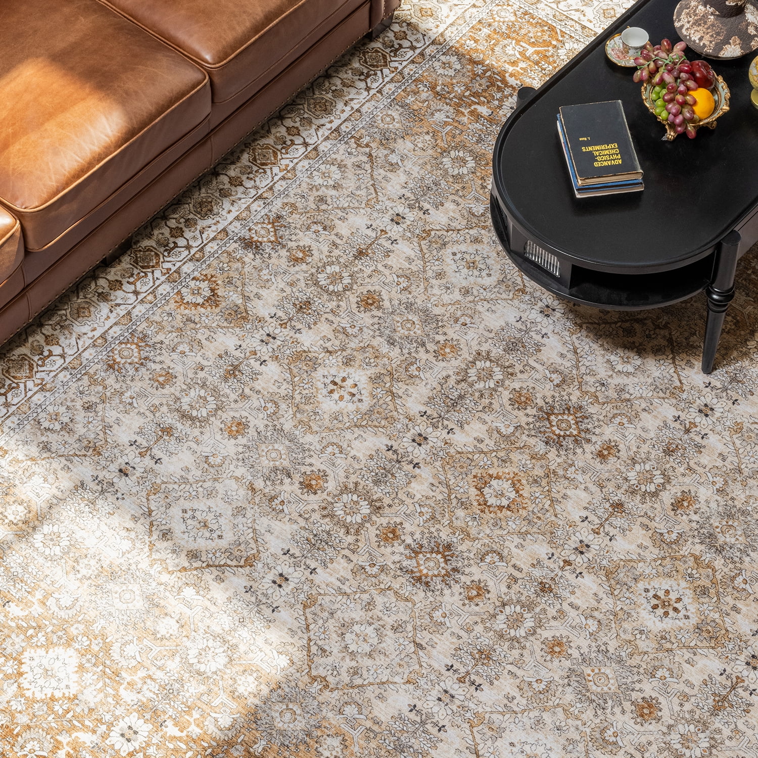 SIXHOME 5'x7' Area Rugs for Living Room Washable Rugs Ombre Vintage Floral Living Room Rug Soft Distressed Indoor Carpet Country Boho Rug for Bedroom Dining Room Kitchen Foldable Nonslip Rug Taupe - Curated Treasures Market