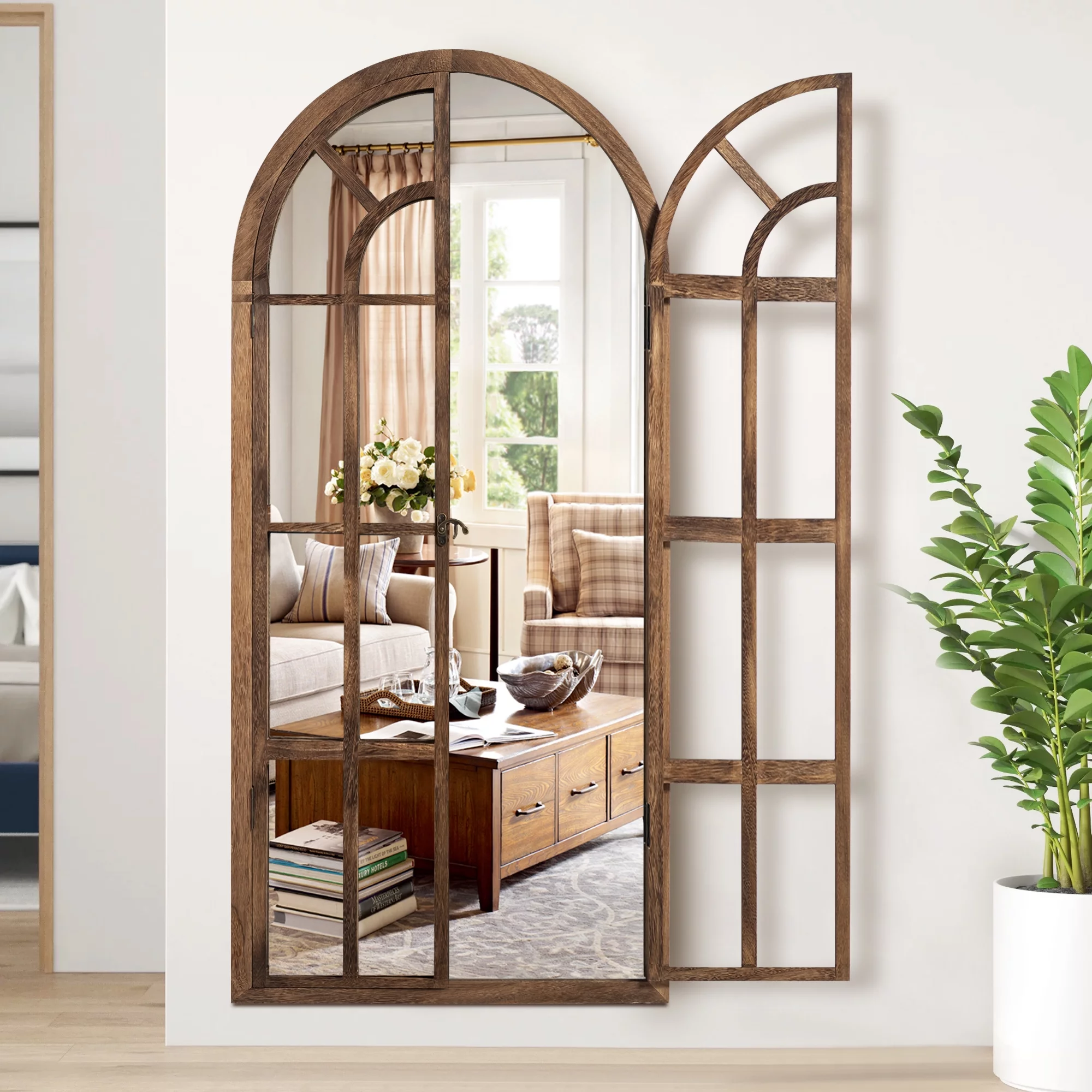 Neutype 71"x32" Modern Arched Foldable Window Mirror Full Length Mirror Floor Mirror,Browen - Curated Treasures Market