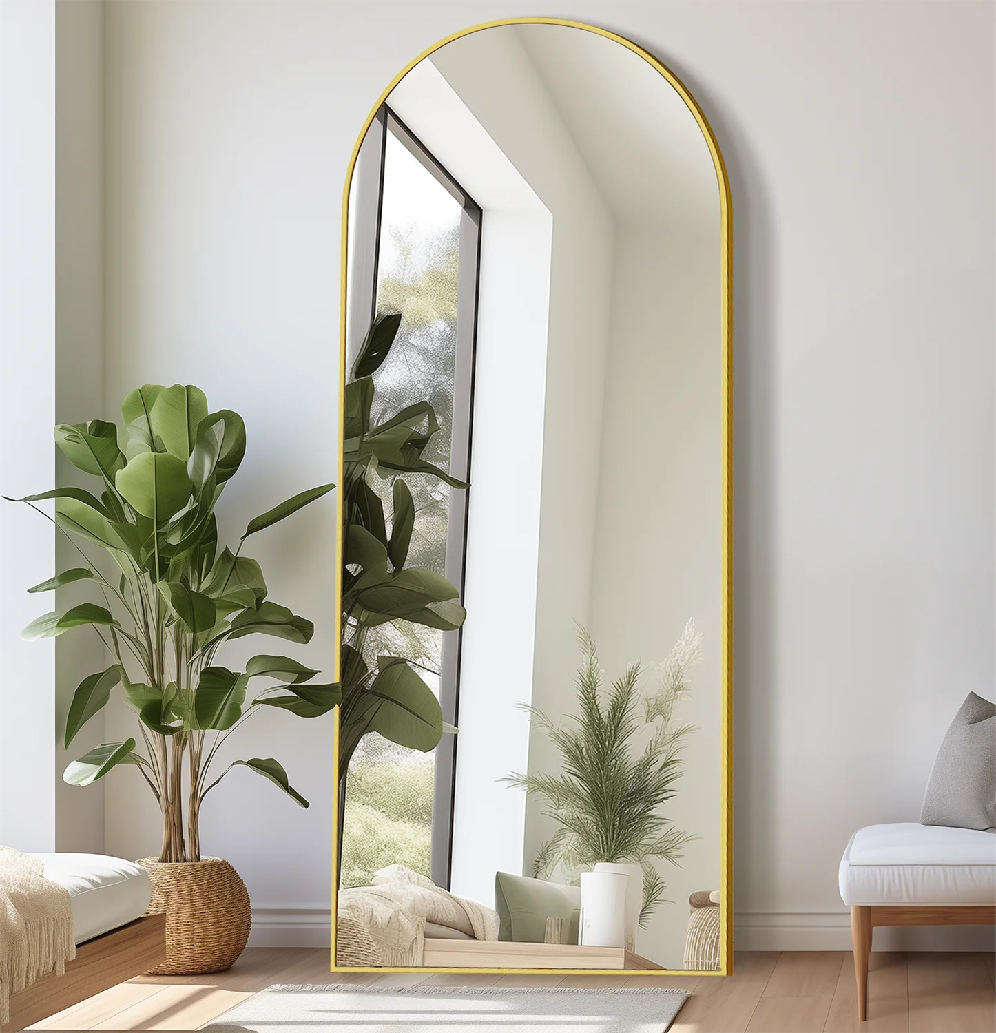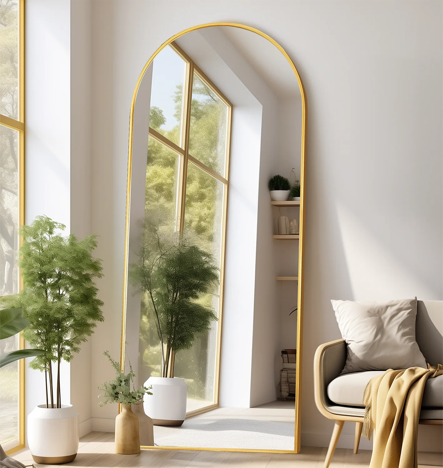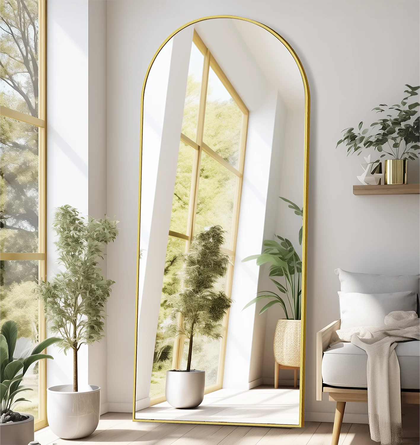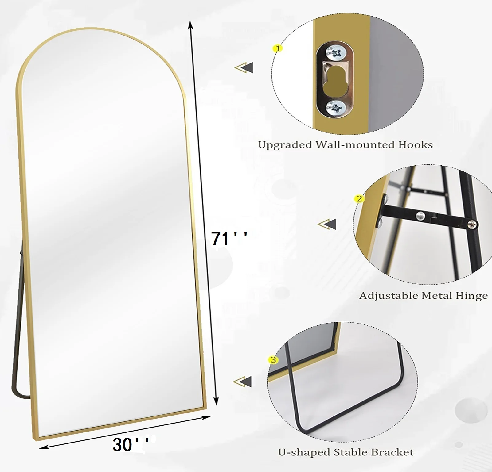 TinyTimes 71"x30" Arched Full Length Mirror Large Freestanding Floor Mirror with Stand Modern Wall Mounted Full Body Mirror for Room-Gold - Curated Treasures Market