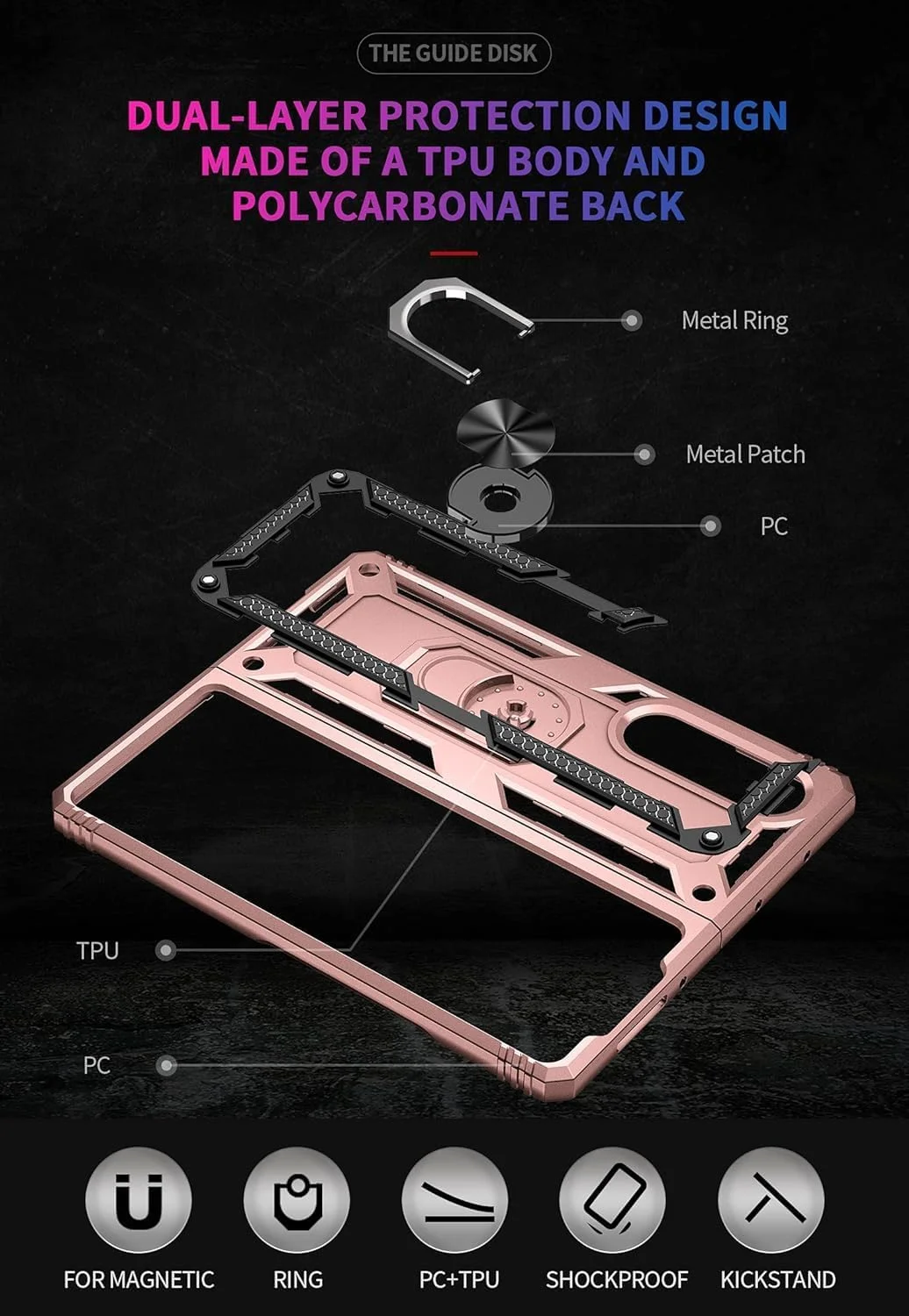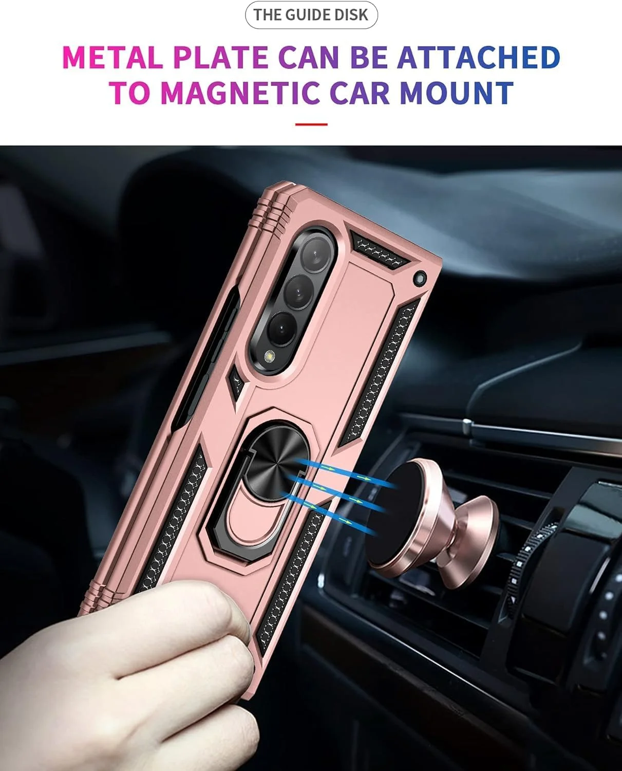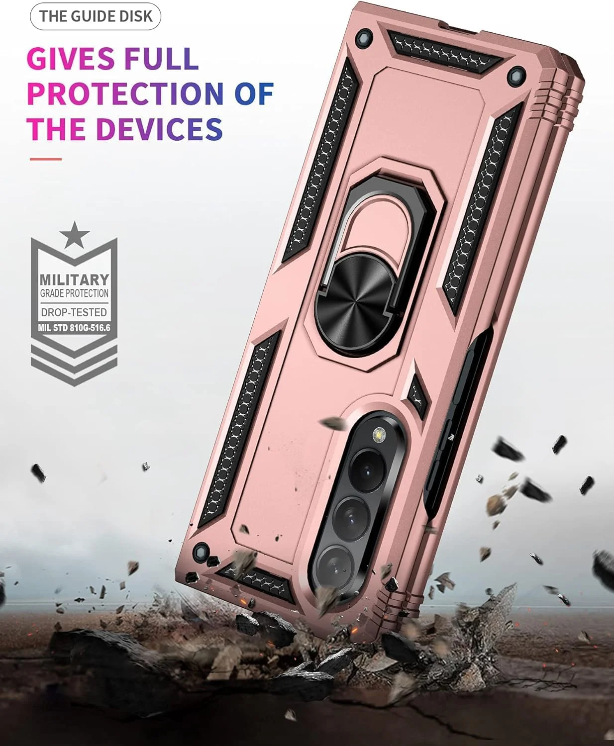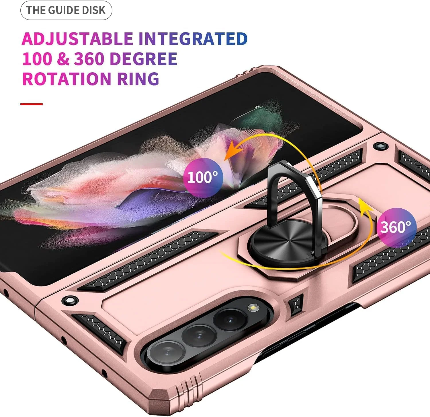 Designed for Samsung Galaxy Z Fold 3 Heavy Duty Case with Built-in Kickstand, Dual Layer Protection with Rotating Holder Ring, Sturdy Case for Samsung Galaxy Z Fold 3, Pink - Curated Treasures Market