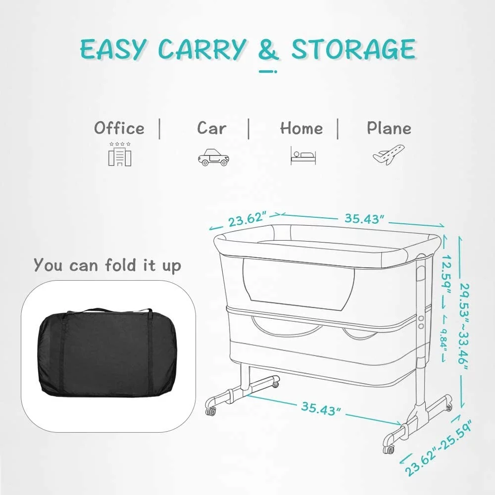 NEWLAKE 3 in 1 Bassinet for Baby, Height Adjustable Bedside Sleeper for Newborn Infant/Baby Boy/Baby Girl (Grey) - Curated Treasures Market