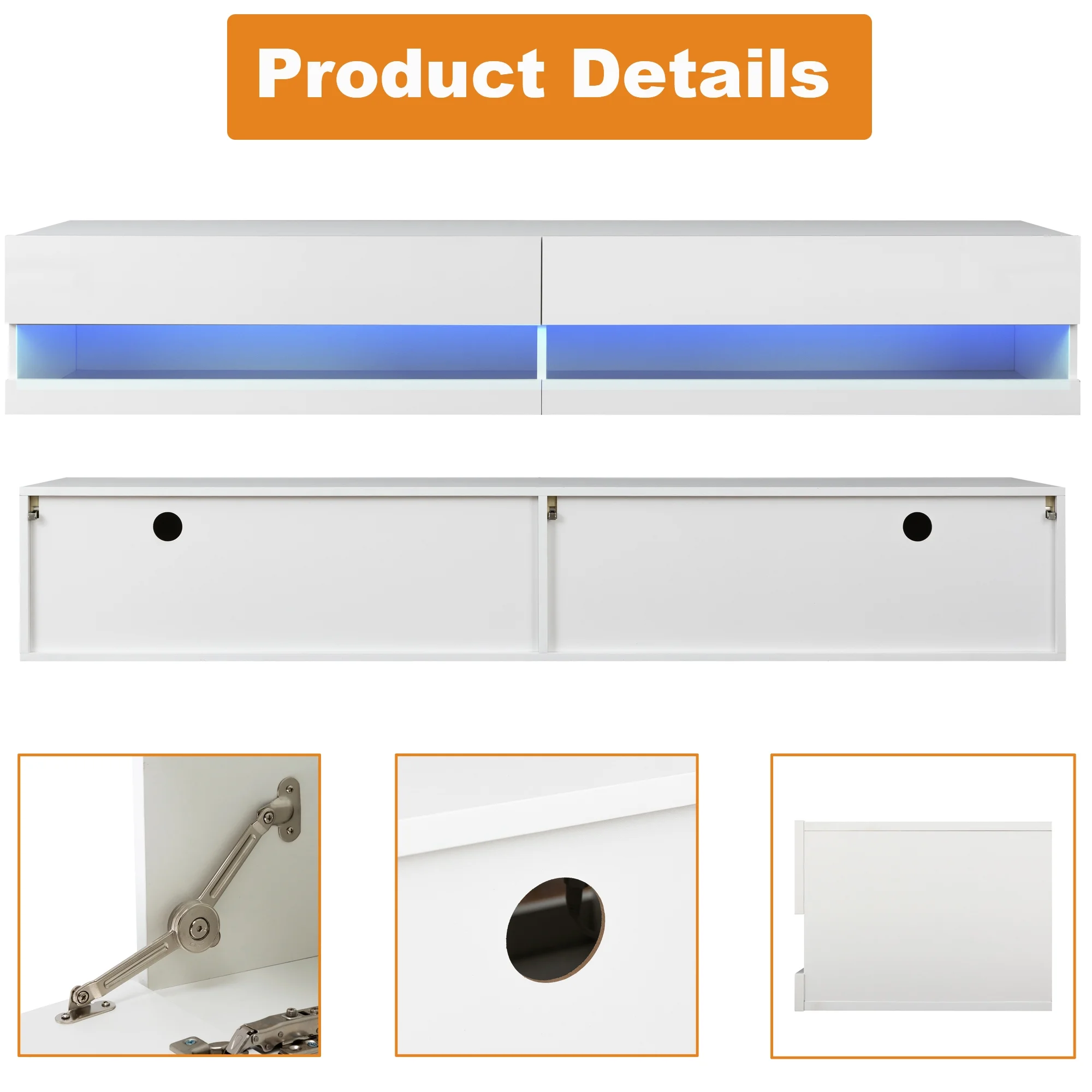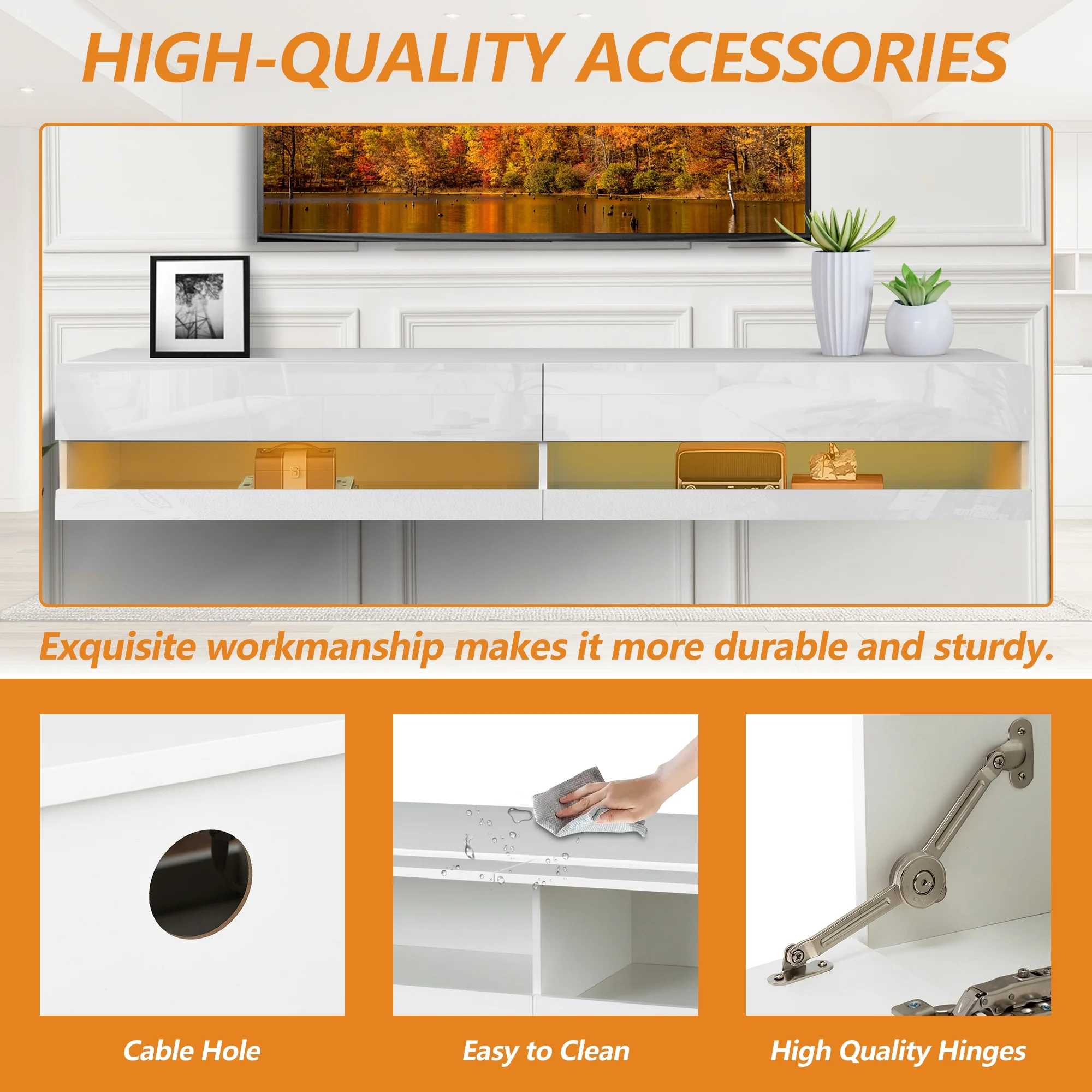 Floating TV Stand for 80 inch TVs, Paproos 71in Long LED Floating TV Cabinet, High Gloss Floating Entertainment Center with APP/Remote Control, Media Console Cabinet Living Room, White - Curated Treasures Market