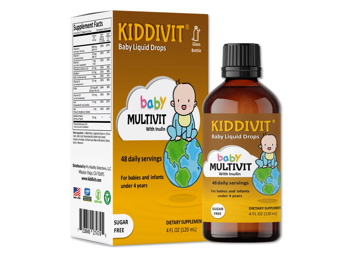 Kiddivit Baby Multivitamin Liquid Drops with Inulin - 48 Daily Servings, 4 Fl Oz (120mL) - Glass Bottle - Sugar Free, Gluten Free, Vegetarian Friendly - Curated Treasures Market