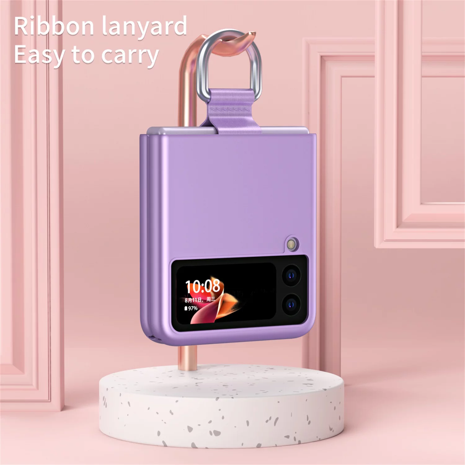 SaniMore for Samsung Galaxy Z Flip 3 6.7" Ultra-Thin Folding Case, Rugged PC Case with Ribbon Lanyard Anti-Fingerprint Full Body Protective Case for Samsung Z Flip 3 Women Men, Rosegold - Curated Treasures Market