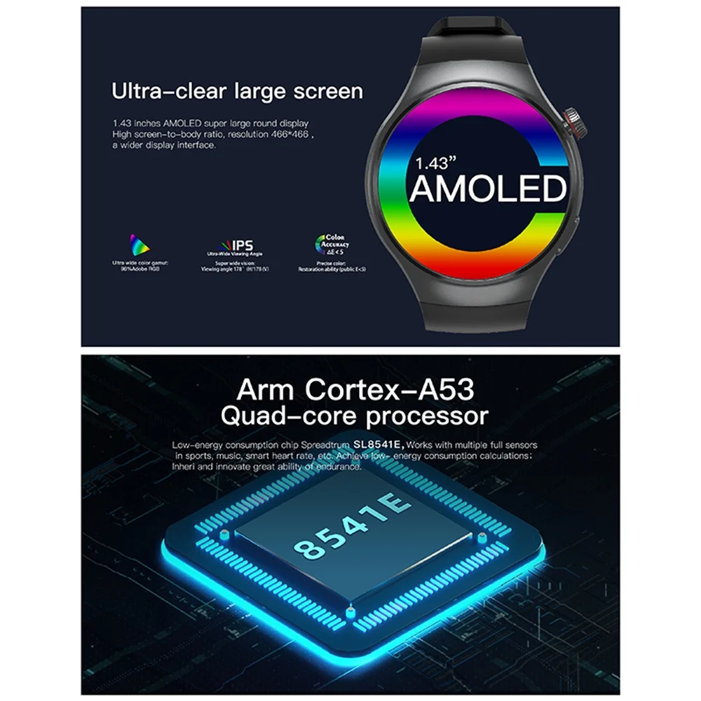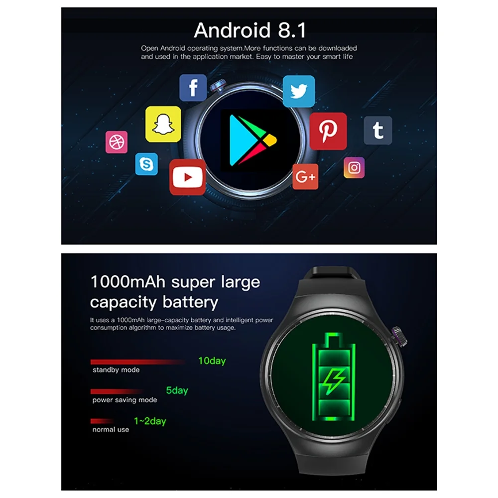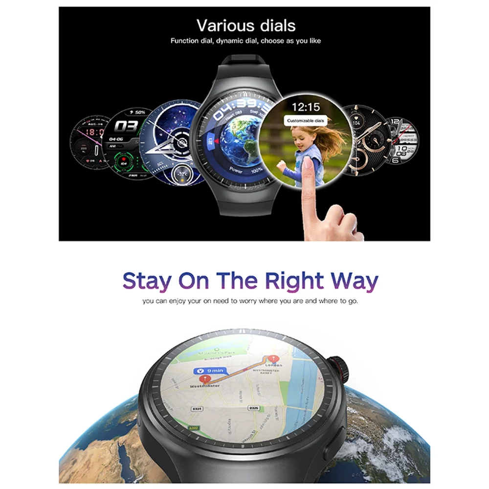 Rainbuvvy DM80 4G Smart Watch 1.43 inch Android 8.1 RAM 2GB ROM 16G 1000mAh Single SIM GPS WIFI Sports Watch Black - Curated Treasures Market