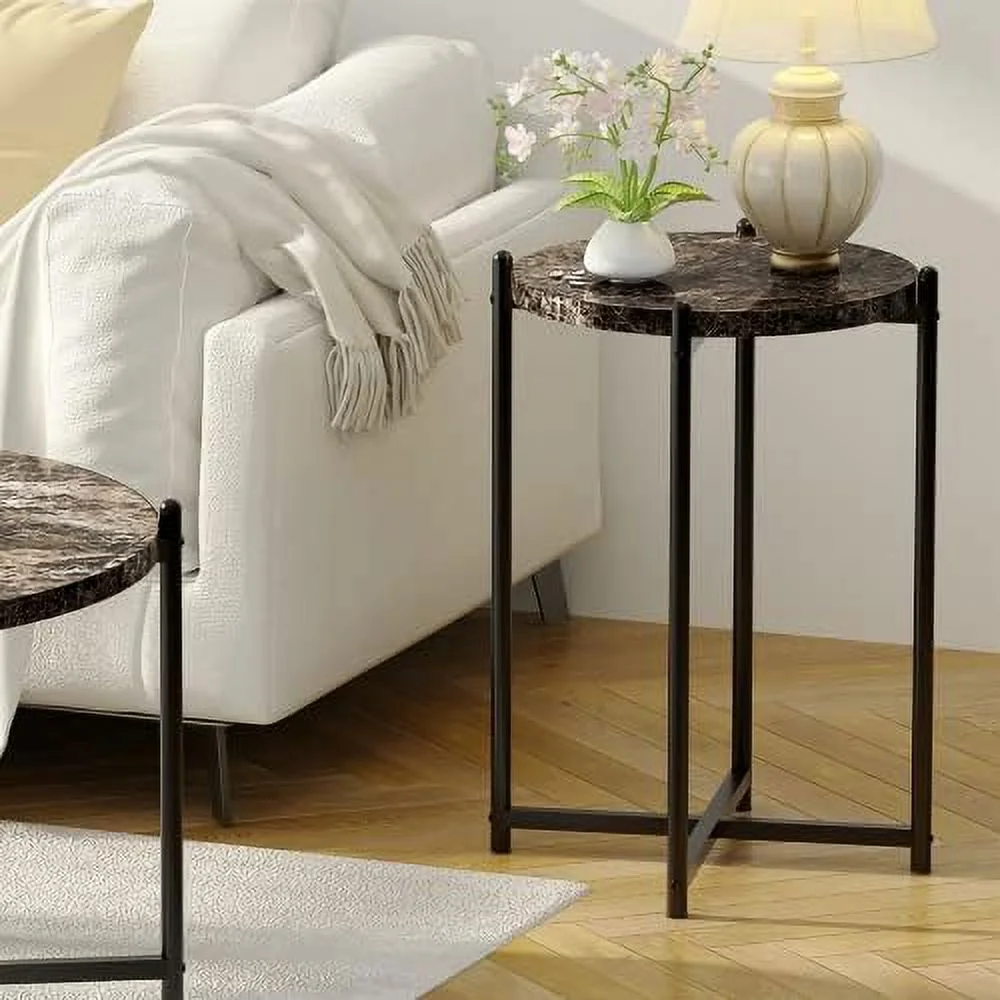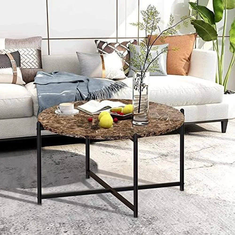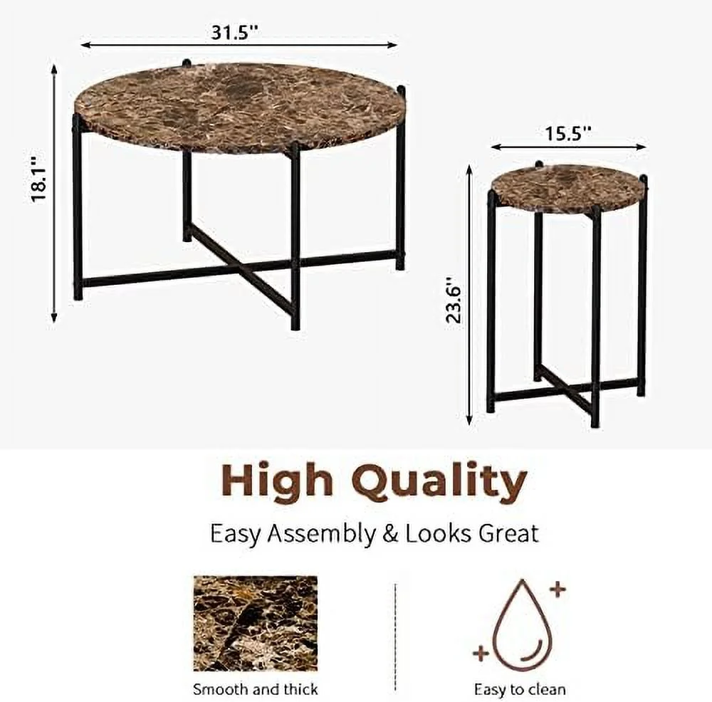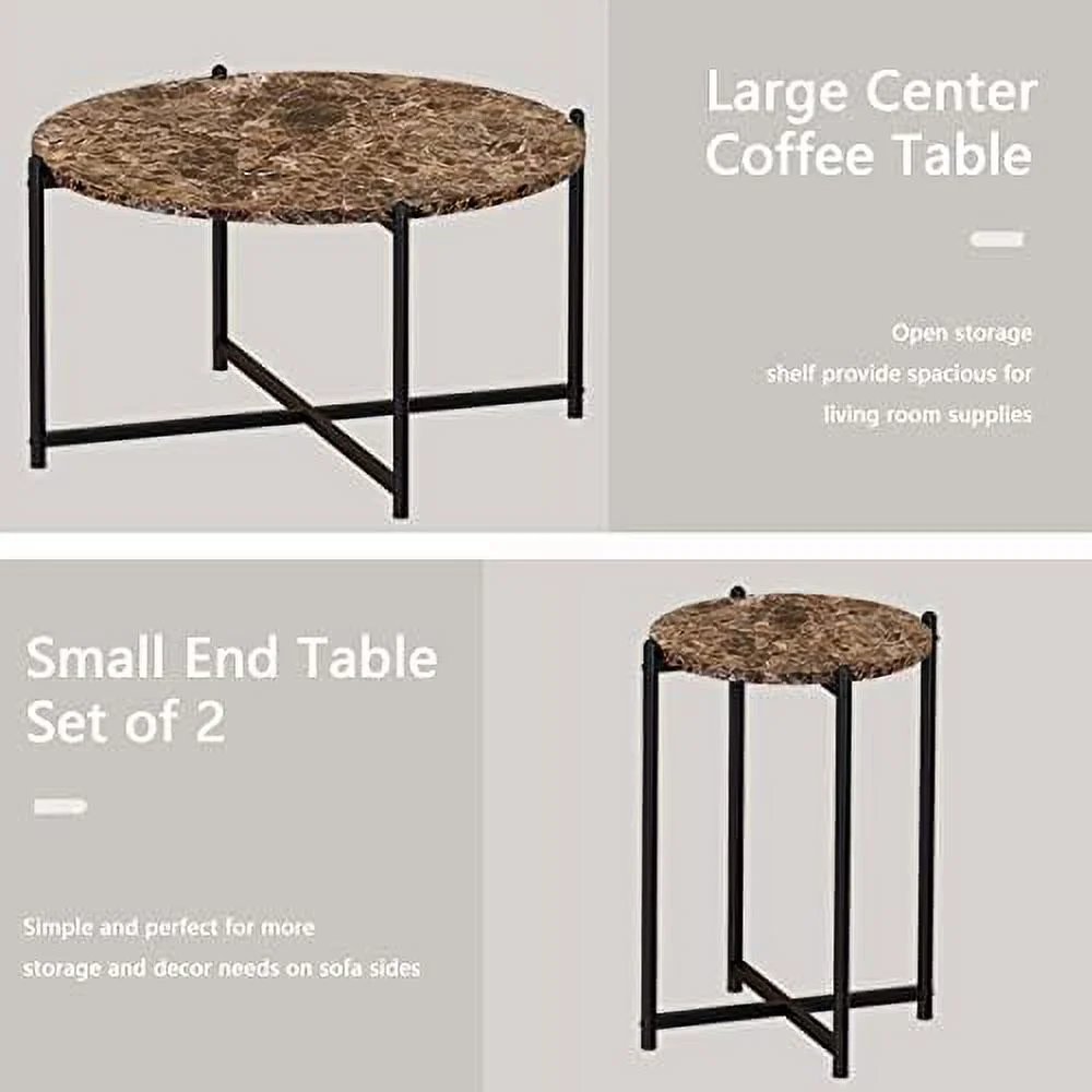 TQNJYGX Coffee Table Set of 3 Faux Marble Coffee Table & 2pcs End Table with Metal Frame Sofa Side Tables for Living Room Office Apartment - Curated Treasures Market