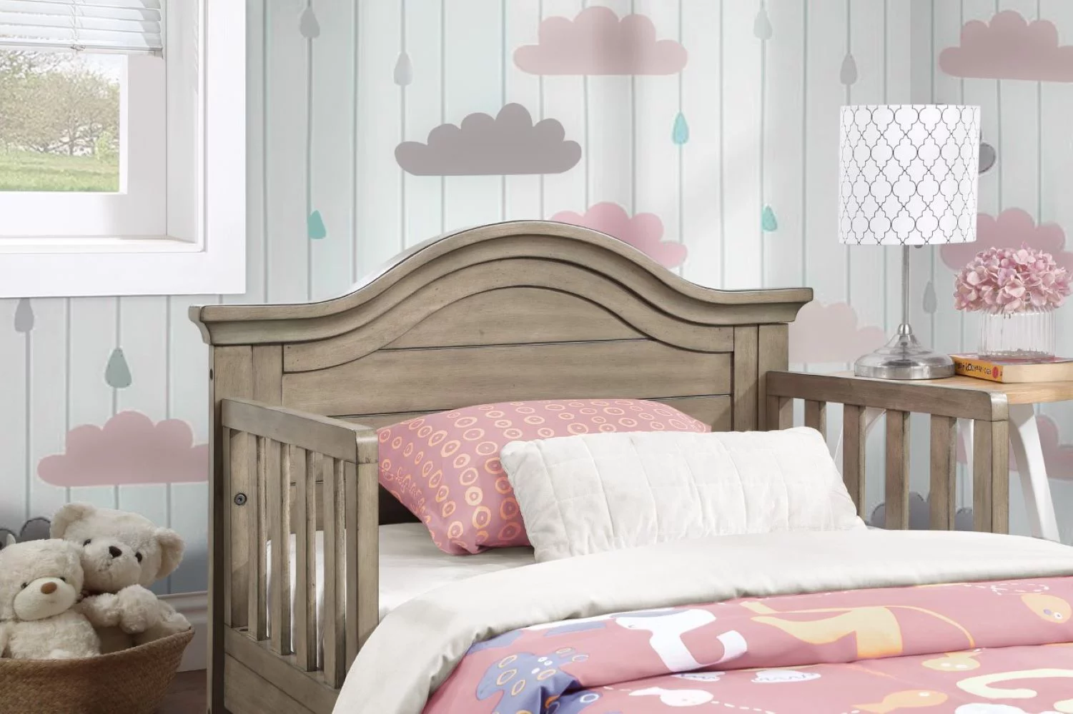 Ti Amo Catania Kids Wood Toddler Bed with Safety Rails, Vintage Grey - Curated Treasures Market