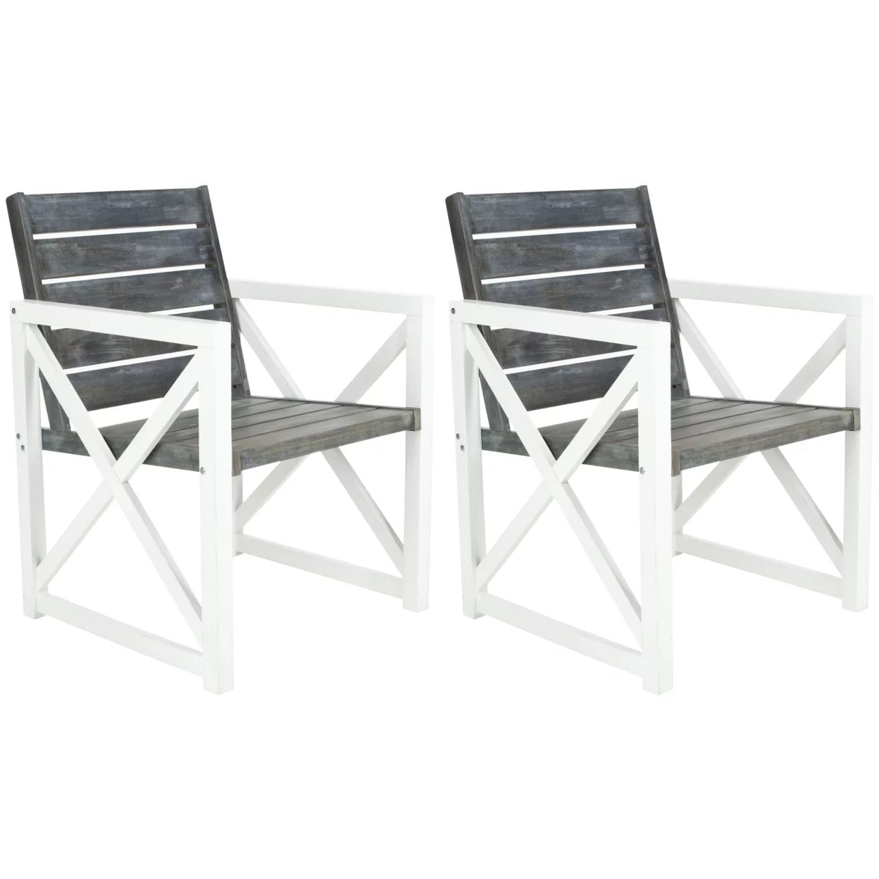 SAFAVIEH Outdoor Collection Irina Arm Chair White/Ash Grey - Curated Treasures Market