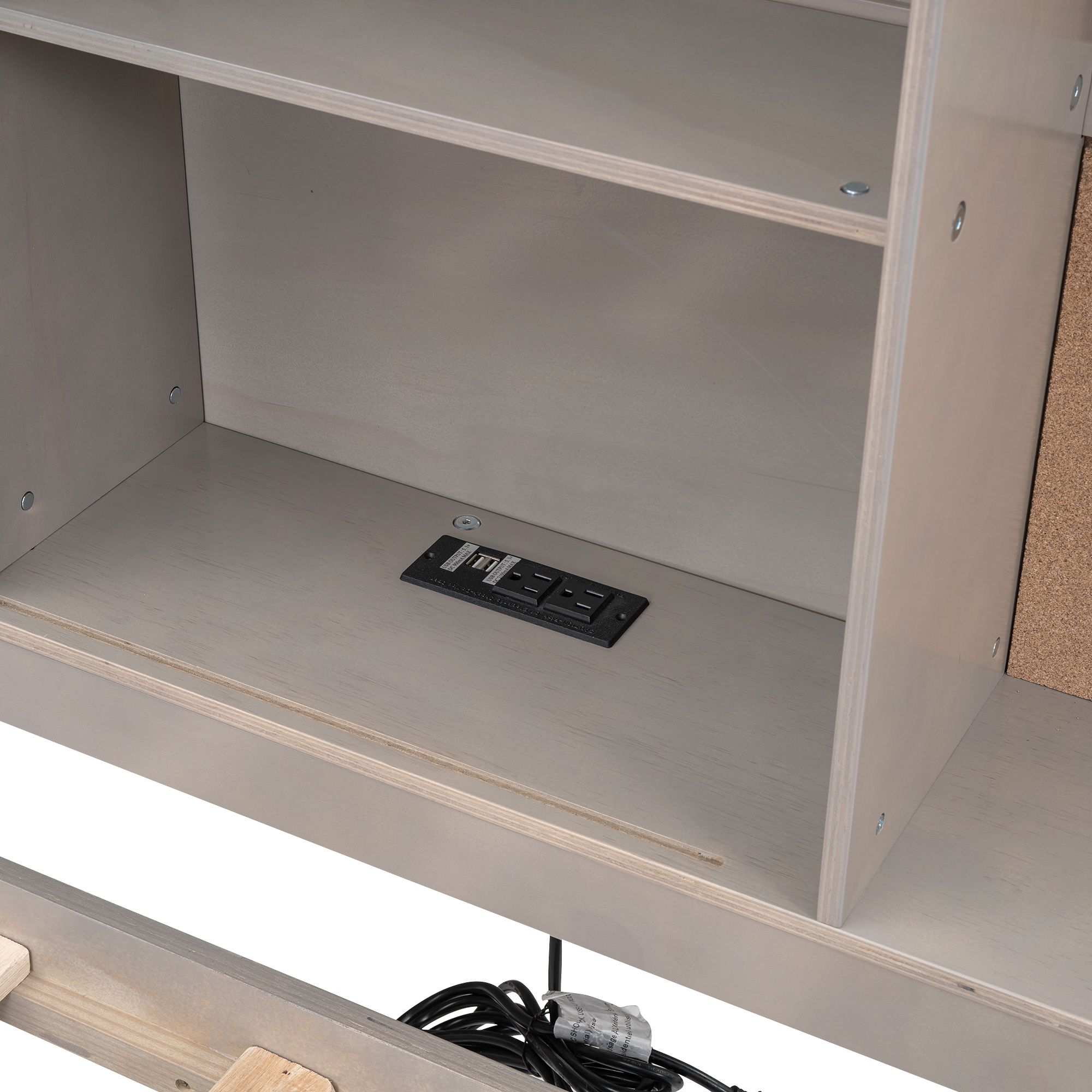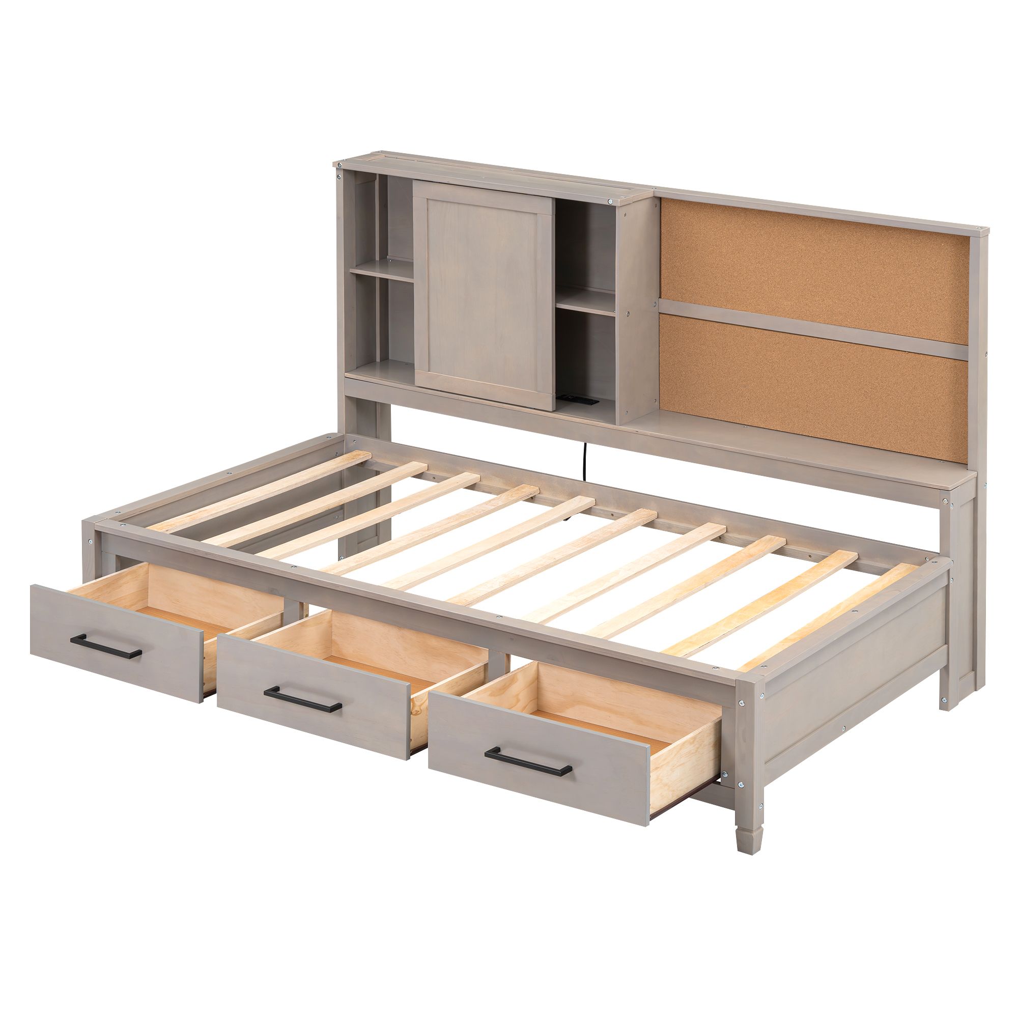 Twin Size Solid Wood Bed Frame with Storage Shelves, Cork Board, USB Ports and 3 Drawers, Platform Bed Frame, Mid Century Bedframe, Wood Lounge Daybed, Wood Foundation(Antique Gray, Twin) - Curated Treasures Market