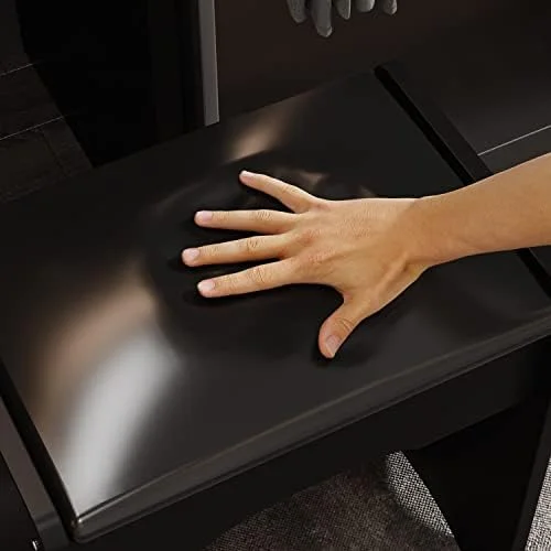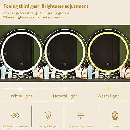 HBBOOMLIFE FUFU&GAGA Vanity Set with Round Mirror Makeup Vanity Dressing Table with 5 Drawers Shelves Dresser Desk and Cushioned Stool Set (Black/Lighted Mirror) - Curated Treasures Market