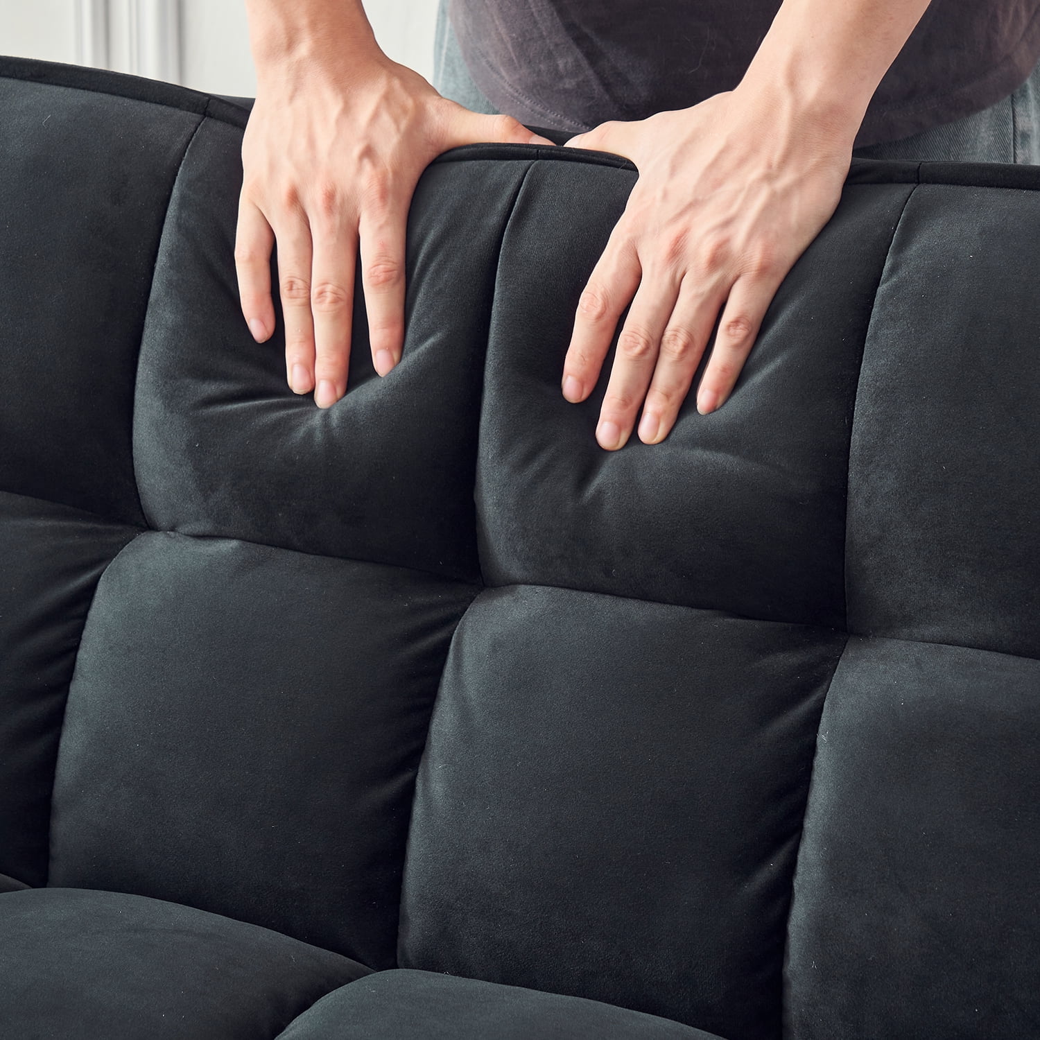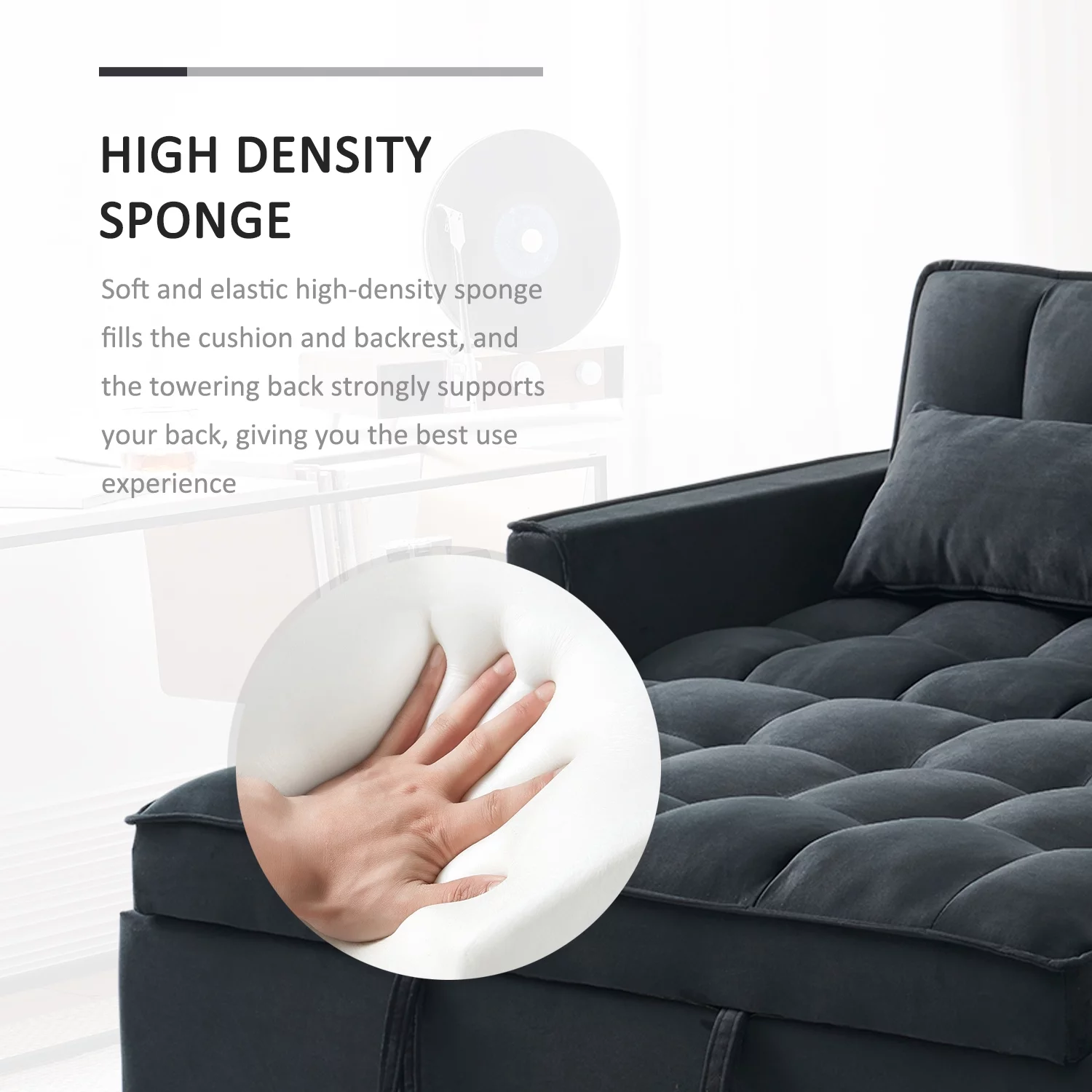 Tzicr 55.5'' 3-in-1 Convertible Sleeper Sofa Bed, Modern Velvet Loveseat Futon Couch Pullout Bed with Adjustable Backrest, Side Storage Pockets and Pillows. (Black) - Curated Treasures Market
