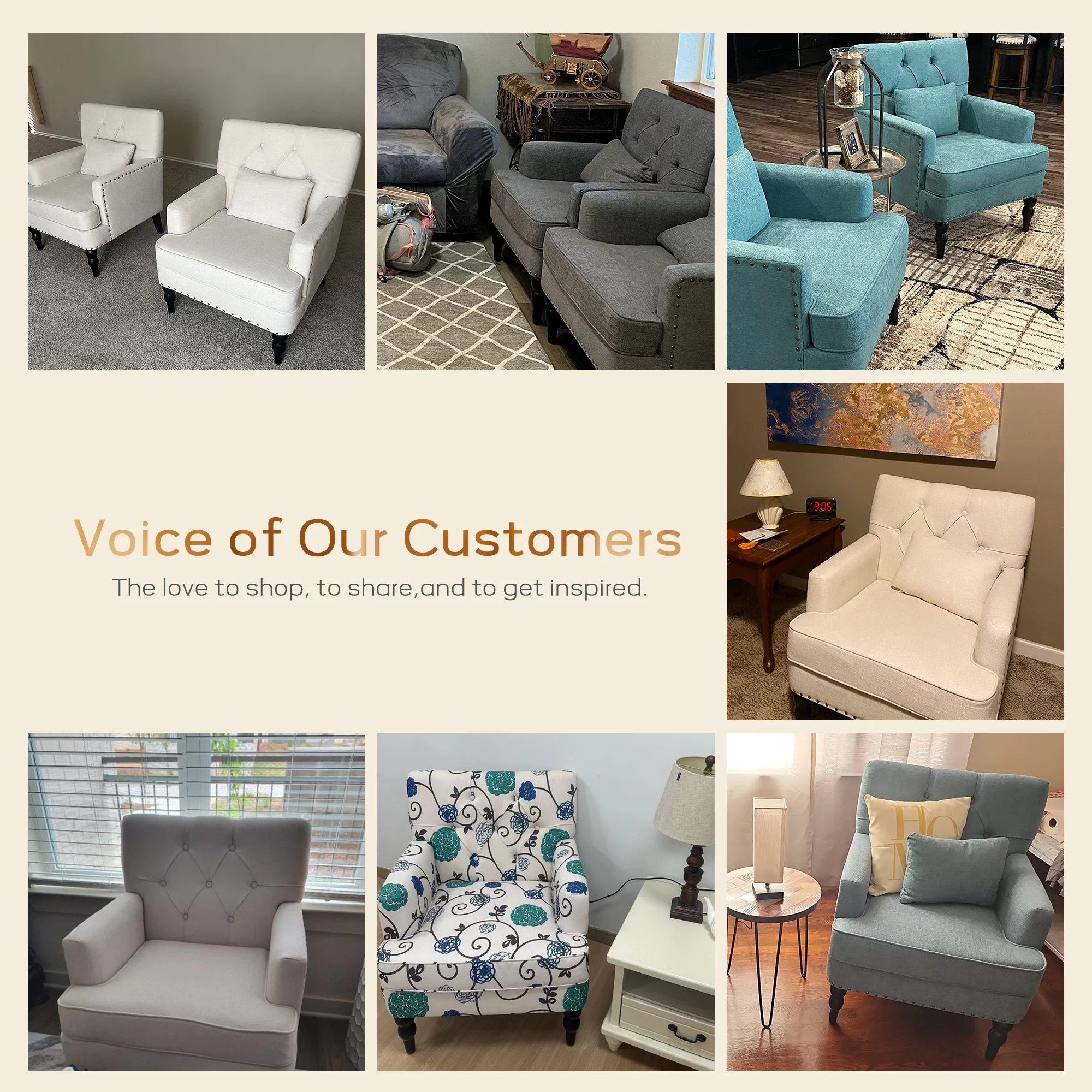 HUIMO Arm Chair with Ottoman,Upholstered Button Tufted Accent Chair,Linen Fabric Sofa Reading Chairs for Living Room, for Bedroom(Beige) - Curated Treasures Market