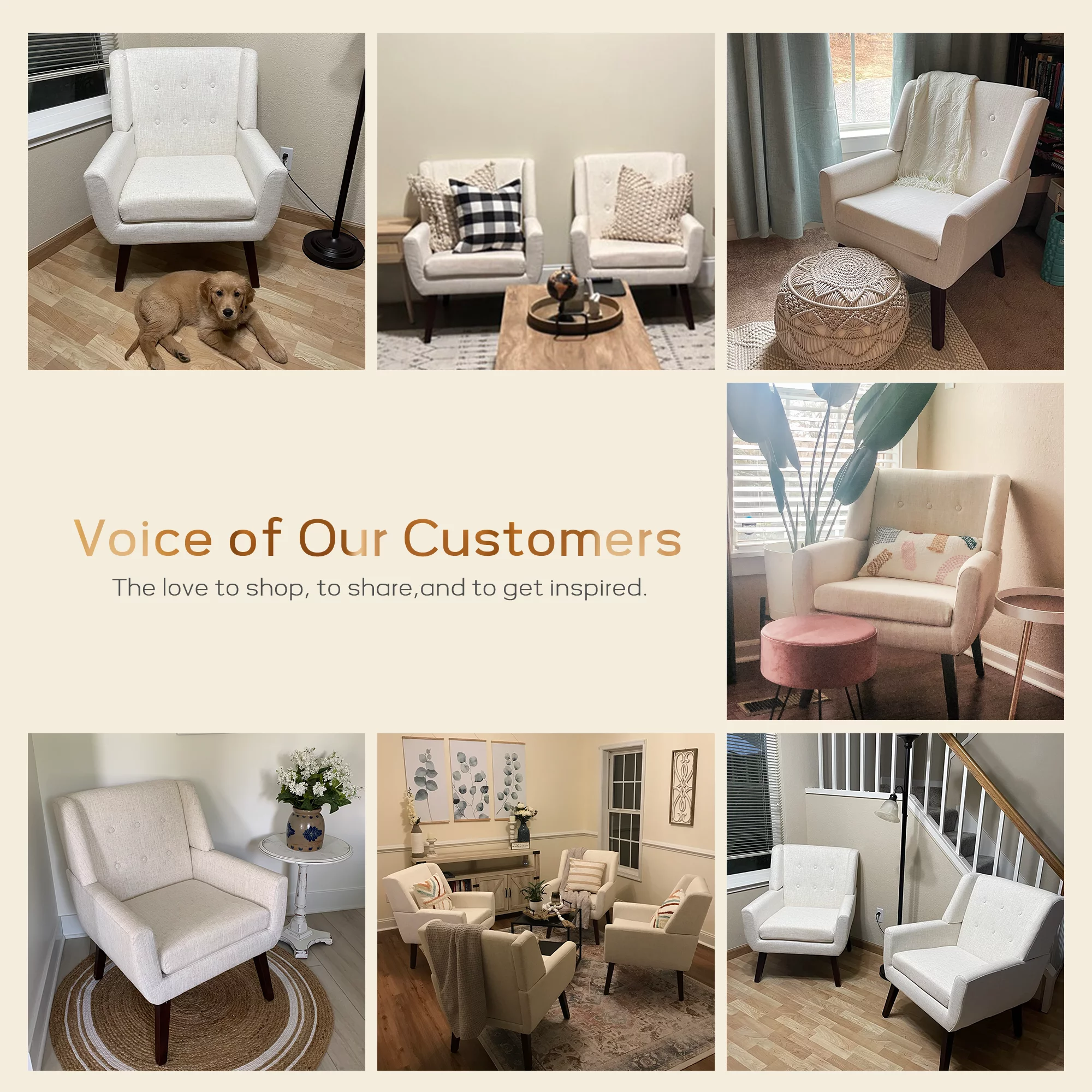 HUIMO Accent Chair, Button-Tufted Upholstered Living Room Chairs, Mid Century Modern Comfy Reading Chairs for Bedroom, Living Room, Beige - Curated Treasures Market