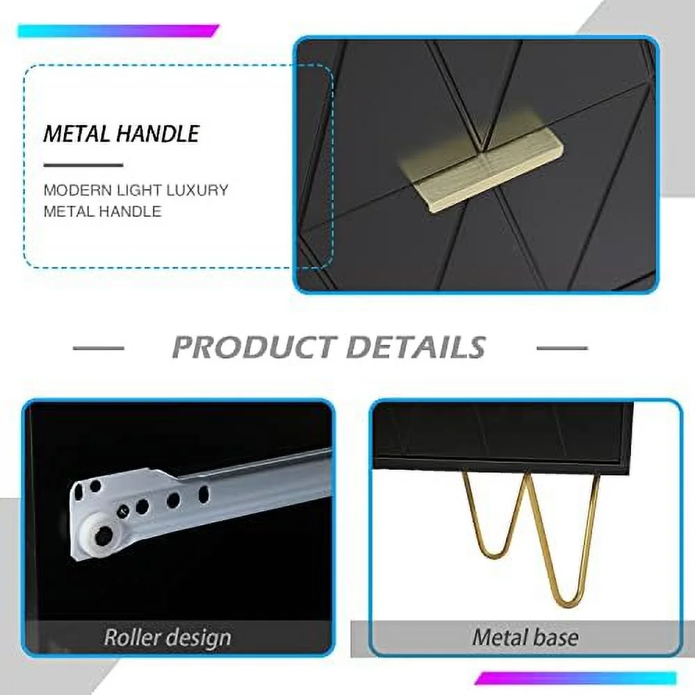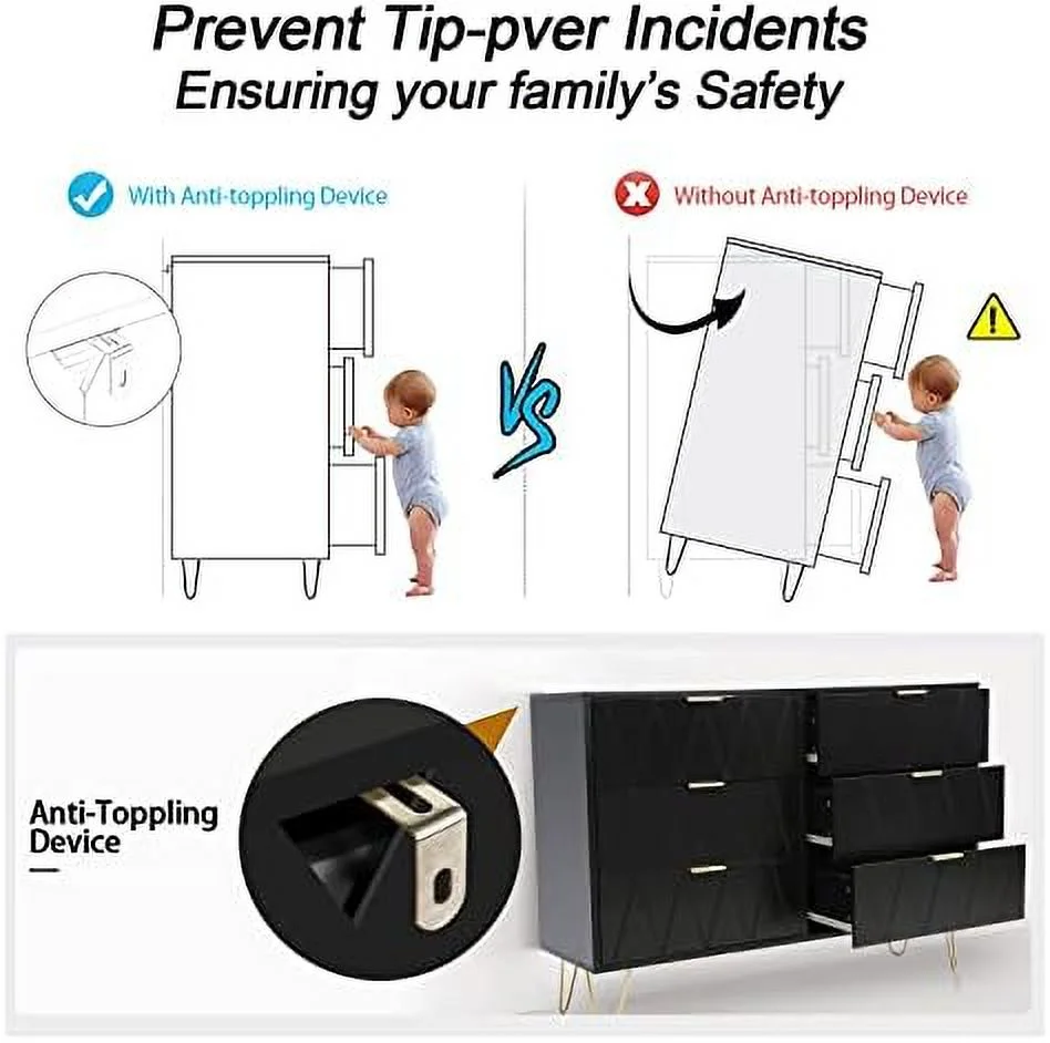 Black 6 Drawer Dresser for Bedroom Large Double Dresser with Wide Drawers and Gold Handles Chest of Drawers - Curated Treasures Market